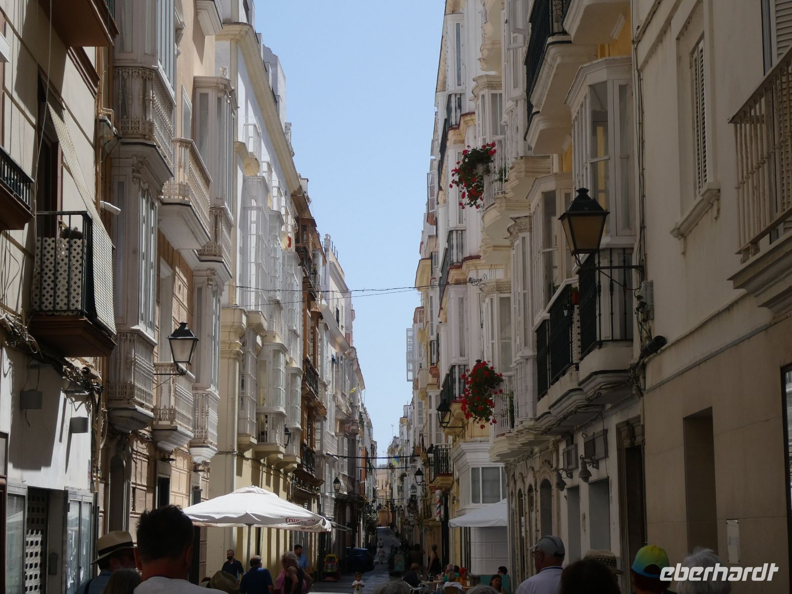 Wir fahren darüber und landen ......... natürlich in Cádiz. Unser Stadtführer winkt schon von Weitem und er steigt dazu. Nach einer kleinen Rundfahrt durch die Stadt, die der Sage nach von Herkules gegründet wurde, in Wahrheit von den Phöniziern, steigen wir aus und gehen zu Fuß weiter. Ein kleines hübsches lebhaftes Städtchen, welches langsam aus der Siesta erwacht. Cádiz war kurzzeitig sogar die Hauptstadt Spaniens, da hier die erste Verfassung des Landes beschlossen wurde. Die Stadt ist wohl auch die Stadt des Karnevals in Spanien, der hier ausgelassen gefeiert wird.