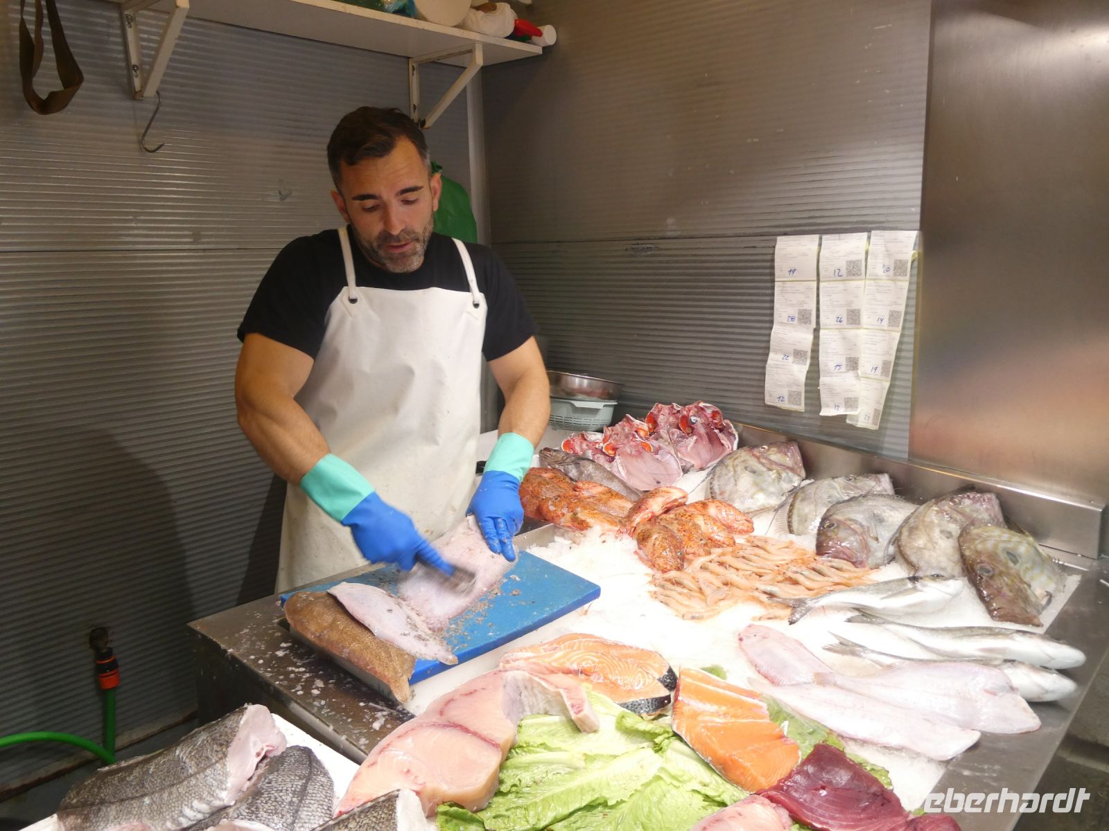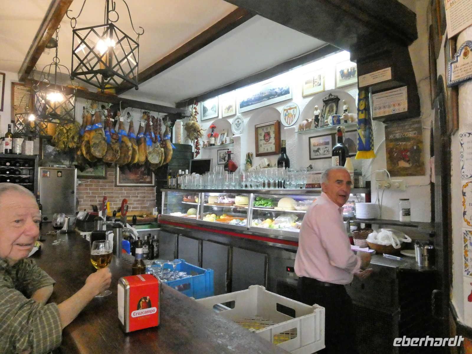 Dann sind wir zum Mittagessen in einer der zahlreichen Tapas-Lokale verabredet. Keine Minute vorher werden wir eingelassen, dafür gibt es dann aber auch eine reiche Auswahl an Tapas-Vorspeisen und dazu ein Glas "Vino Tinto".