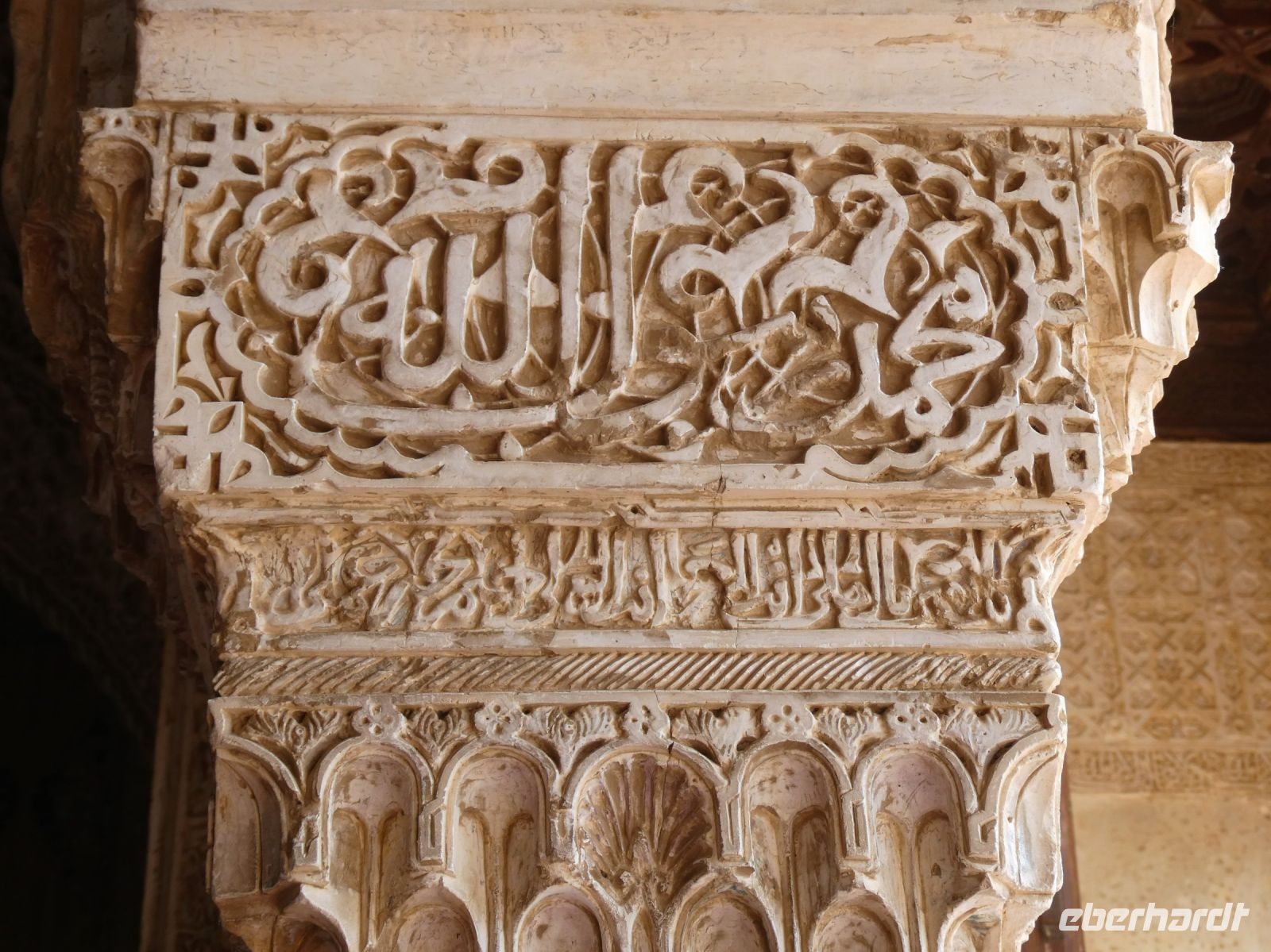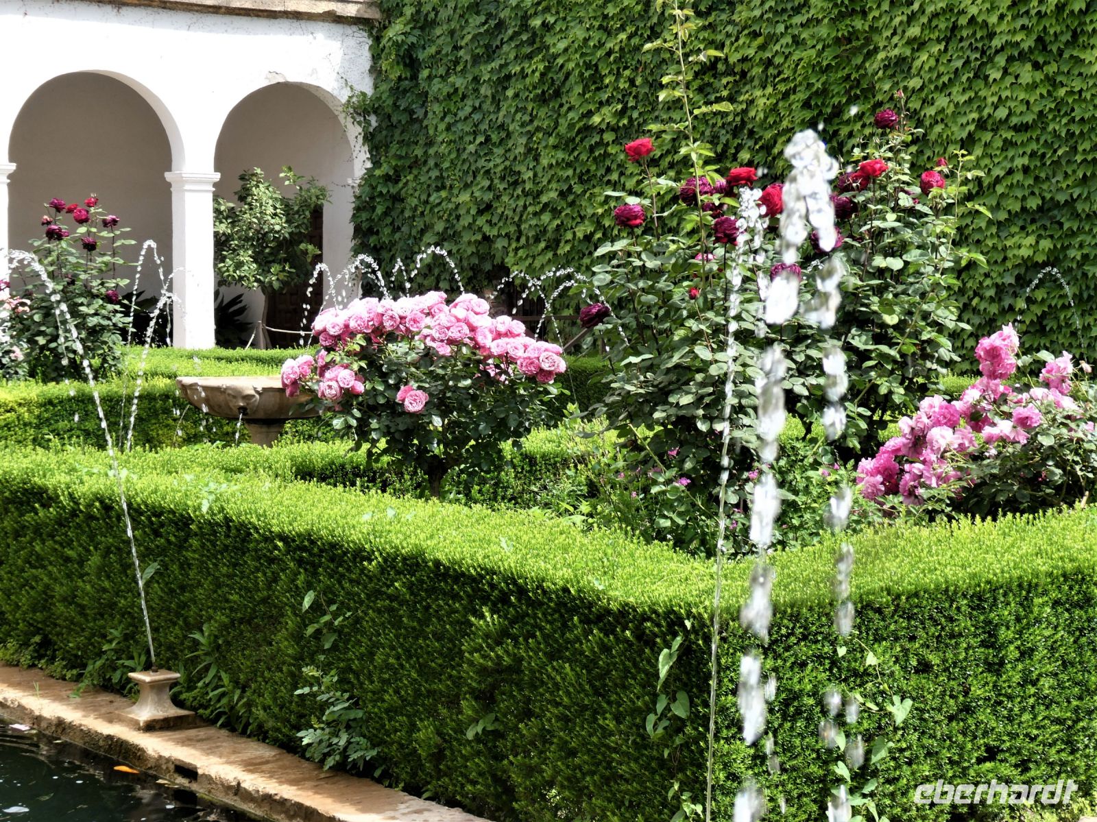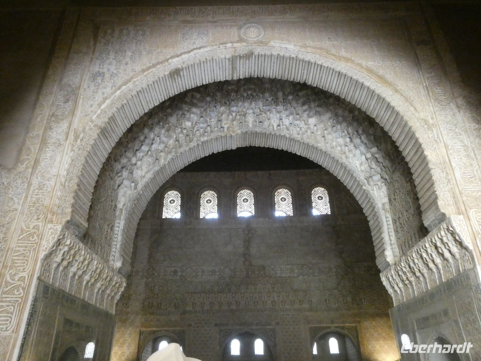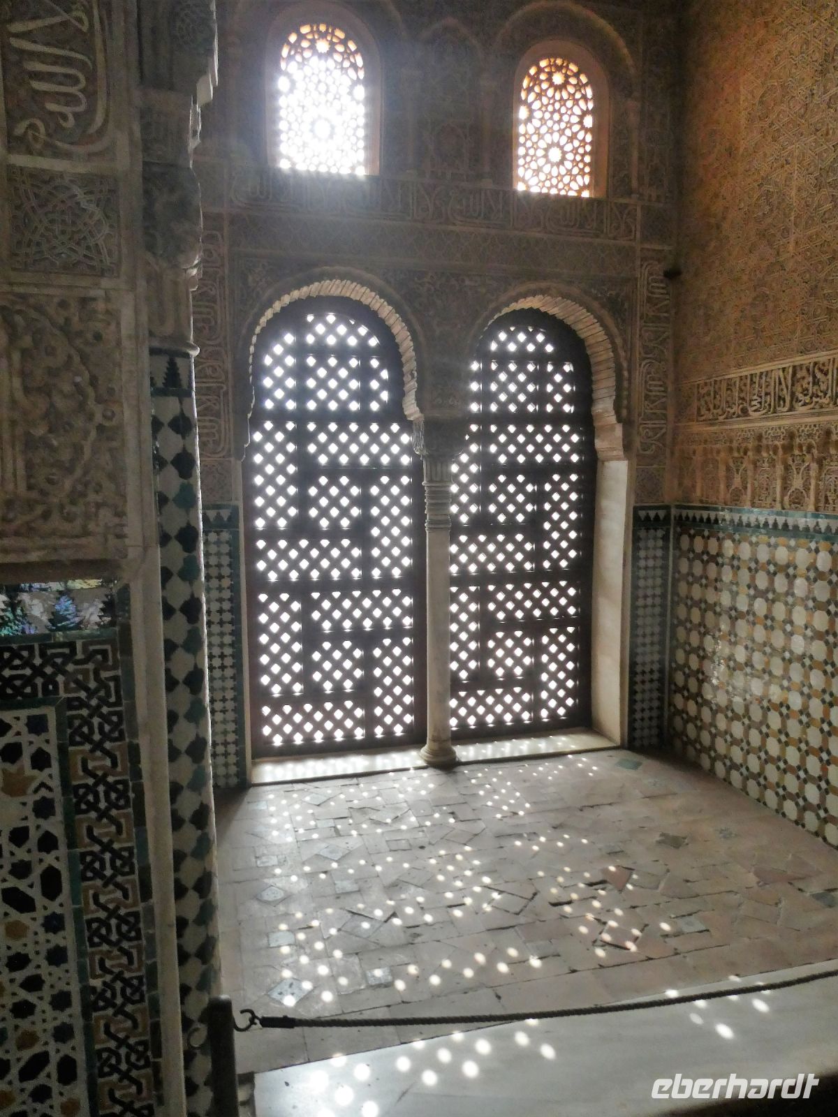 Marmorsäulen ausgestattet ist aber eine gewisse Kälte ausstrahlt. Er wurde allerdings erst lange nach dem endgültigen Untergang des Nasridenreiches im Jahr 1492 errichtet. Endlich betreten wir ihren Palast. Eine Pracht an geometrischen Formen, Säulen und Stuckgewölben empfängt uns. Ein Saal ist schöner als der vorhergehende. Alles ist eine raffinierte ästhetische Komposition die ihren Höhepunkt im Löwenhof mit dem schönen Springbrunnen hat.