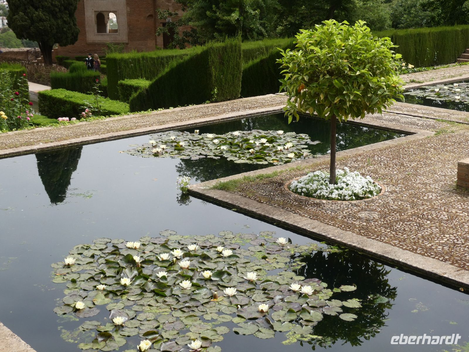 Dann gehen wir durch die Gärten zum Sommerpalast des Kalifen. Der Garten, die Verheißung zum Paradies. Das Paradies ist das Versprechen bei einem gottesfürchtigen Leben nach den Regeln des Koran für jeden gläubigen Muslim. Der Sommerpalast ist ein Kleinod in der gesamten Anlage. Am Ende der sehr informativen und kurzweiligen Führung Pedros verbleiben noch einige der Gruppe auf dem Gelände.