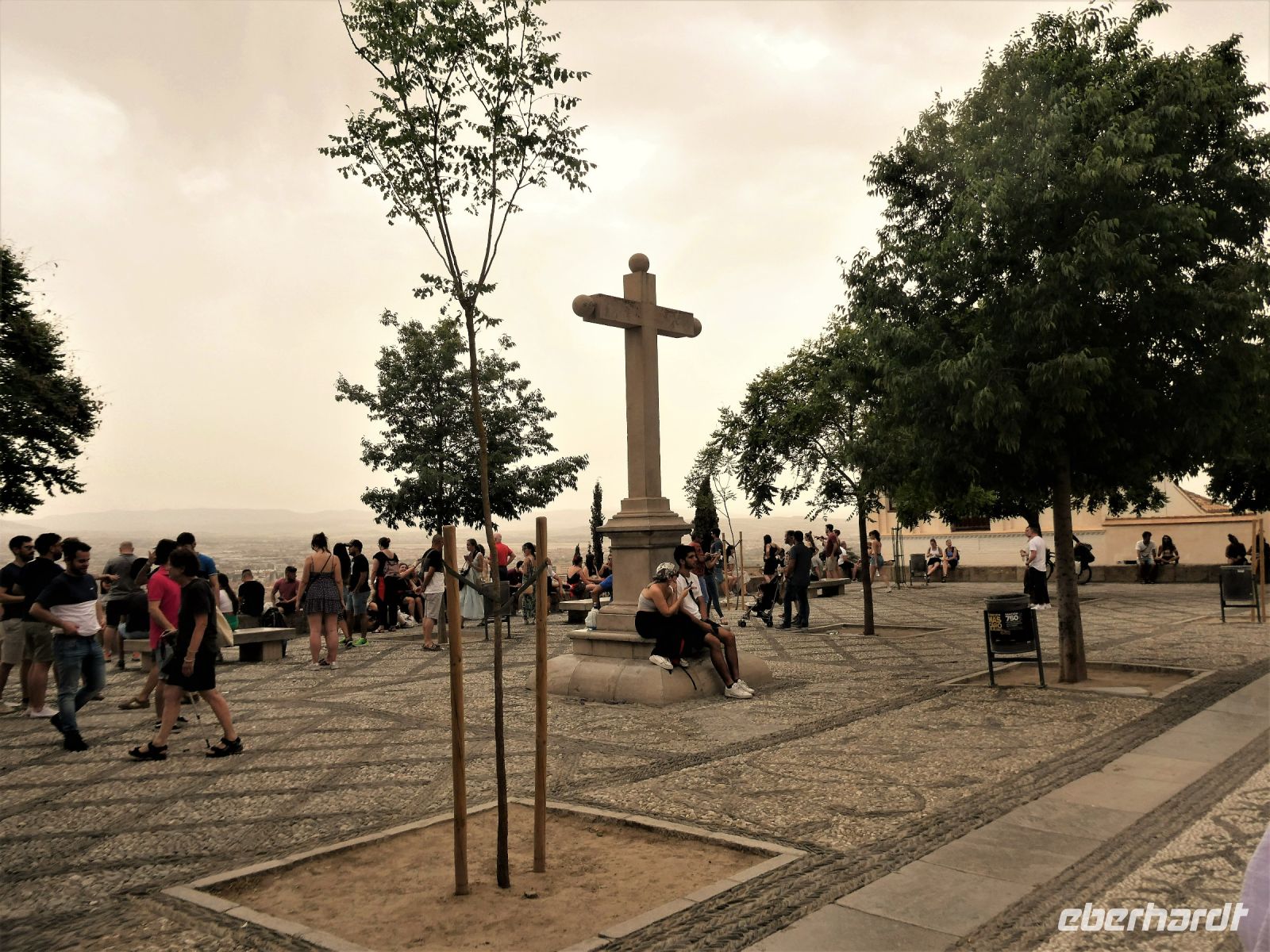 Danach aber haben wir als Ziel die Plaza de San Nicolas, einem Aussichtspunkt mit dem besten Alhambra-Blick. Nur leider spielt heute das Wetter nicht mit. Der Himmel ist wolkenverhangen und die Alhambra somit im Schatten. Der Aufstieg hat sich trotzdem gelohnt. Auf dem Platz treibt sich ein buntes Volk herum, was argwöhnisch von der Polizei beobachtet wird. Einige gehen in die gleichnamige Kirche und erleben, wie katholische Kirchen heutzutage auch aussehen können, mit modernen Bildern und sehr schlicht gestaltet. Dann aber wollen alle in das Hotel zurück, haben wir doch noch ein gutes Stück zu laufen. Im Hotel genehmigen sich einige erst einmal einen kleinen Aperitiv vor dem Abendessen. Ein schöner Tag geht zu Ende. Hasta manana!