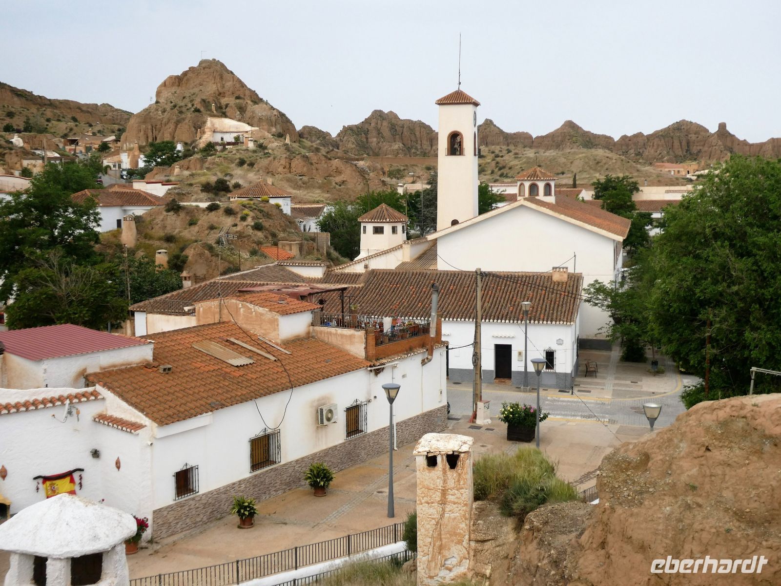 Heute beginnt ja eigentlich unsere Rückreise in Richtung Deutschland. Auf dem Weg nach Valencia gibt es aber noch eine Überraschung, die nicht im Reiseplan stand. Wir machen Halt in dem für seine Höhlenwohnungen bekannten Stadt Guadix. Unsere Reiseleiterin hat uns einen kleinen Zug reservieren lassen, welcher uns von unserem Halt an der Kathedrale von Guadix zu den Höhlenwohnungen bringt. Sie entstanden zu einer Zeit, in der die ärmeren Schichten der Gesellschaft keine Wahl hatten und so eine Höhle als preiswerten Aufenthalt wählten. Die Wohnungen sind heute allerdings etwas komfortabler als in der historischen Zeit, es gibt Elektrizität, damit Heizung, Wasserversorgung und natürlich einen Fernsehempfang. Sie sind mit Allem eingerichtet was der Mensch zum Wohnen benötigt. Wir halten an einer Gruppierung von mehreren Wohnungen, die fast alle auch über einen Schornstein verfügen. Die Wohnungen haben den Vorteil, dass sie im Sommer schön kühl bleiben. Einige der Bewohner haben ihre Wohnungen zur Besichtigung freigegeben und verdienen sich so ein kleines Taschengeld