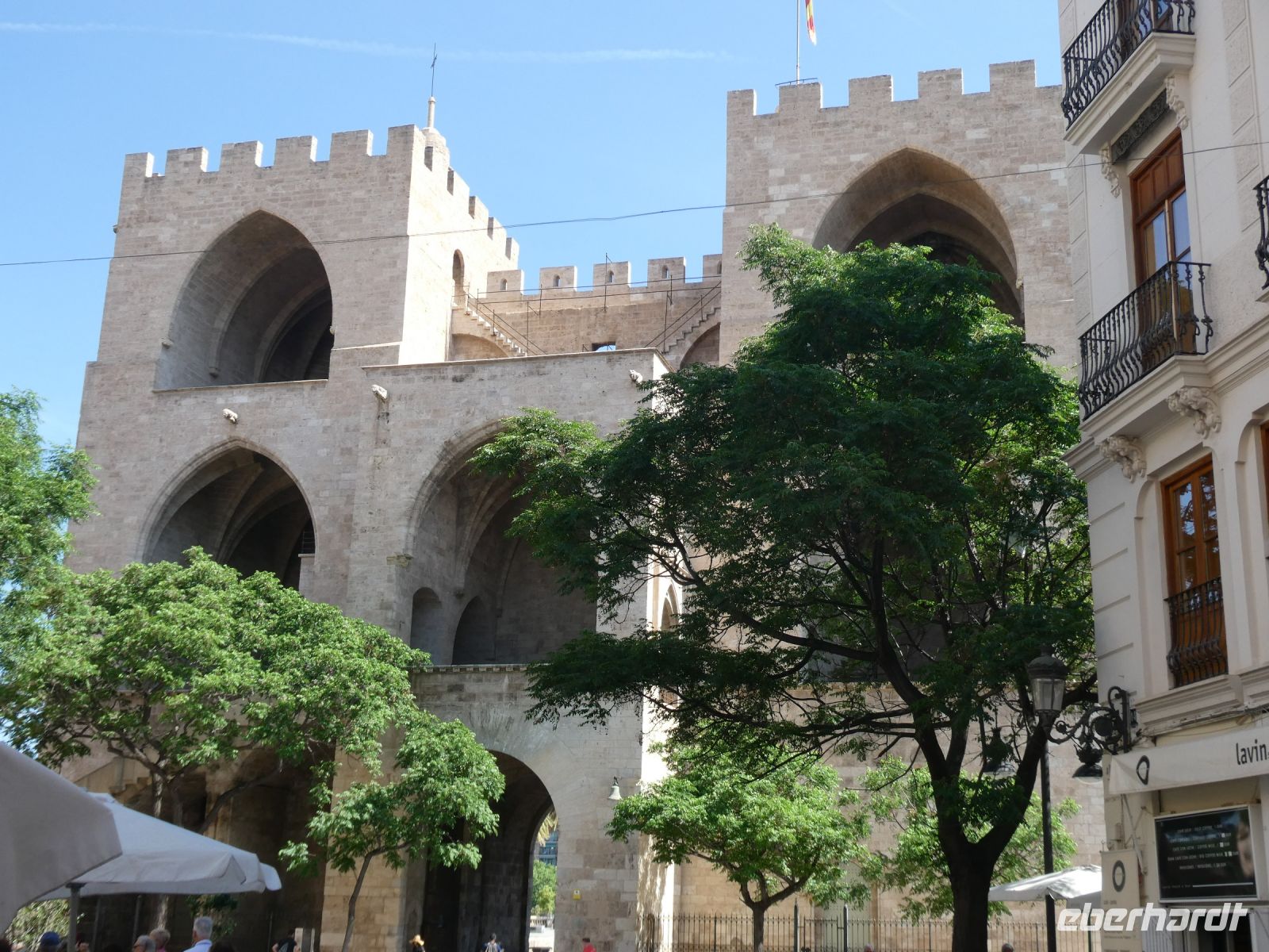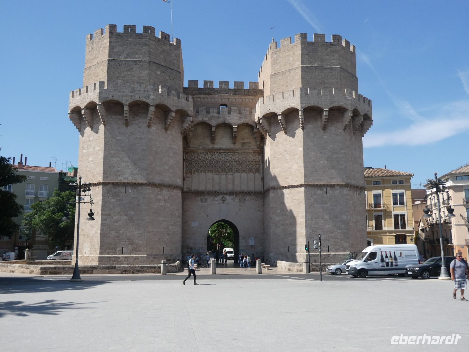 Das beeindruckendste ist aber das sog. "Tribunal de las Aguas", welches noch heute noch jeden Donnerstag stattfindet. Auf diesem Tribunal werden Streitigkeiten der Bauern und Grundbesitzern aus dem Umland geschlichtet. Was das Gericht entscheidet ist Gesetz. Dieses Tribunal gehört zu dem immateriellen Weltkulturerbe und stammt aus der Zeit der Araber. Unsere Tour endet am "Torres de Serranos", dem ehemaligen Stadttor in Richtung Barcelona. Zeitweilig war es ein Gefängnis. Hier legte auch die Schiffe mit ihren Ladungen an Fluss an und man sieht noch die Rampen welche für die mit Waren beladenen Wagen angelegt wurden.