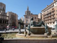 Wir fahren in den alten Teil der Stadt und gehen zu Fuß weiter. Die Stadt Valencia wuchs unter der Herrschaft der Mauren stark. Nach der Eroberung durch einen kastilischen Adligen, auch "El Cid" genannt wurde sie zu einem kleinen "Privatkönigreich" bis sie im 13.Jahrhundert von Jacob I. erobert und zur Krone von Arragon gelangte. Sie entwickelte sich zu einer reichen Handelsstadt, die vor allem durch den Seidenhandel prosperierte. So ist denn auch die alte "Seidenbörse" ein beeindruckendes gotisches Bauwerk. Weiter geht es zur Markthalle die ein schönes Beispiel der Hallenkunst der Jahrhundertwende darstellt. Viele ausdrucksstarke Gebäude dieser Zeit im "Modernisme" sehen wir auf unserem Weg der an einer "Horchateria" (hier gibt es Mandelmilch) vorbei vor der Kathedrale endet.