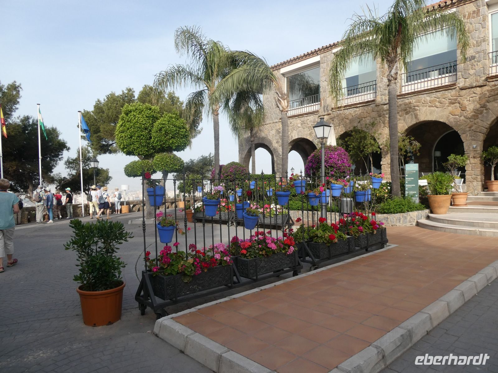 Wir beladen schnell unseren Bus und fahren mit unserer Stadtführerin zu dem Aussichtspunkt "Gibralfaro". Von hier haben wir eine wunderbare Aussicht auf den Hafen von Malaga und die ein- und ausfahrenden Schiffe. Die noch erhaltenen ehemals arabische und später von den Truppen Isabellas eroberte Festung kann besichtigt werden. Uns aber genügt heute einmal einfach die Aussicht zu genießen. Anschließend hinunter und beginnen unseren Stadtrundgang durch Malaga mit seinem weltstädtischen Flair, besuchen den Platz an dem einst die Familie von Picasso wohnte, laufen vorbei am Picasso-Museum und enden schließlich den Besuch an der großen Markthalle. Danach haben wir etwas Freizeit, einige von uns gehen essen, andere besuchen das ganz interessante und für Europäer kostenfreie Stadtmuseum. Wir treffen uns zur Abfahrt am Bus an dem schönen Rathaus und fahren in Richtung Granada.