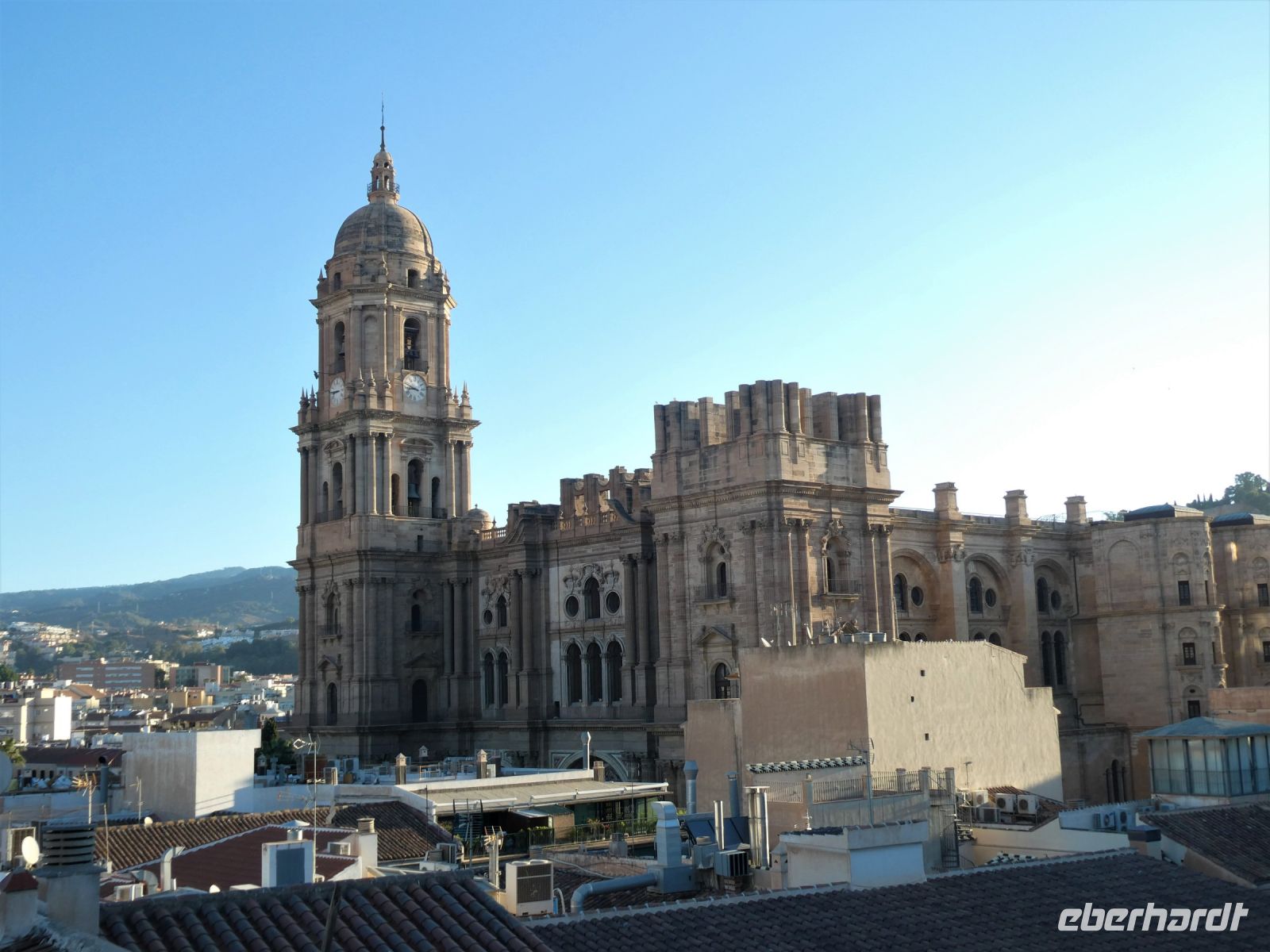 Am Morgen nach dem Frühstück laden wir schnell unser Gepäck in den Bus und fahren mit unserer Stadtführerin Christina zu dem Aussichtspunkt "Gibralfaro". Von hier haben wir eine wunderbare Aussicht auf den Hafen von Malaga und die ein- und ausfahrenden Schiffe. Die noch erhaltenen ehemals arabische und später von den Truppen Isabellas eroberte Festung kann besichtigt werden. Uns aber genügt heute einmal einfach die Aussicht zu genießen. Anschließend fahren wir hinunter und beginnen unseren Stadtrundgang durch Malaga mit seinem weltstädtischen Flair, besuchen den Platz an dem einst die Familie von Picasso wohnte, laufen vorbei am Picasso-Museum, betrachten ausgiebig die Kathedrale von Malaga und beenden den Besuch an der großen Markthalle. Danach haben wir etwas Freizeit. Einige von uns gehen in der Markthalle von Malaga einkaufen. Beim Stand für den berühmten Schinken dürfen wir probieren und natürlich wird auch etwas davon mitgenommen. Auch die Oliven und ihr sehr gesundes Öl werden zum Kosten angeboten. So macht Einkaufen Spaß. Danach treffen wir uns und laufen gemeinsam zum schönen Rathaus. Dort begegnen wir Hochzeitsgesellschaften die hier die Brautleute bei der folgenschweren Unterschrift unterstützen. Unser Bus kommt bald und wir fahren in Richtung Granada.
