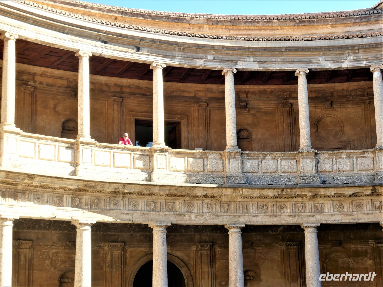 Dann gehen wir weiter zu dem Renaissancepalast Karls V. aus dem 16.Jahrhundert. Es handelt sich um einen Rundbau der zwar mit schönen Marmorsäulen ausgestattet ist aber eine gewisse Kälte ausstrahlt. Er wurde allerdings erst lange nach dem endgültigen Untergang des Nasridenreiches im Jahr 1492 errichtet.
