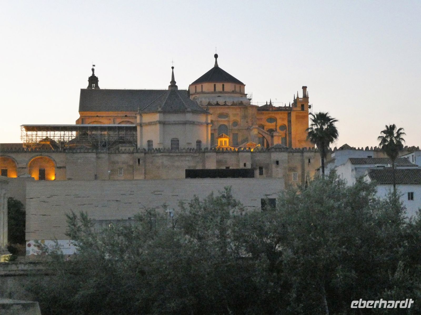 Schließlich erreichen wir Cordoba. Die Sonne ist aber dabei uns zu verlassen. Der Himmel ist bedeckt und die Luft ist schwül-warm. Das riecht nach Gewitter und schon bald beginnt es ein wenig zu tröpfeln. Unser Hotel liegt direkt an dem wichtigsten Bauwerk der Stadt: "La Mezquita" - die Moschee. Allerdings kann vor dem Hotel kein Bus halten. Es wird ein Gepäcktransfer organisiert, welcher pünktlich am Treffpunkt erscheint. Wir spazieren entlang des "Rio Guadalquivir" entlang alter Wasserräder (Norias) zur "Puente Romano". Diese maurische Brücke ruht auf römischen Fundamenten. Bald ist das Hotel direkt an der Mezquita erreicht und wir können unsere Zimmer beziehen.