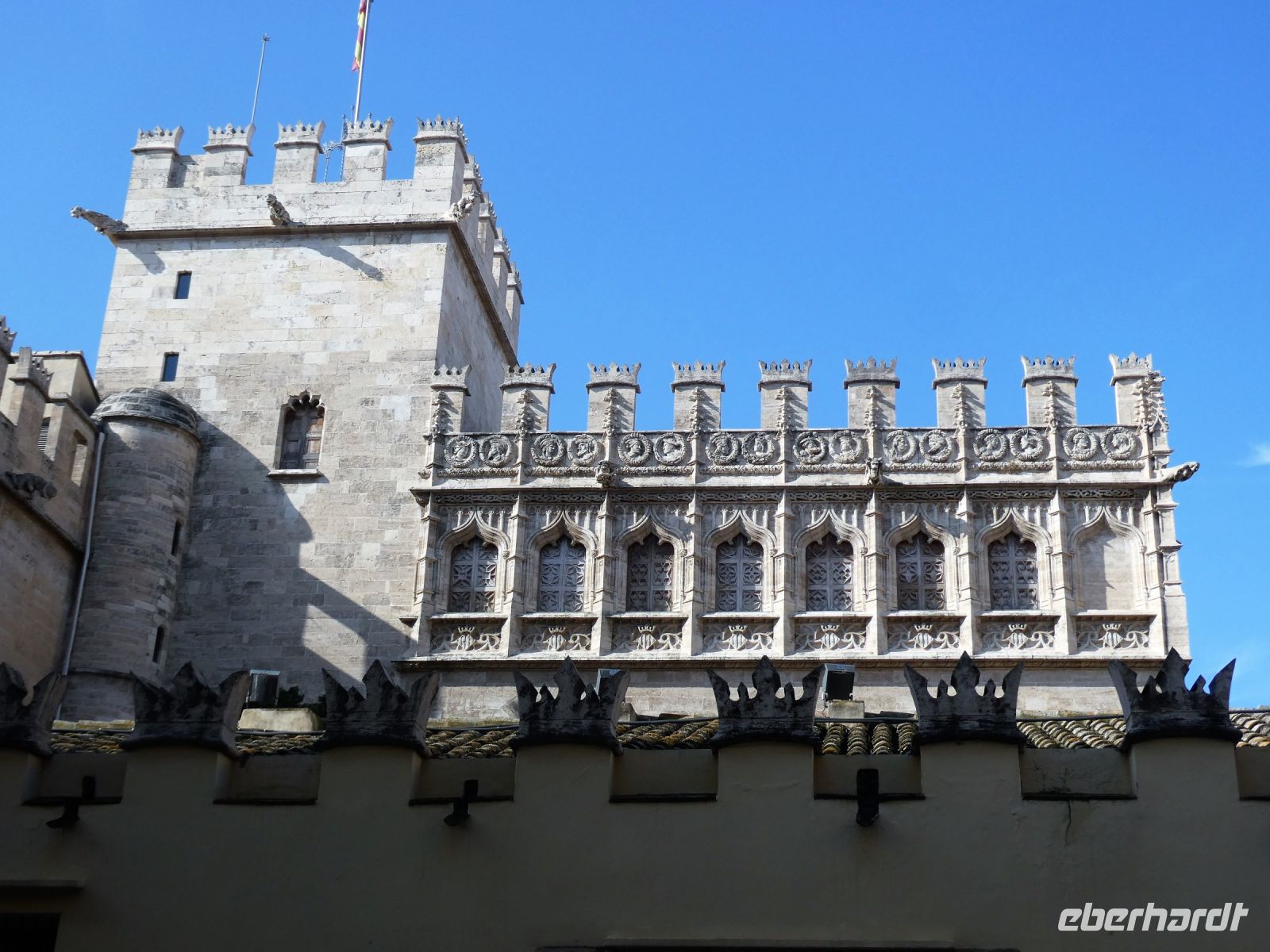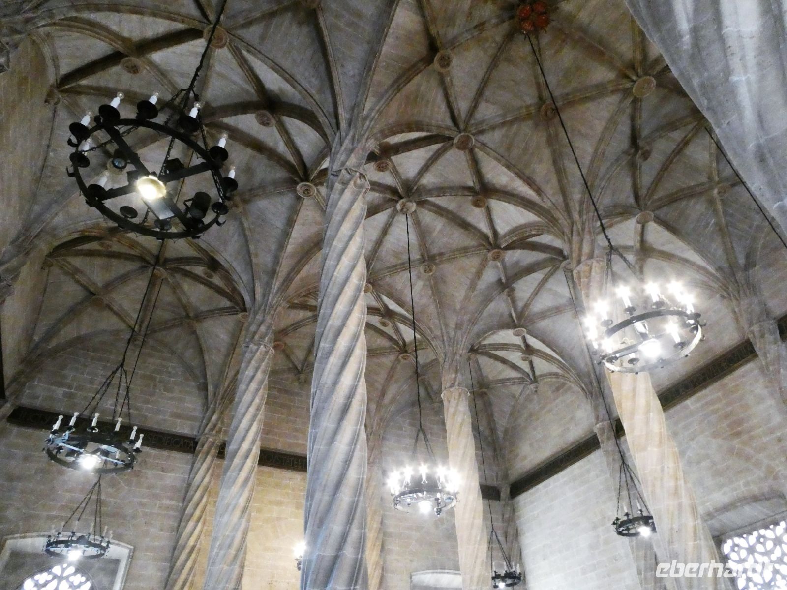 Unser Stadtführer Luis erklärt uns bei der kleinen Rundfahrt zum Überblick ein wenig die Stadtgeschichte. Anschließend fahren wir in den alten Teil der Stadt und gehen zu Fuß weiter. Die Stadt Valencia wuchs unter der Herrschaft der Mauren stark. Nach der Eroberung durch einen kastilischen Adligen, auch "El Cid" genannt wurde sie zu einem kleinen "Privatkönigreich" bis sie im 13.Jahrhundert von Jacob I. erobert und zur Krone von Aragon gelangte. Sie entwickelte sich zu einer reichen Handelsstadt, die vor allem durch den Seidenhandel prosperierte. So ist denn auch die alte "Seidenbörse" ein beeindruckendes gotisches Bauwerk. Wir besichtigen diesen Bau der Spätrenaissance und stellen uns den einstigen Reichtum vor.