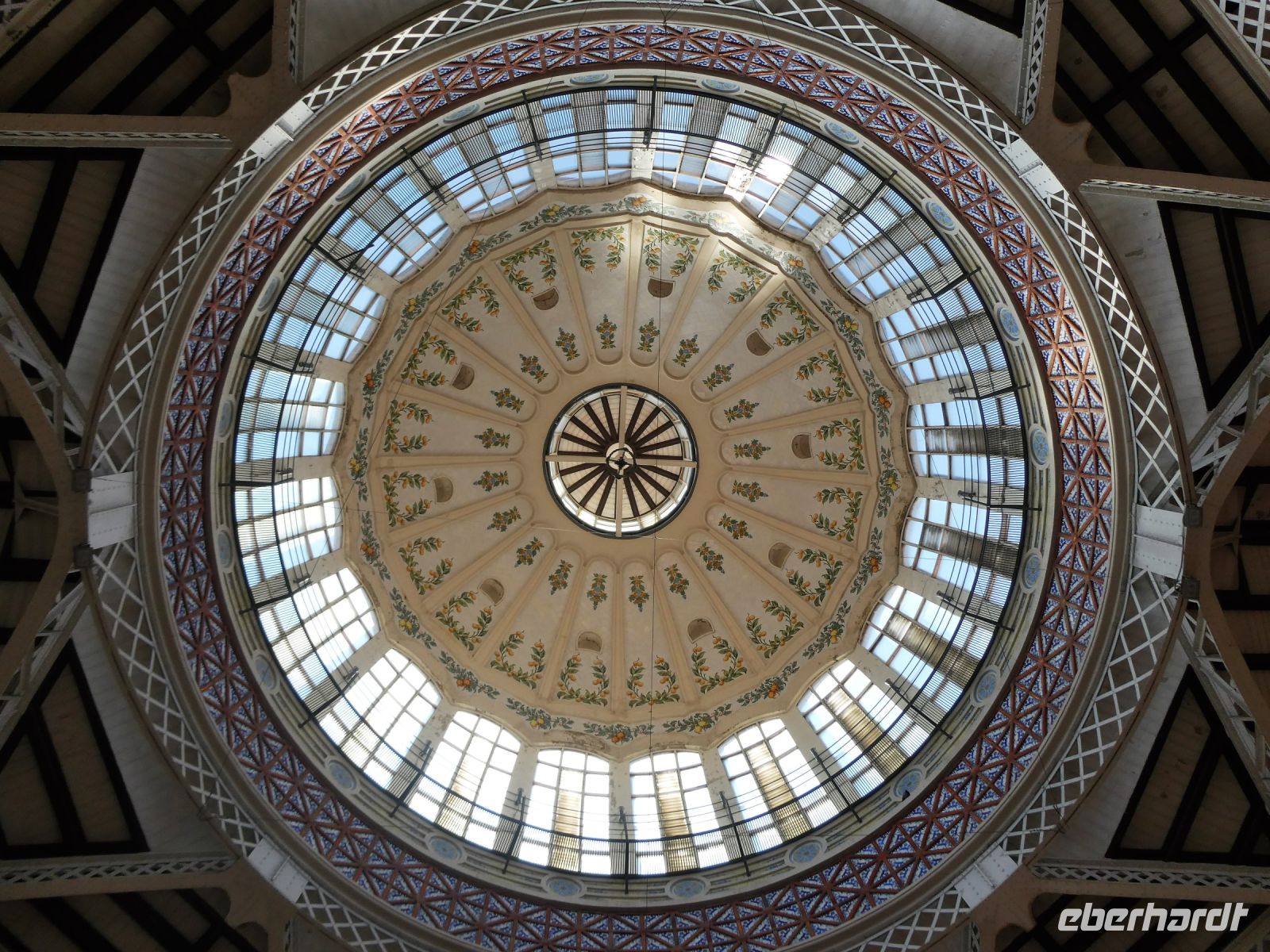 Das beeindruckendste ist aber das sog. "Tribunal de las Aguas", welches noch heute noch jeden Donnerstag stattfindet. Auf diesem Tribunal werden Streitigkeiten um Wasserentnahme der Bauern und Grundbesitzern aus dem Umland geschlichtet. Was das Gericht entscheidet ist Gesetz. Dieses Tribunal gehört zum immateriellen Weltkulturerbe und stammt aus der Zeit der Araber. Viele ausdrucksstarke Gebäude dieser Zeit im "Modernisme" sehen wir auf unserem Weg zur Markthalle die ebenfalls ein schönes Beispiel der Hallenkunst der Jahrhundertwende darstellt. Hier werden frische Produkte verkauft. Die Halle besitzt sogar einen Internetauftritt.