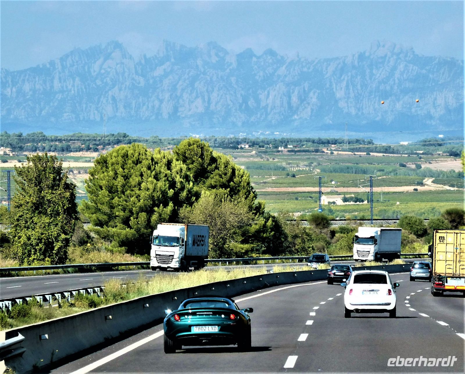Nach der Überfahrt der Grenze durchqueren wir Katalonien und bekommen eine kleine Einführung und Zusammenfassung der Geschichte Spaniens, was uns später beim Einordnen des Gesehenen unterstützen soll. Wir erahnen im Osten die Badeorte der "Costa Brava" und der "Costa Dorada". Spanien ist seit den 70er Jahren eins der wichtigsten Urlaubsländer Europas und besonders der Deutschen. Schon am Ende der Regierungszeit Francos wurden die ersten Badehotels erbaut.