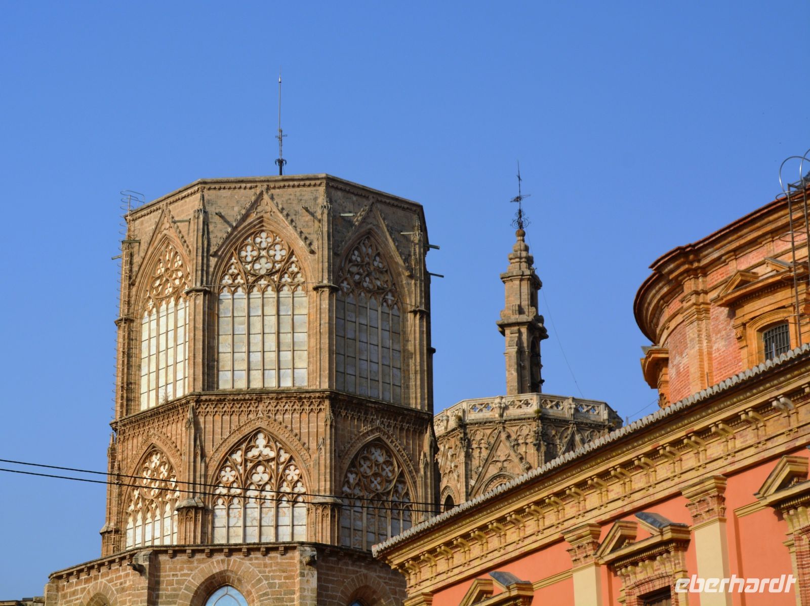 Die Kathedrale von Valencia wurde im 13.Jahrhundert auf den Grundmauern einer Moschee erbaut und vielfach umgestaltet. Die Eingangsportale aus verschiedenen Epochen machen das Gebäude spannend. Hier in der Kathedrale gibt es einen Kelch aus Achat, der als der "Heilige Gral" verehrt wird. Der gotische Turm ist ebenfalls ein Blickfang und ein Wahrzeichen Valencias.