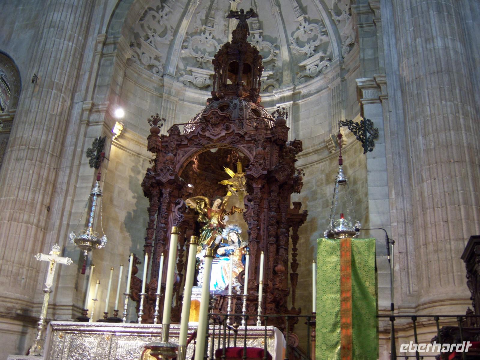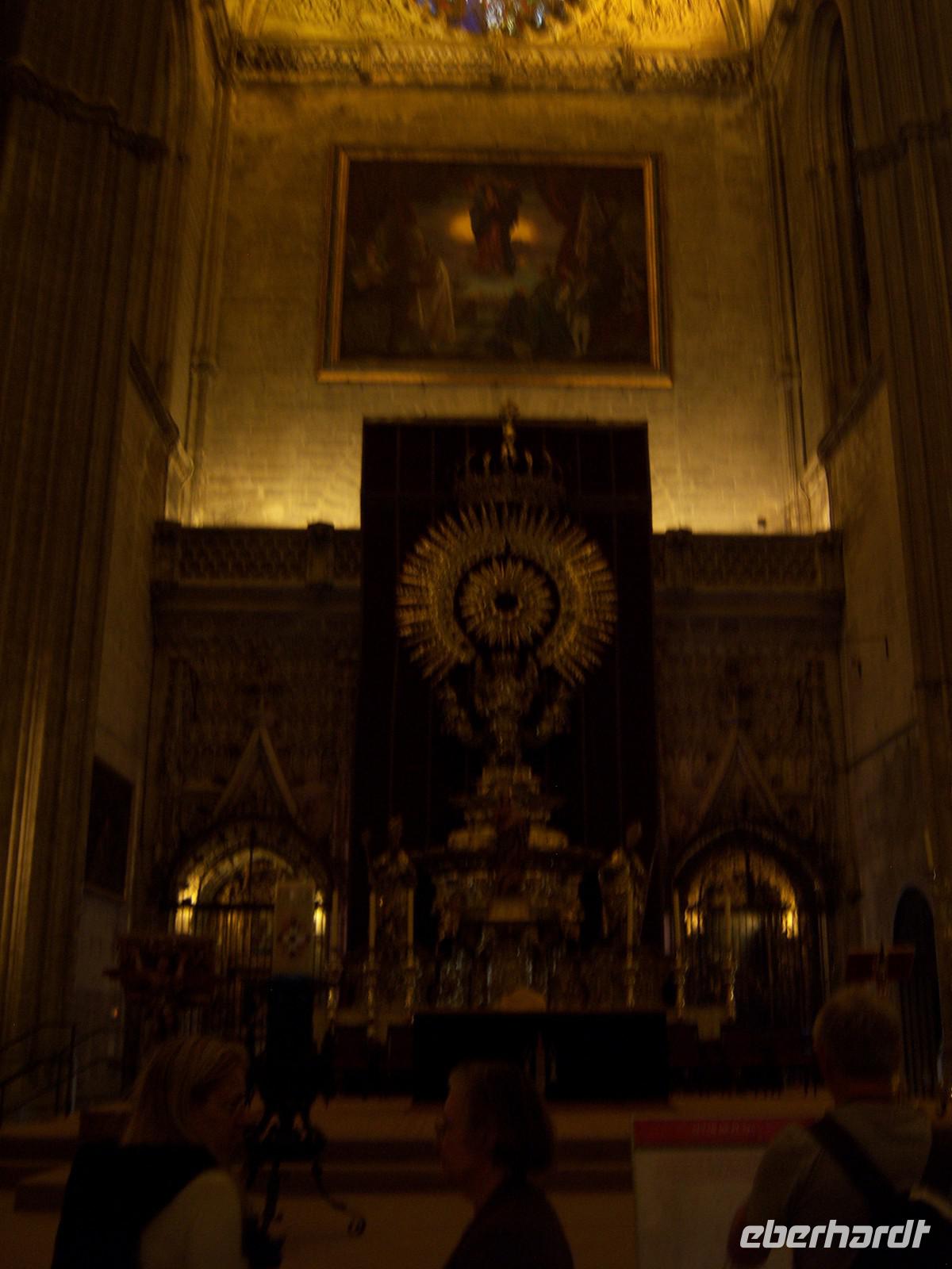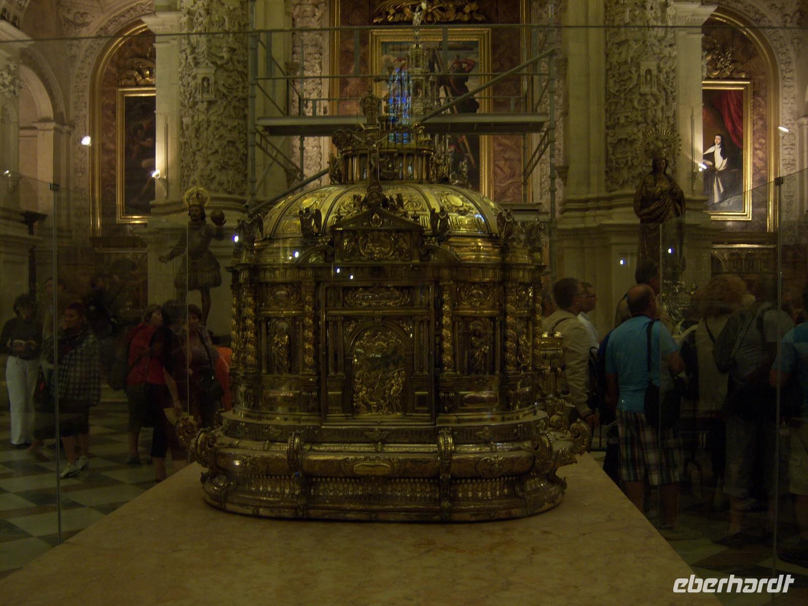 Danach empfing uns Jil am Eingang der Kathedrale von Sevilla - die drittgrößte Kathedrale der Welt, und größte gotische Kirche der Welt. Auch diese Kathedrale ist beeindruckend - groß, prunkvoll, einfach gigantisch. Wir besichtigten den größten Altar des Christentums, die Orgel mit ihren horizontalen Pfeifen und die Grabstätte von Christoph Kolumbus. Auch die Sakristei, das private Umkleidezimmer der Priester, als Meisterwerk der spanischen Renaissance, bestaunten wir. Der Silberaltar aus dem 17. Jahrhundert bildete den Abschluss in der Kathedrale.