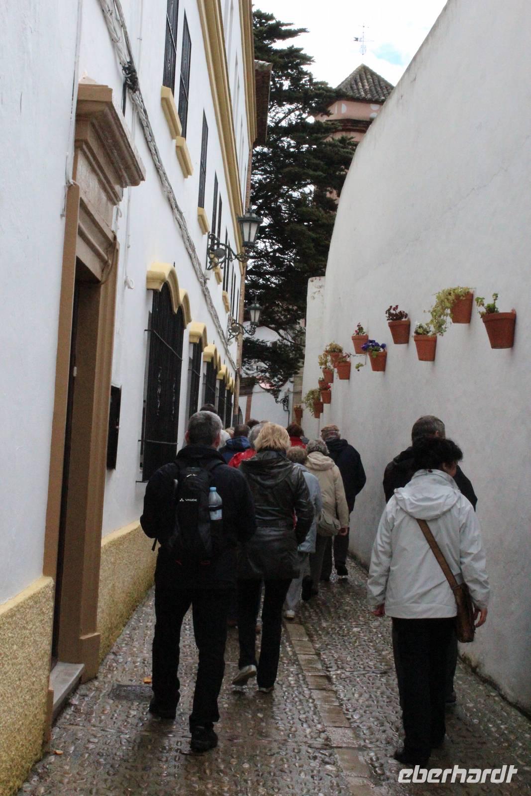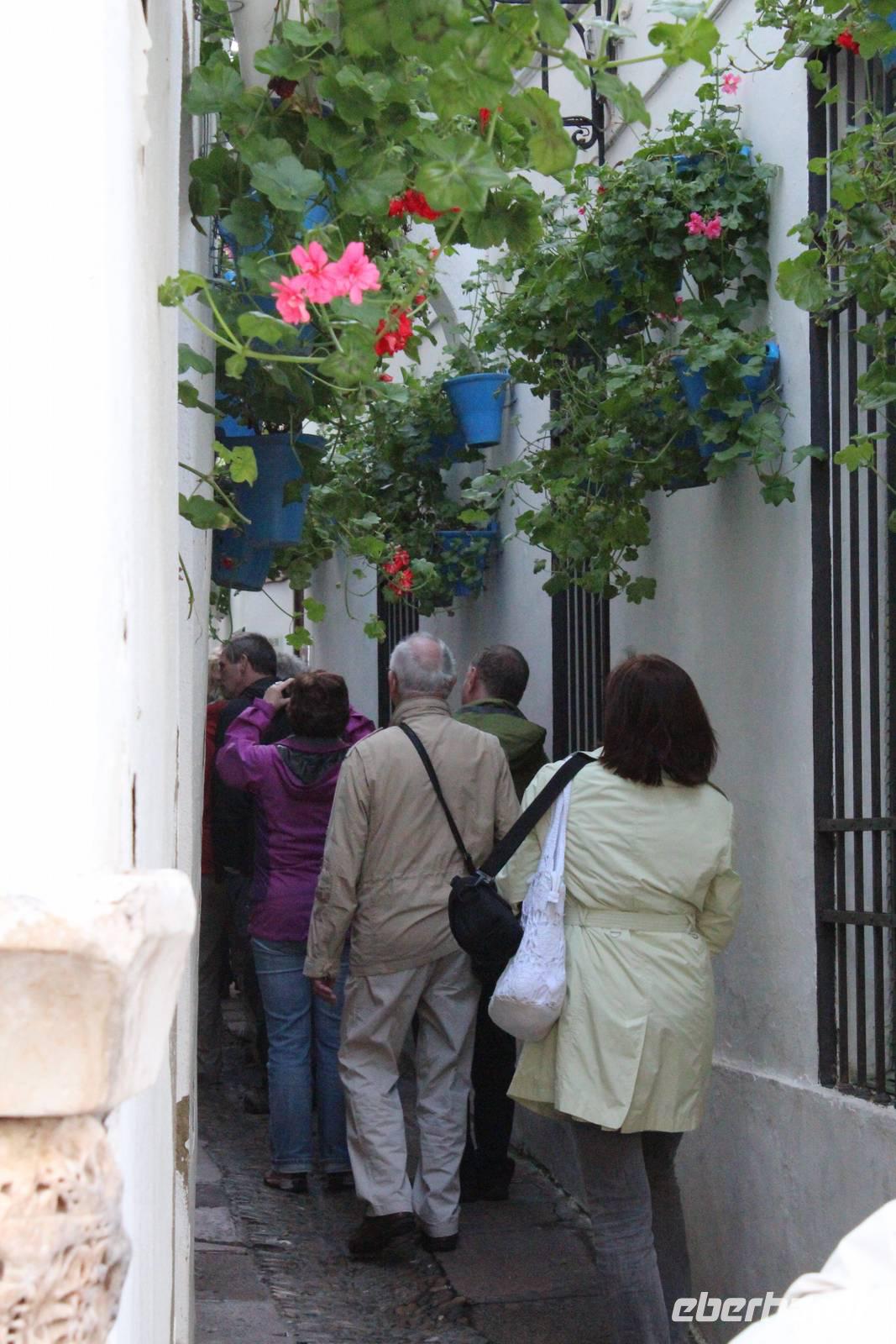 Wieder mussten wir früh aufstehen, doch zum Glück gab es schon Frühstück. Nach dem Frühstück wartete schon der Bus auf uns welcher uns heute nach Córdoba brachte. Unterwegs nach Córdoba sahen wir Olivenplantagen, unterschiedliche Landschaften und die reißenden Flüsse, welche sich die Tage zuvor durch die starken Regenfälle gefüllt hatten. Doch waren wir guter Laune, denn das Wetter hatte sich trotz den vorherigen Vorhersagen doch noch zum Guten gewendet. Auf dem Weg nach Córdoba legten wir noch eine kleine Pause ein, bevor wir die letzten Kilometer zurücklegten. In Córdoba angekommen gingen wir in die Innenstadt, wo wir die von Kay organisierten Stadtpläne ausgeteilt bekamen. Nach einer kurzen Wartezeit kam dann auch schon unsere heutige Reiseführerin, welche uns die Innenstadt, sowie die Mezquita zeigte. Auf dem Weg kamen immer wieder Damen, sogenannte Zigeuner Frauen, auf uns zu, welche von uns Geld verlangten. Nachdem wir die Stadtführung gemacht hatten, schauten wir uns die Mezquita an. Wir waren sehr beeindruckt von den zwei Baustilen, welche einzigartig auf der Welt sind. Nach der Besichtigung gingen einige von uns noch ein wenig die Stadt erkunden, wohingegen die anderen von uns mit Kay mitgingen, welcher uns eine kleine Tapasbar zeigte in der wir uns stärkten. Danach ging es auch schon wieder zurück zum Bus und wir fuhren wieder zurück ins Hotel nach Fuengirola.