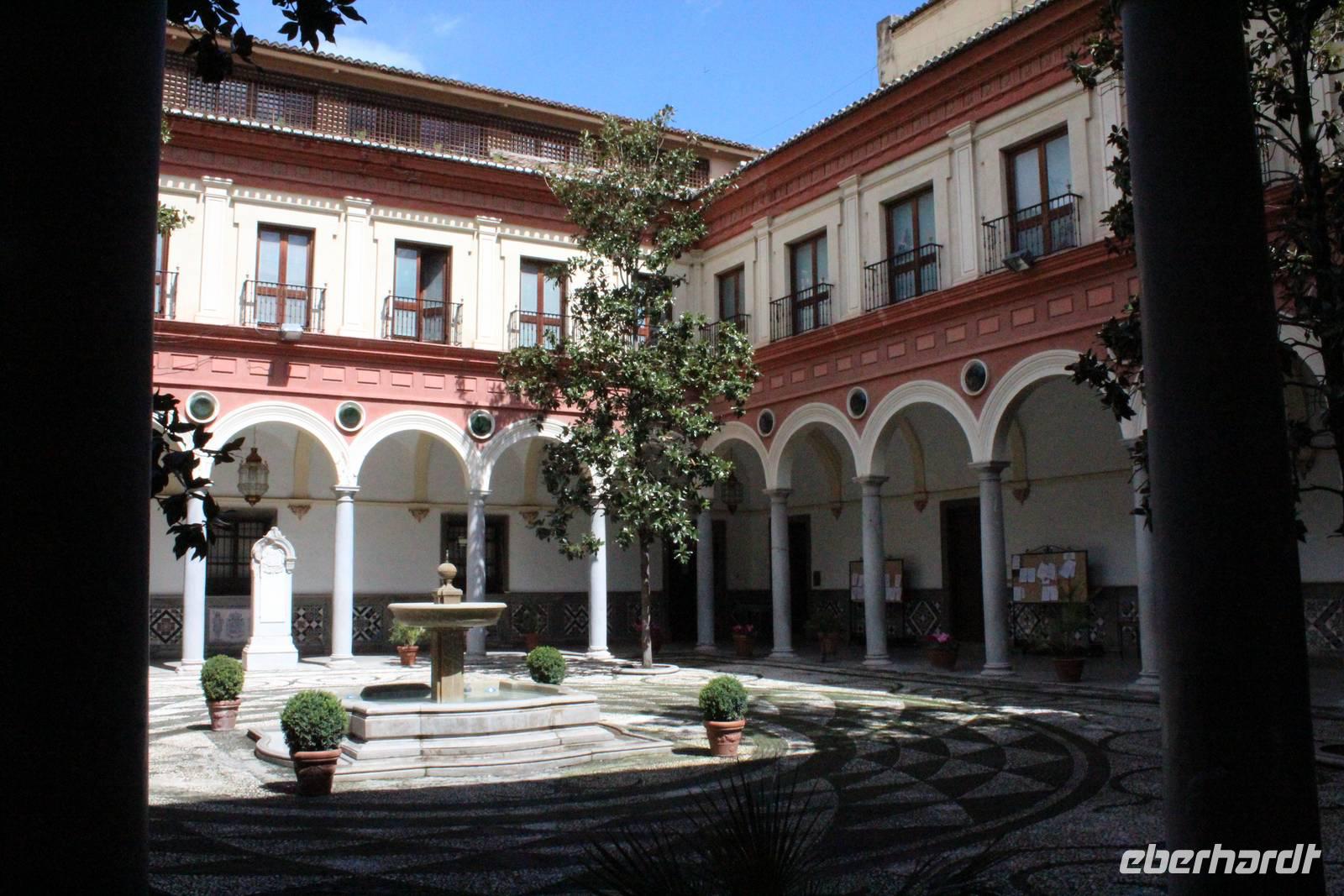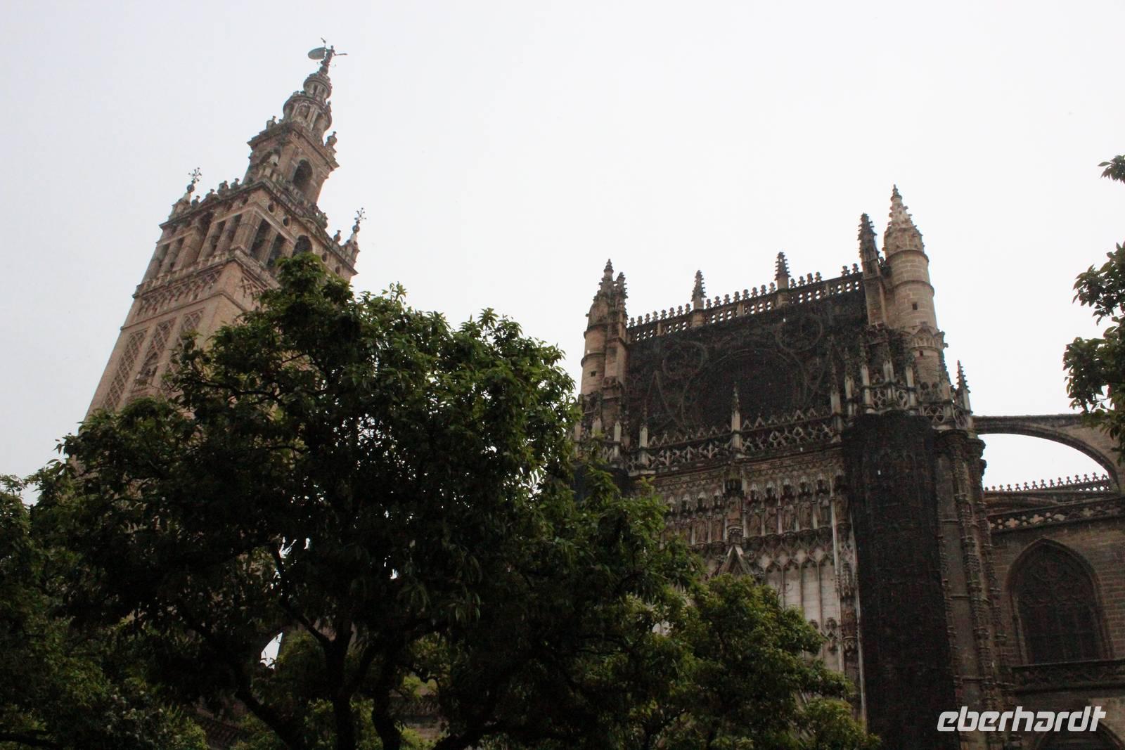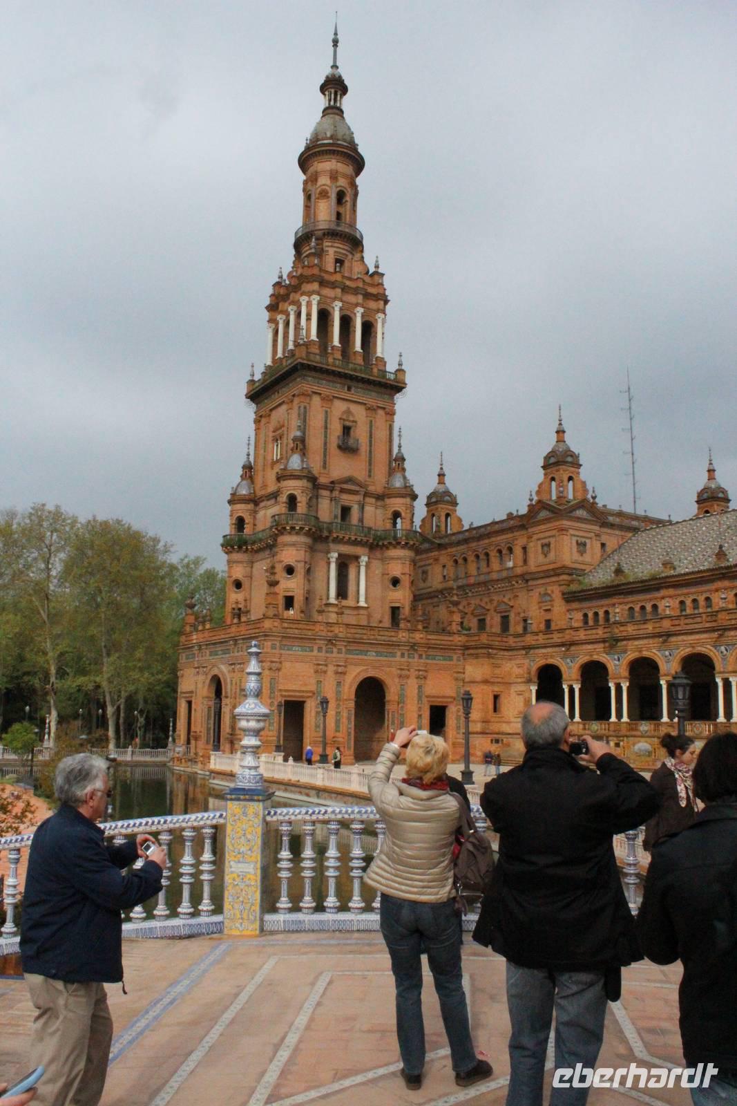 Unser Reisebegleiter begrüßte uns heute nicht wie gewohnt mit „Buenos dias!", sondern mit „Buenas noches!". Dies hatte einen bestimmten Grund. Wir fuhren schon 7:15 Uhr Richtung Sevilla und wollten noch ein wenig im Bus schlafen, ehe wir in Sevilla ankamen. Unsere Fahrt dauerte ca. 3,5 h. Unterwegs legten wir noch eine Pause ein, wo wir unseren Kaffee genossen. Danach ging es nach Sevilla weiter und unser örtlicher Reiseleiter machte mit uns einen Kochkurs. In Sevilla angekommen fuhren wir zuerst zum Plaza América. Auf diesem Platz hatten wir einen Blick auf das Museum of Arts and Traditions of Sevilla. Nach dem kurzen Aufenthalt ging es auch schon weiter zum Plaza de España. Wir waren beeindruckt was sich hinter der unscheinbaren Fassade von außen doch hinter dem Eingang verbirgt. Wir gingen wieder zum Bus, welcher uns nun Richtung Kathedrale brachte. Wir stiegen in der Nähe aus und liefen einige Meter bis zur größten gotischen Kathedrale der Welt. Wir waren sehr beeindruckt von dieser Größe. Wie klein doch wir Menschen wirken können. Leider begann es zu regnen, sodass wir den Alcázar im Regen besichtigten. Wir hatten die Führung beendet und die Sonne drang durch die Regenfront hervor, so konnten wir die Sonnenstrahlen ein wenig in unserer Freizeit genießen. Nachdem wir unseren Hunger auch noch ein wenig gestillt und eine Stadtbesichtigung gemacht hatten gingen wir Richtung Bus welcher uns wieder in unser Hotel brachte.