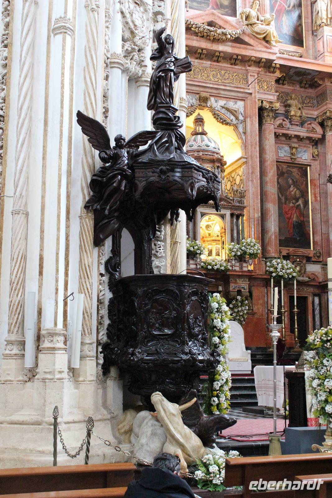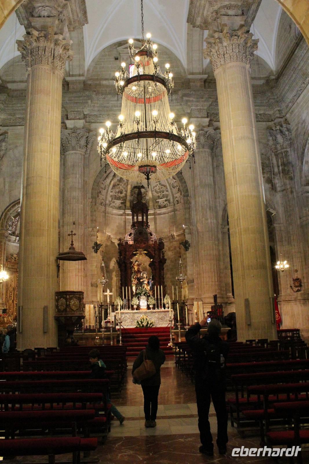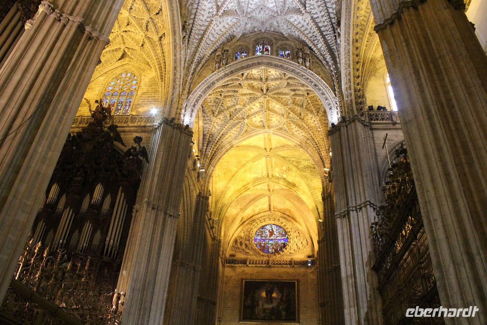 Unser Reisebegleiter begrüßte uns heute nicht wie gewohnt mit „Buenos dias!", sondern mit „Buenas noches!". Dies hatte einen bestimmten Grund. Wir fuhren schon 7:15 Uhr Richtung Sevilla und wollten noch ein wenig im Bus schlafen, ehe wir in Sevilla ankamen. Unsere Fahrt dauerte ca. 3,5 h. Unterwegs legten wir noch eine Pause ein, wo wir unseren Kaffee genossen. Danach ging es nach Sevilla weiter und unser örtlicher Reiseleiter machte mit uns einen Kochkurs. In Sevilla angekommen fuhren wir zuerst zum Plaza América. Auf diesem Platz hatten wir einen Blick auf das Museum of Arts and Traditions of Sevilla. Nach dem kurzen Aufenthalt ging es auch schon weiter zum Plaza de España. Wir waren beeindruckt was sich hinter der unscheinbaren Fassade von außen doch hinter dem Eingang verbirgt. Wir gingen wieder zum Bus, welcher uns nun Richtung Kathedrale brachte. Wir stiegen in der Nähe aus und liefen einige Meter bis zur größten gotischen Kathedrale der Welt. Wir waren sehr beeindruckt von dieser Größe. Wie klein doch wir Menschen wirken können. Leider begann es zu regnen, sodass wir den Alcázar im Regen besichtigten. Wir hatten die Führung beendet und die Sonne drang durch die Regenfront hervor, so konnten wir die Sonnenstrahlen ein wenig in unserer Freizeit genießen. Nachdem wir unseren Hunger auch noch ein wenig gestillt und eine Stadtbesichtigung gemacht hatten gingen wir Richtung Bus welcher uns wieder in unser Hotel brachte.