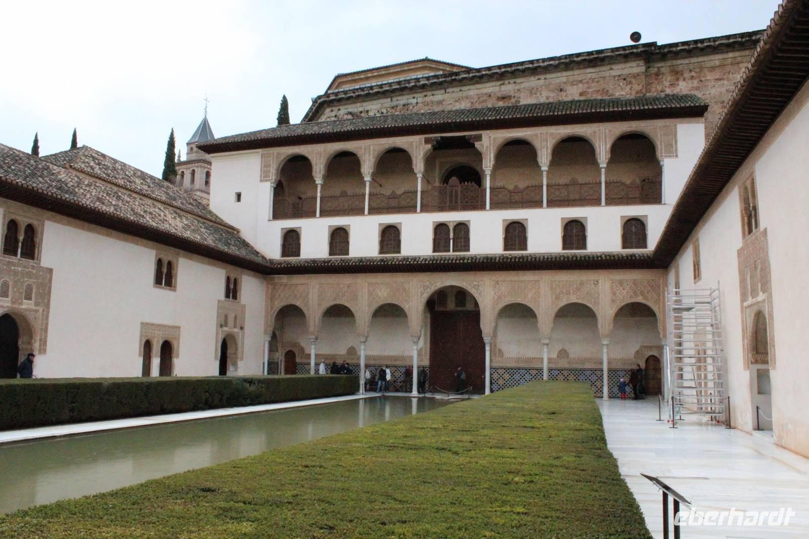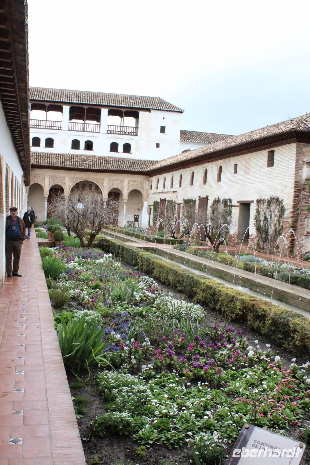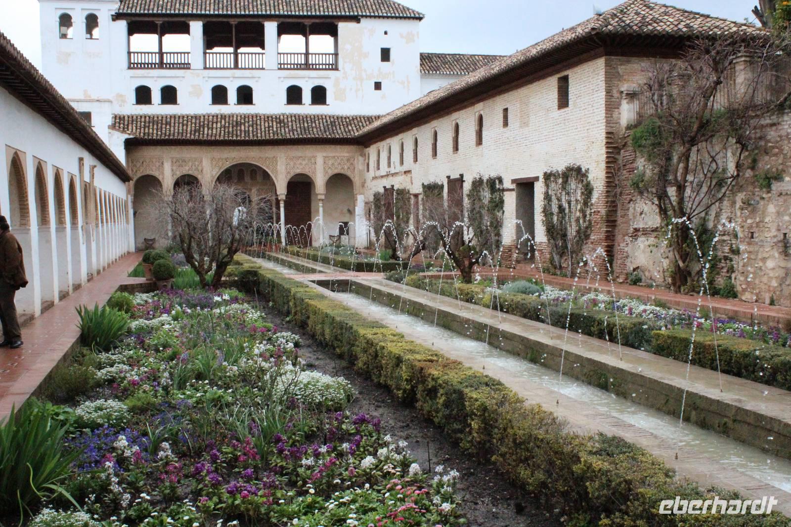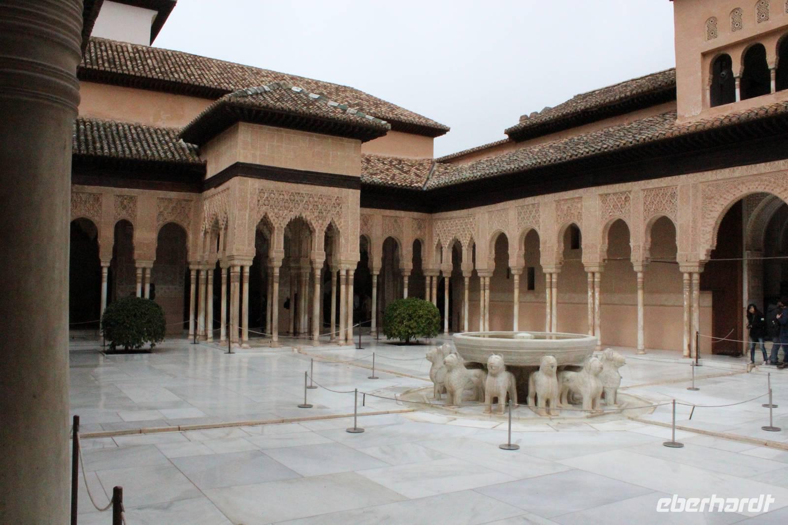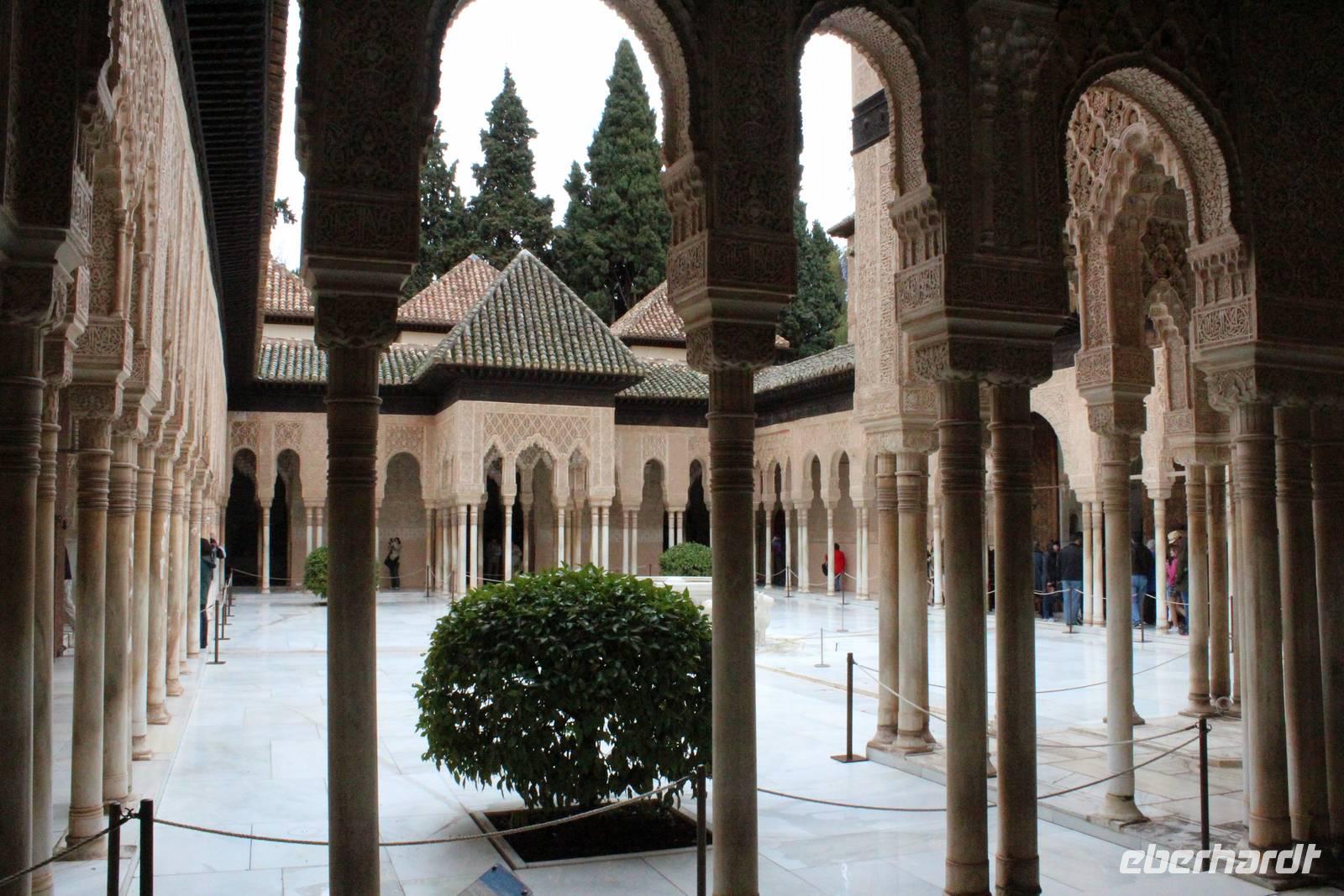 Heute ging es nach Granada. Die Wettervorhersage hatte sich über Nacht verbessert, sodass wir einen trockenen Tag zu erwarten hatten. Auf dem Weg nach Granada erzählte uns Kay einiges über Andalusien und wir hatten wie befürchtet nur einen schwachen Blick auf die Sierra Nevada und die Vorhersage für diese Region war nicht besser. Wir entschieden deswegen auf der Fahrt nach Granada, dass wir in der Reisewoche Alpujarra absagten und dafür nach Gibraltar fahren, worauf wir uns auch sehr freuten. In Granada angekommen besuchten wir die Alhambra. Wir waren sehr überrascht mit wie viel Wissen in der damaligen Zeit gebaut wurde. Mit einem vierfachen Wasserwellenbruch wurde unter anderem das Wasser so zum Stillstand gebracht, dass sich die Wände im Wasser spiegelten. Nach der Besichtigung der Alhambra fuhren wir in die Stadt wo wir noch ein wenig die Stadt erkundeten ehe wir zurück in das Hotel fuhren.