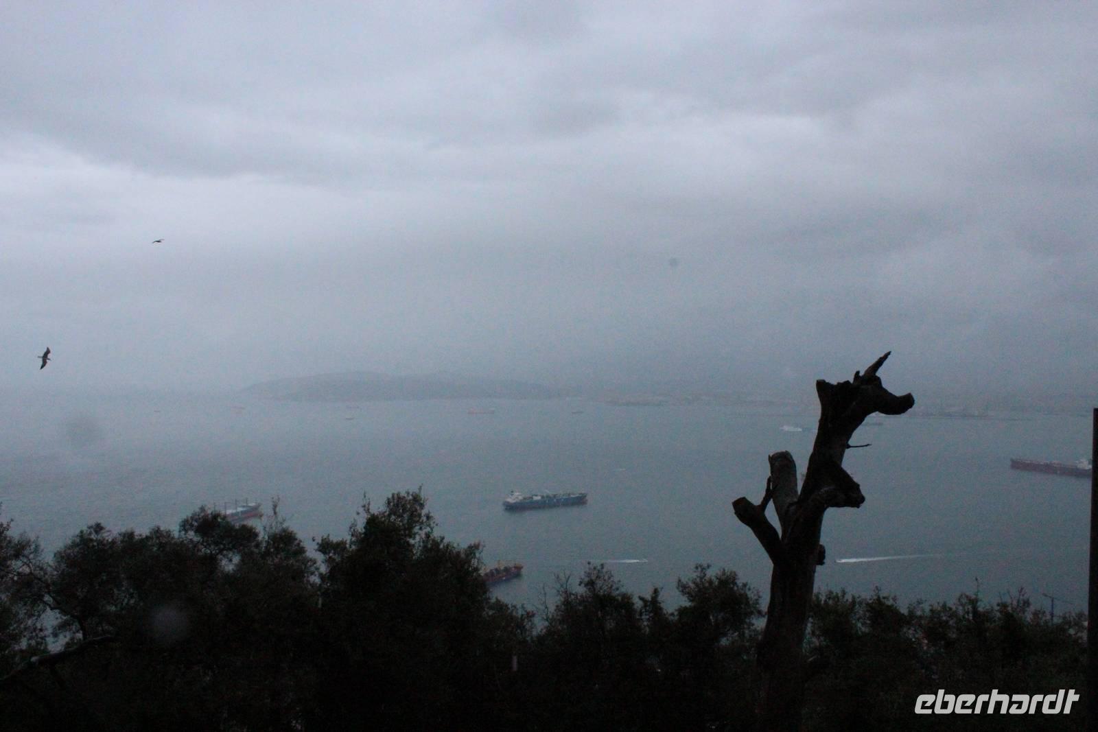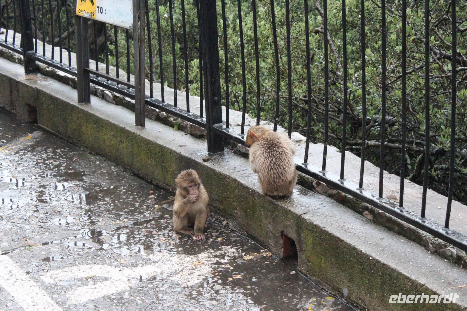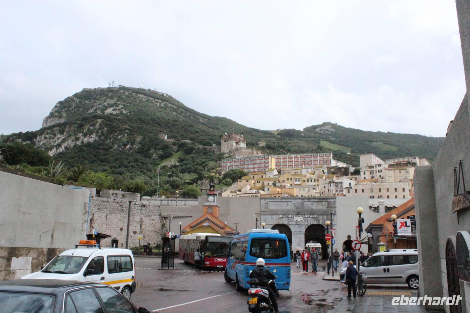 Am heutigen Tag konnten wir etwas länger schlafen, denn es ging nach Gibraltar. In Gibraltar angekommen fuhren wir über die Grenze, wo wir von einem Polizisten kontrolliert wurden. Nachdem wir die Grenze passiert hatten, fuhren wir über die Start- und Landebahn vom Flughafen Gibraltar. Dieses Ereignis wird es nicht mehr lange geben, denn es ist eine Änderung geplant. Auf dem Busparkplatz angekommen stiegen wir nach kurzer Zeit in einen kleinen Minibus, mit welchem wir zum Upper Rock hoch fuhren. Während der Fahrt spielte der Fahrer ein Tonband auf Deutsch ab und erklärte ab und an während der Fahrt einiges auf Englisch. Während dies geschah mussten wir oft lachen, denn es fielen solche Sätze wie: GBZ heißt im Volksmund „Great Beer Zone" oder das ist die Kleine Tower Bridge. Auf der Fahrt nach oben hielten wir an einem Zwischenstopp, hier konnten wir eine Moschee sehen und nach Afrika hinüber schauen. Leider hatten wir eine schlechte Sicht. Weiter nach oben sahen wir dann die Wahrzeichen von Gibraltar, die Gibraltar-Affen. Wir besichtigten die Tropfsteinhöhle und fuhren danach wieder herunter in die Stadt, wo wir in das Restaurant „The Clipper" essen gingen. Nachdem wir uns die Mägen mit dem tollen Essen vollgeschlagen hatten, besichtigten wir noch die Stadt.