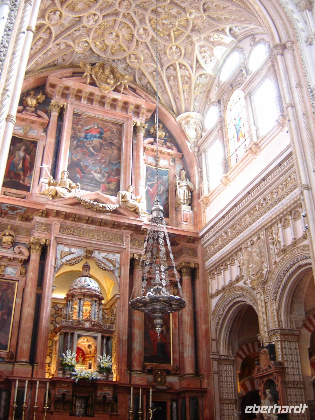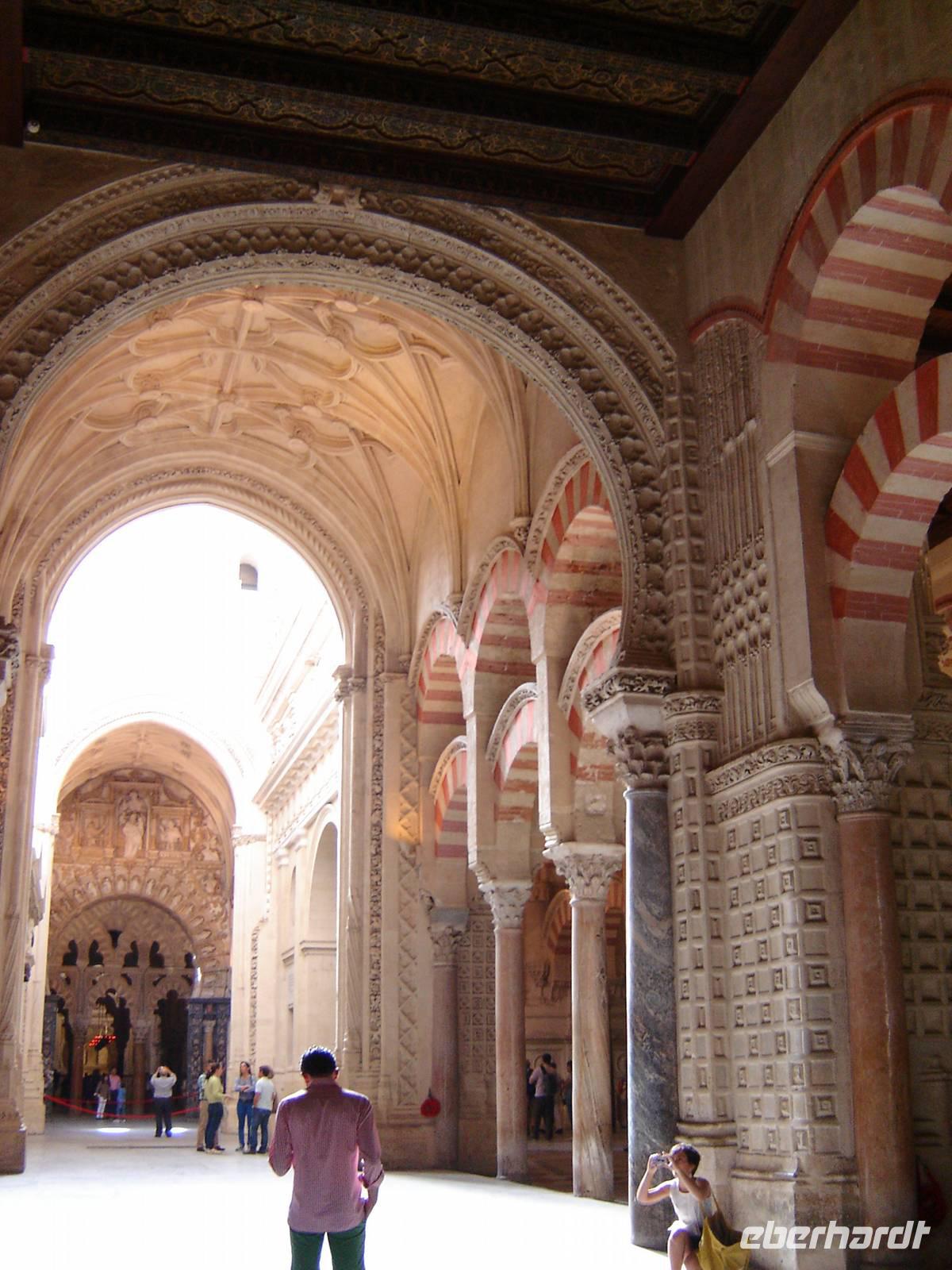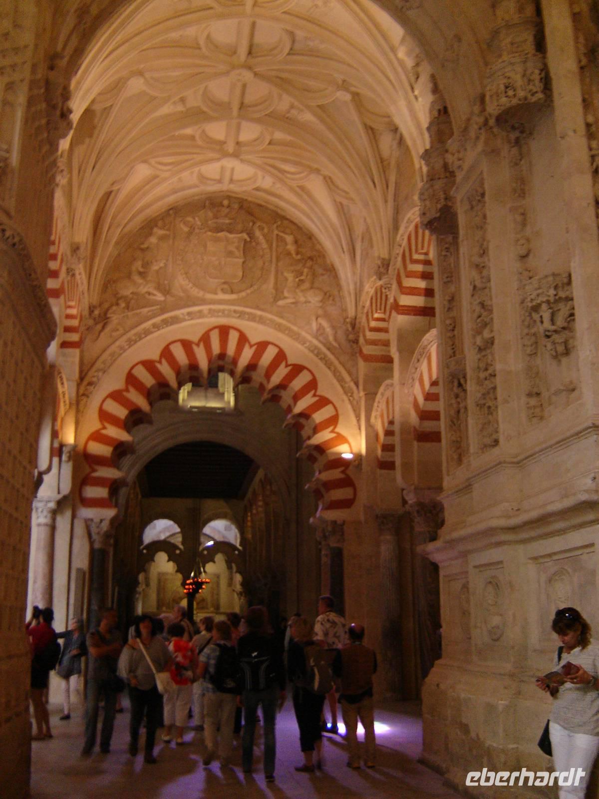 Die römische Brücke bildete den Haupteingang in die fantastische Altstaddt. Am Eingang der zauberhaften Mezquita-Catedral begrüßten wir unsere lokale Führerin Imma. Sie führte uns durch den Innenhof (Orangengarten), Patio de los Naranjos, in die beeindruckende Moschee mit einem faszinierenden Säulenwald im moslemischen Gebetsraum, die mit unzähligen bunten Mosaiksteinchen geschmückte Gebetsniesche Mihrâb und die grandiose Kuppelkonstruktion der Capilla Villaviciosa in Form einer Blüte. Wir alle waren ergriffen von der kostbaren Hinterlassenschaft der Omaijaden.