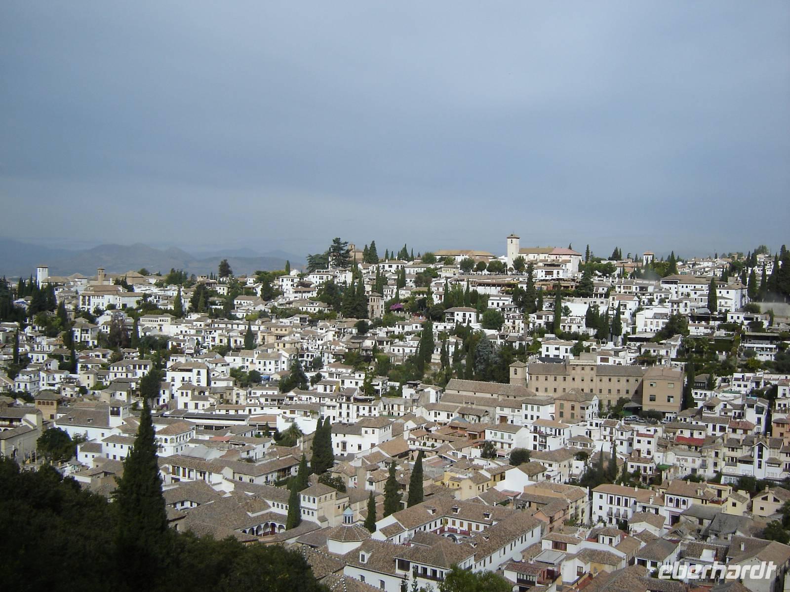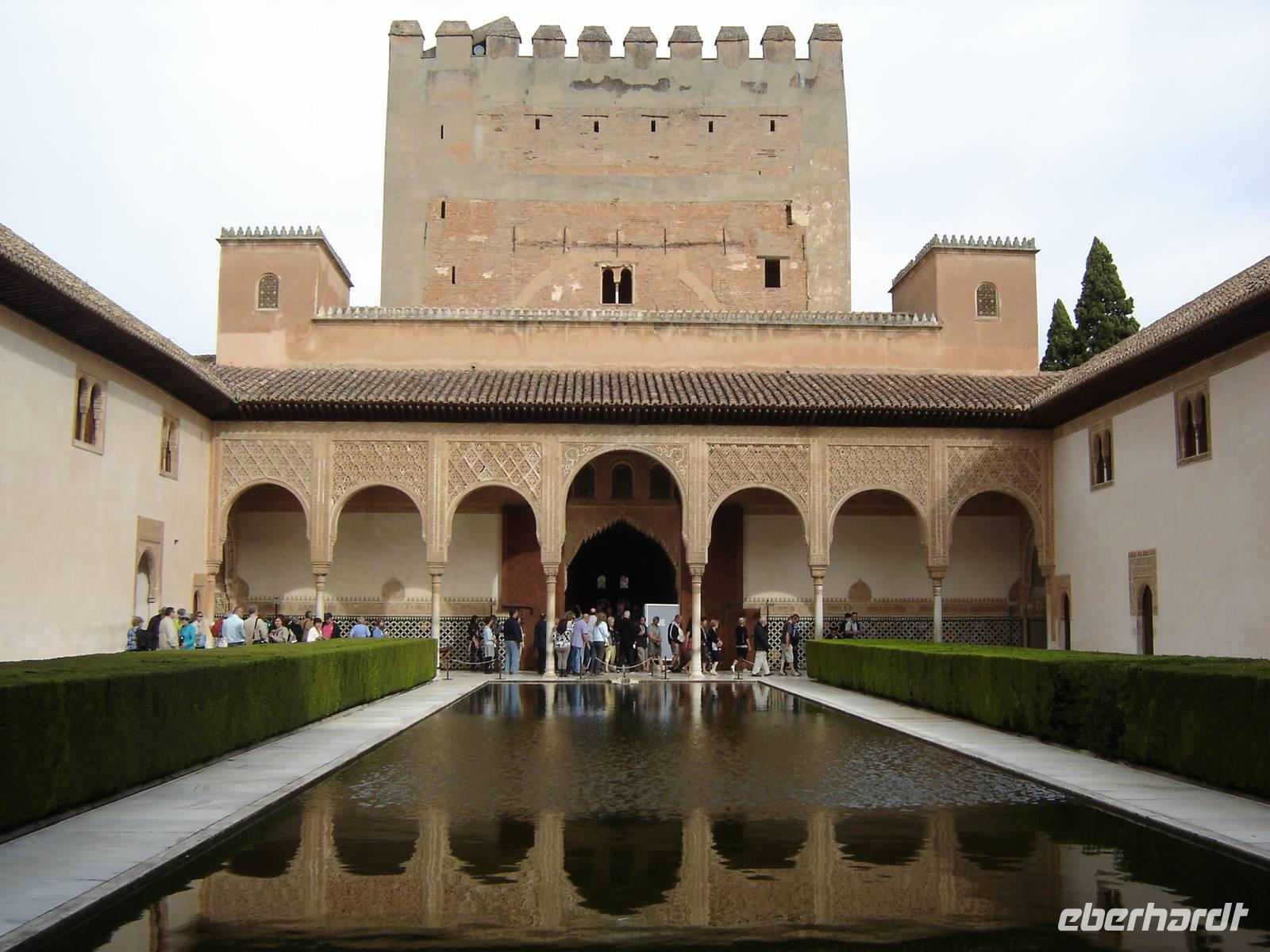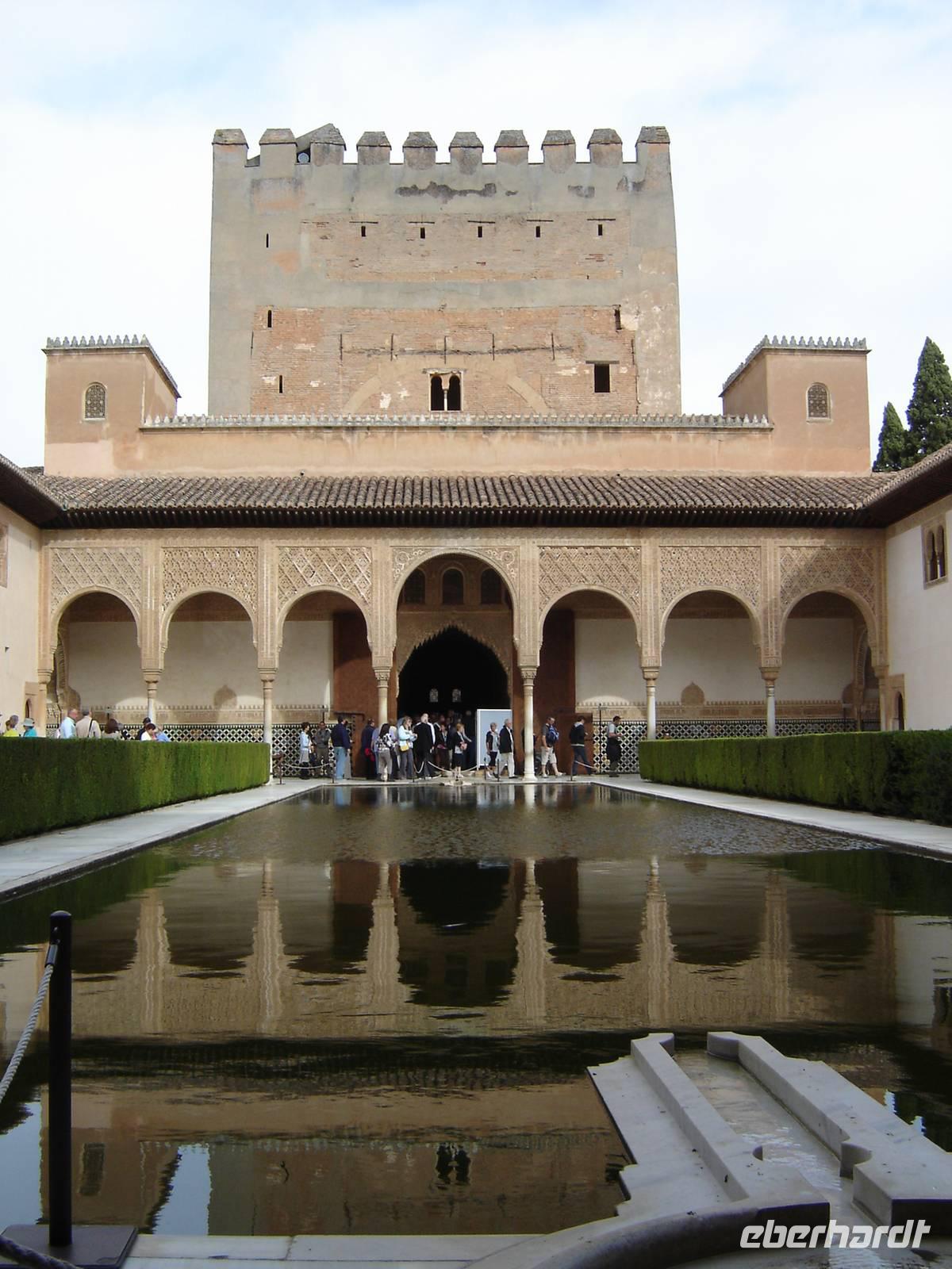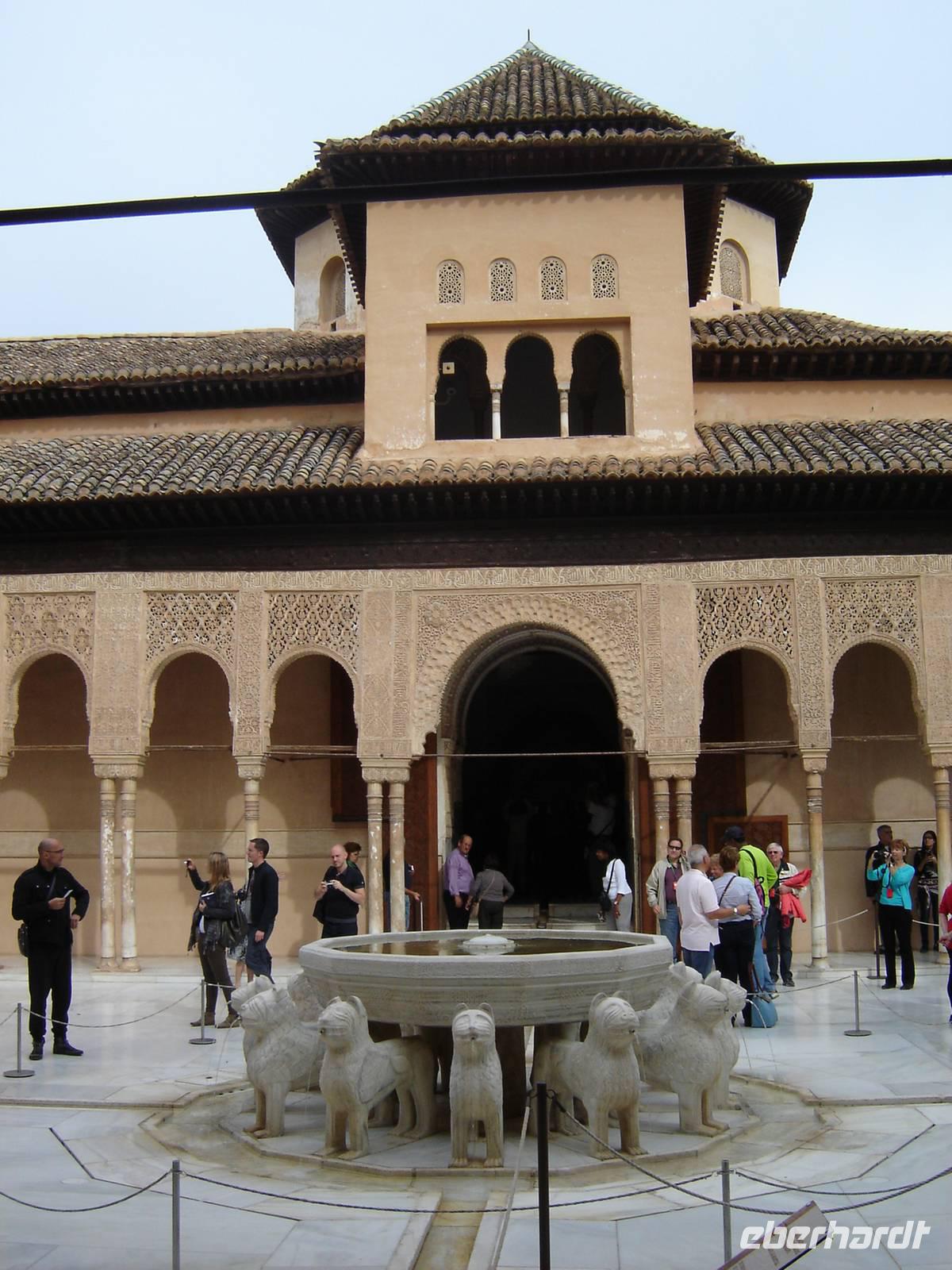Nun besuchten wir die berühmte und von uns lang ersehnte Alhambra (zu Deutsch „Rote Burg"). Sie ist eine der meist besuchten Monumente Spaniens. Der Name rührt von der Farbe des Hügels, auf dem sie errichtet wurde, wodurch ihre Mauern im Licht der Abendsonne rot erstrahlen. Die Alhambra ist nicht nur der bedeutendste, sondern zugleich der älteste und besterhaltene arabische Palast seiner Ära. Unsere lokale Führerin ging mit uns durch die Generalife, die Gärten der Alhambra, mit ihren labyrintharigen Wegen, Teichen und herrlichen Pflanzen. Die Anlage war gigantisch groß. Noch beeindruckender waren die Paläste: der Palast der Nasriden (ein klassisches Beispiel für den islamischen Palastbau und Wohnsitz der Könige von Granada), der Myrtenhof (Patio de los Arrayanes) waren mit vielen kunstvoll eingefassten Pforten, Zwillingsfenstern und Nischen, der Löwenhof (Patio de Leones), der Saal der zwei Schwestern (Sala de las dos Hermanas) in der Form eines achtzackigen Sterns ist die größte aller arabischen Stalaktitenwölbungen und der Saal der Könige (Sala de los Reyes). Deren atemberaubende Architektur und Liebe zum Detail verschlug uns allen die Sprache - kein Fleck blieb unverziert. - Für uns war das wie ein Traum aus Tausendundeiner Nacht.
