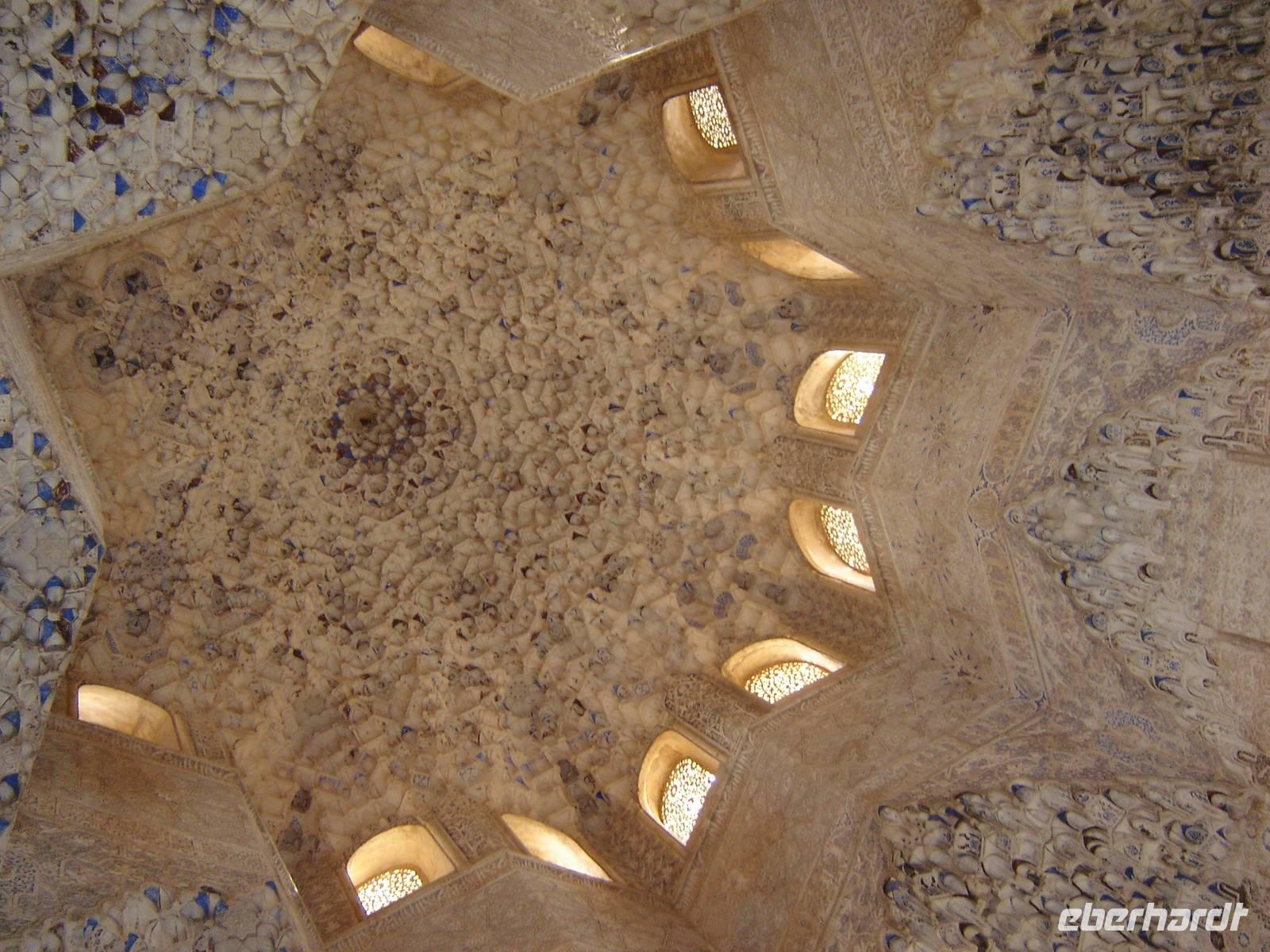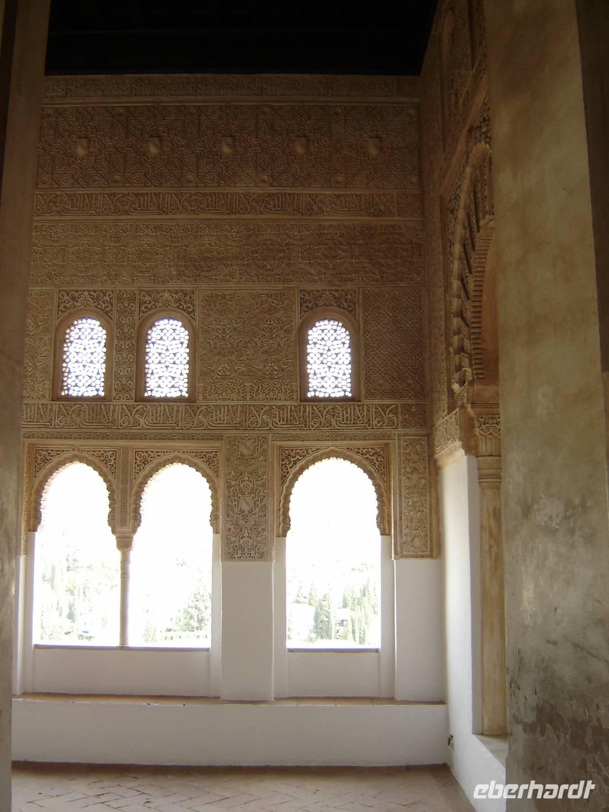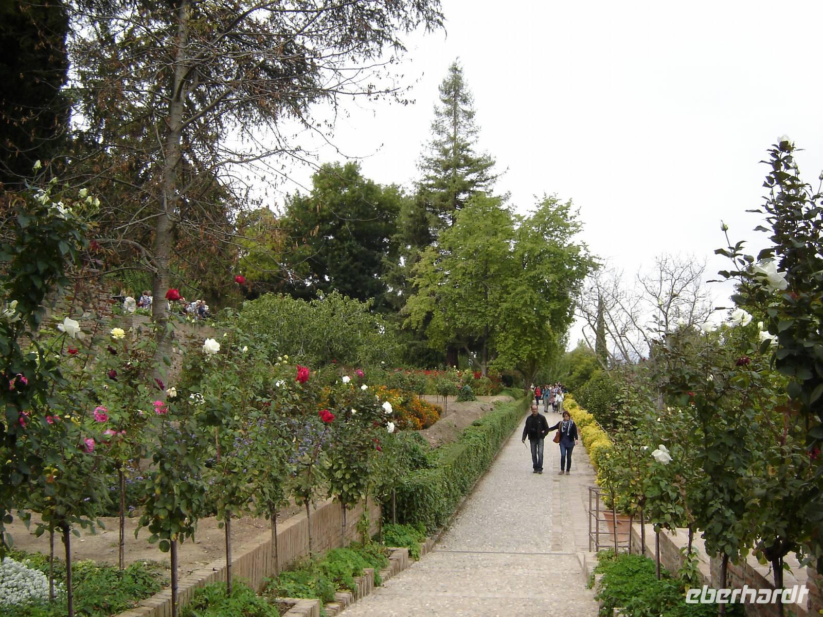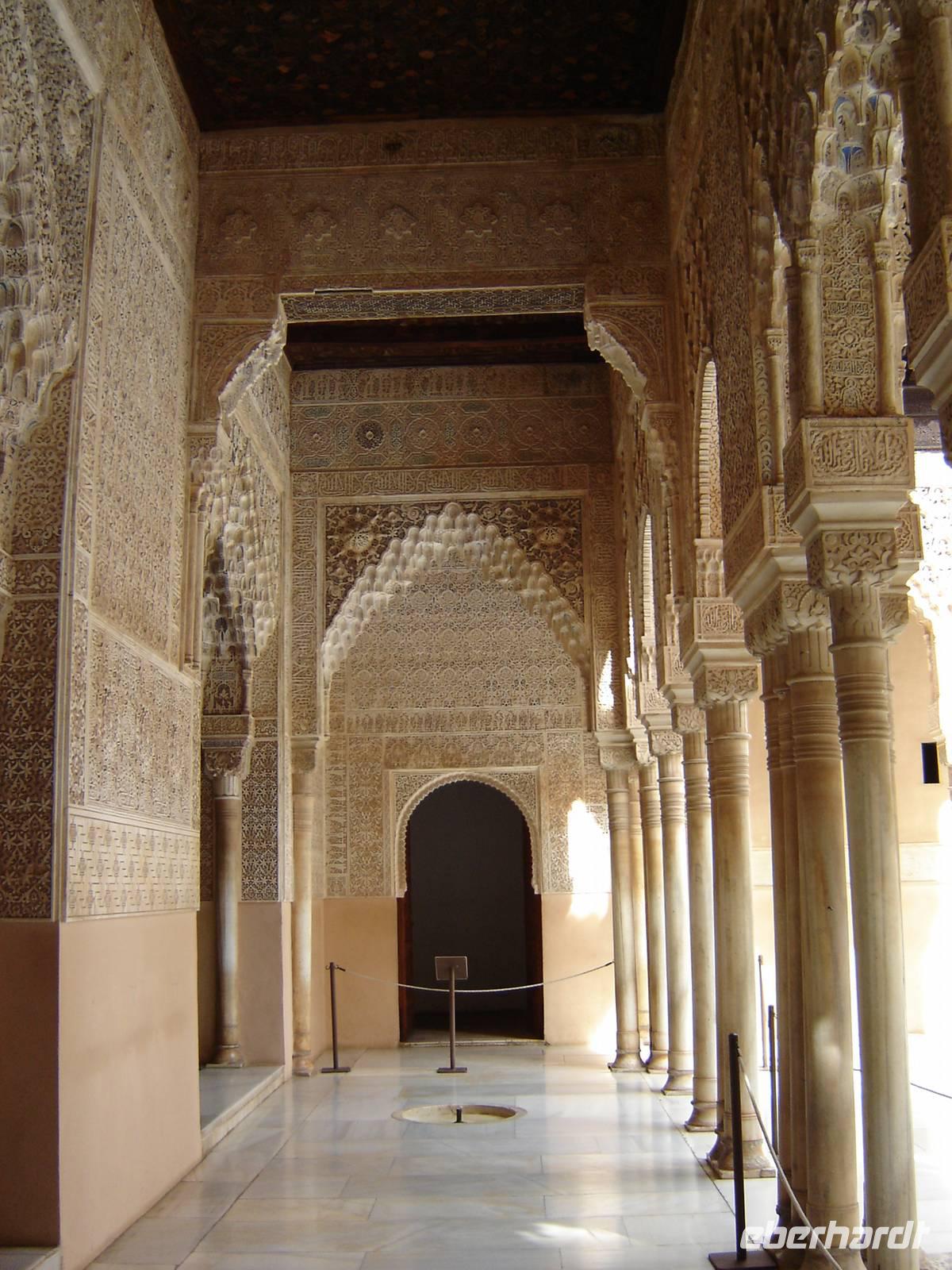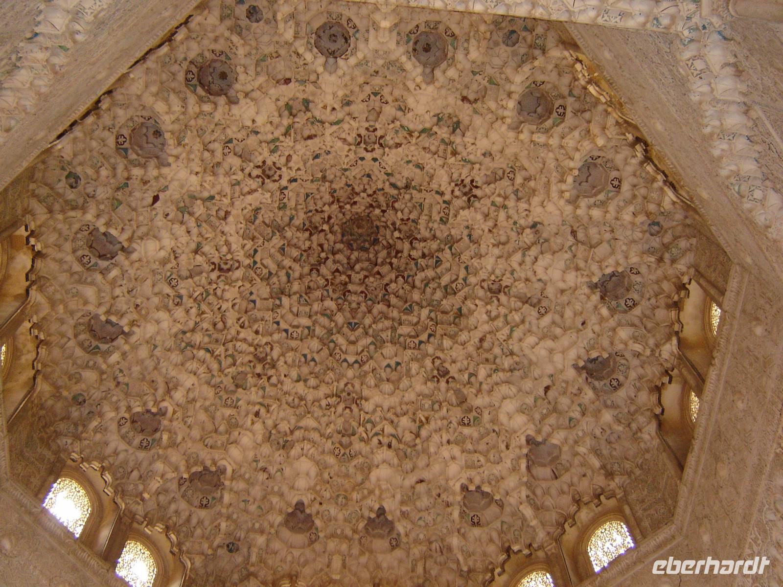 Nun besuchten wir die berühmte und von uns lang ersehnte Alhambra (zu Deutsch „Rote Burg"). Sie ist eine der meist besuchten Monumente Spaniens. Der Name rührt von der Farbe des Hügels, auf dem sie errichtet wurde, wodurch ihre Mauern im Licht der Abendsonne rot erstrahlen. Die Alhambra ist nicht nur der bedeutendste, sondern zugleich der älteste und besterhaltene arabische Palast seiner Ära. Unsere lokale Führerin ging mit uns durch die Generalife, die Gärten der Alhambra, mit ihren labyrintharigen Wegen, Teichen und herrlichen Pflanzen. Die Anlage war gigantisch groß. Noch beeindruckender waren die Paläste: der Palast der Nasriden (ein klassisches Beispiel für den islamischen Palastbau und Wohnsitz der Könige von Granada), der Myrtenhof (Patio de los Arrayanes) waren mit vielen kunstvoll eingefassten Pforten, Zwillingsfenstern und Nischen, der Löwenhof (Patio de Leones), der Saal der zwei Schwestern (Sala de las dos Hermanas) in der Form eines achtzackigen Sterns ist die größte aller arabischen Stalaktitenwölbungen und der Saal der Könige (Sala de los Reyes). Deren atemberaubende Architektur und Liebe zum Detail verschlug uns allen die Sprache - kein Fleck blieb unverziert. - Für uns war das wie ein Traum aus Tausendundeiner Nacht.