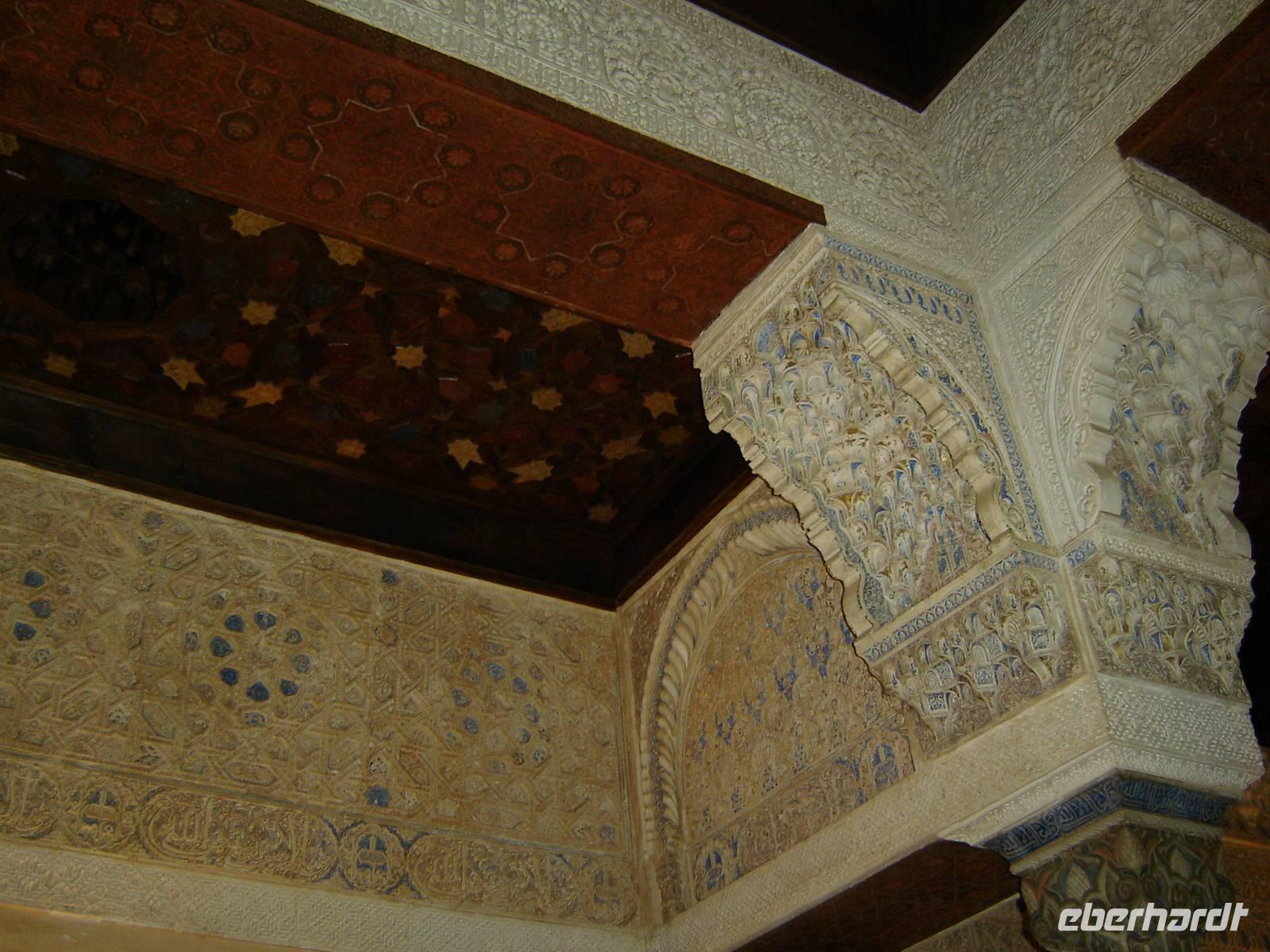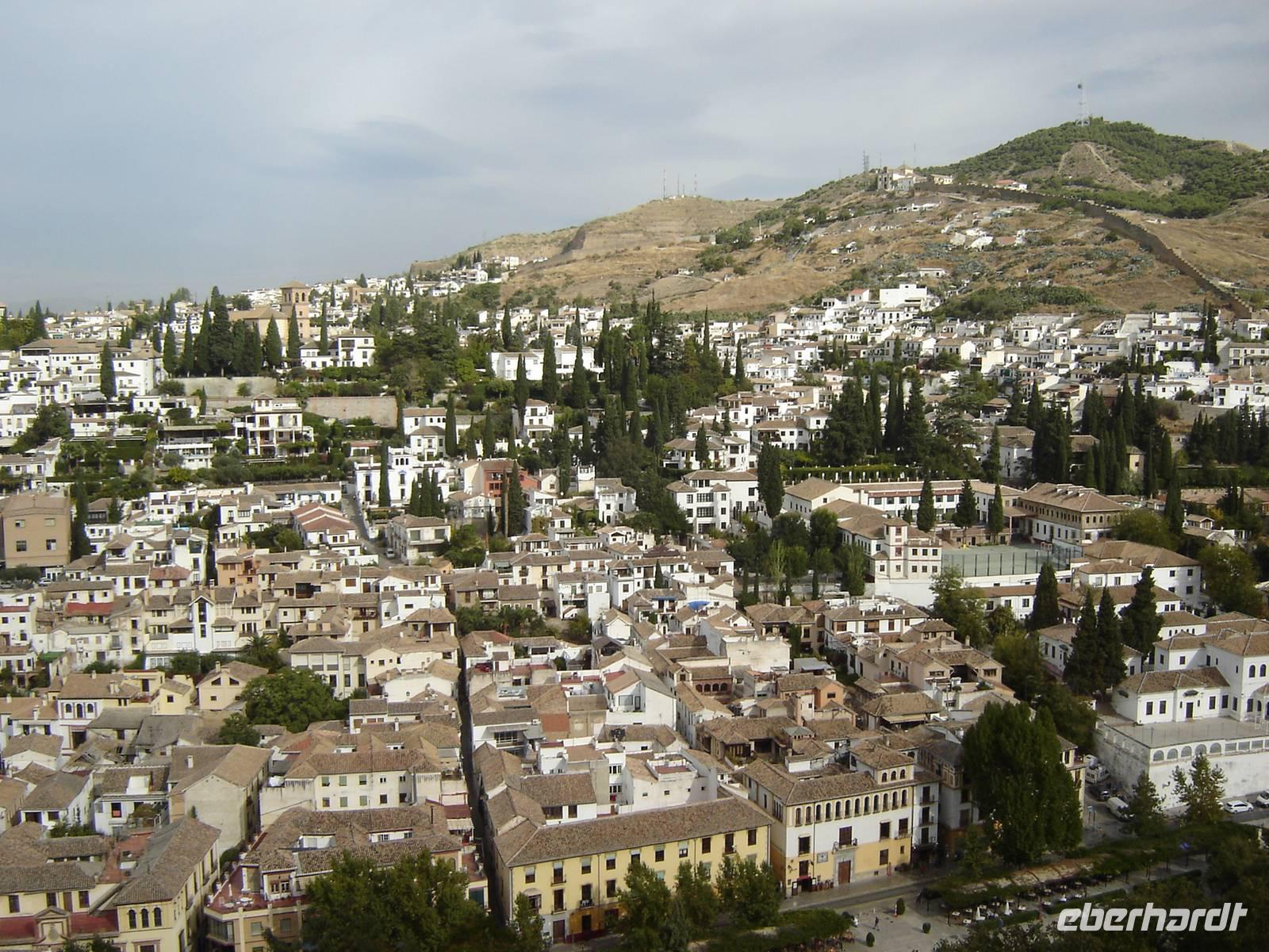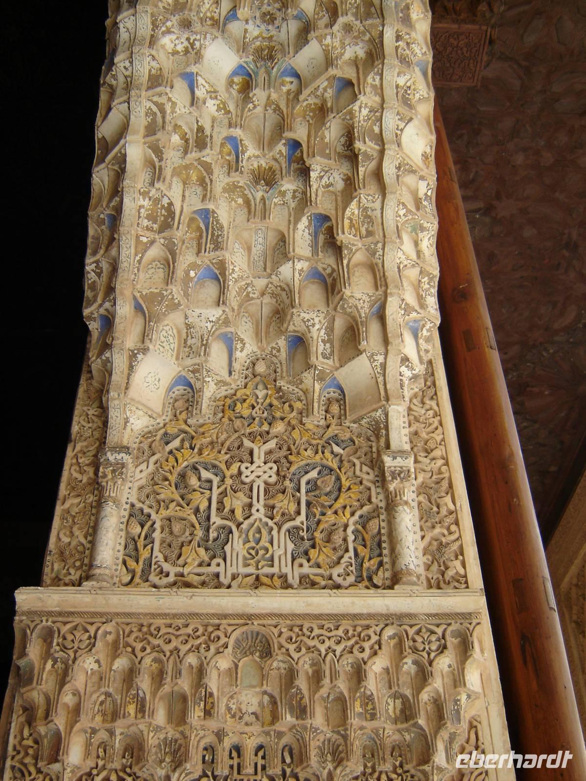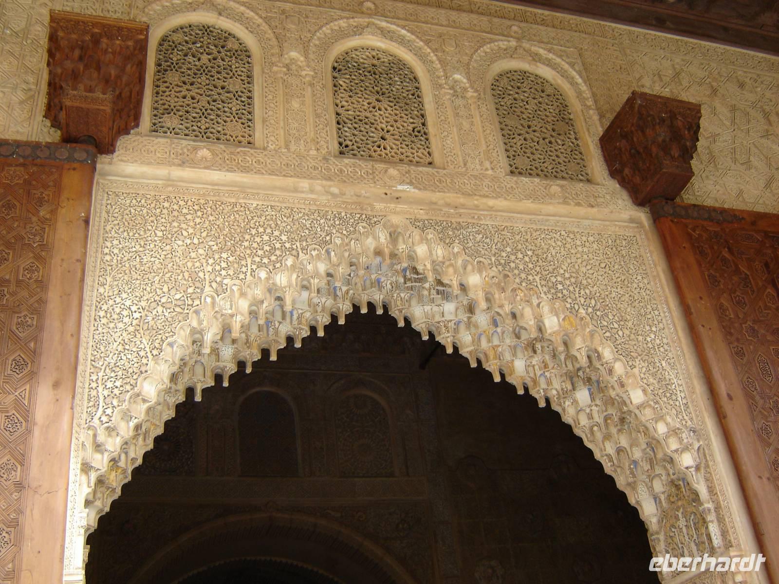 Nun besuchten wir die berühmte und von uns lang ersehnte Alhambra (zu Deutsch „Rote Burg"). Sie ist eine der meist besuchten Monumente Spaniens. Der Name rührt von der Farbe des Hügels, auf dem sie errichtet wurde, wodurch ihre Mauern im Licht der Abendsonne rot erstrahlen. Die Alhambra ist nicht nur der bedeutendste, sondern zugleich der älteste und besterhaltene arabische Palast seiner Ära. Unsere lokale Führerin ging mit uns durch die Generalife, die Gärten der Alhambra, mit ihren labyrintharigen Wegen, Teichen und herrlichen Pflanzen. Die Anlage war gigantisch groß. Noch beeindruckender waren die Paläste: der Palast der Nasriden (ein klassisches Beispiel für den islamischen Palastbau und Wohnsitz der Könige von Granada), der Myrtenhof (Patio de los Arrayanes) waren mit vielen kunstvoll eingefassten Pforten, Zwillingsfenstern und Nischen, der Löwenhof (Patio de Leones), der Saal der zwei Schwestern (Sala de las dos Hermanas) in der Form eines achtzackigen Sterns ist die größte aller arabischen Stalaktitenwölbungen und der Saal der Könige (Sala de los Reyes). Deren atemberaubende Architektur und Liebe zum Detail verschlug uns allen die Sprache - kein Fleck blieb unverziert. - Für uns war das wie ein Traum aus Tausendundeiner Nacht.