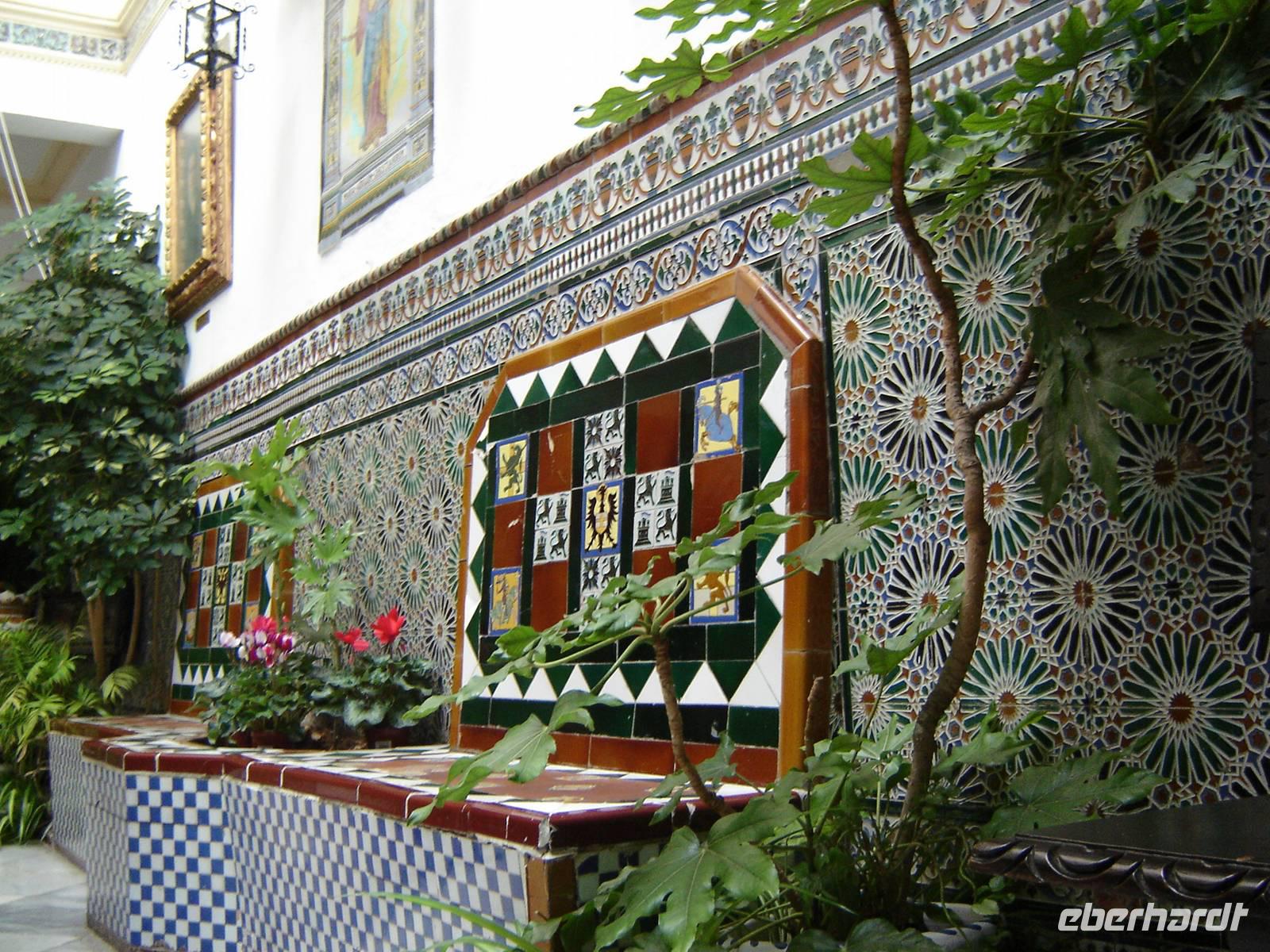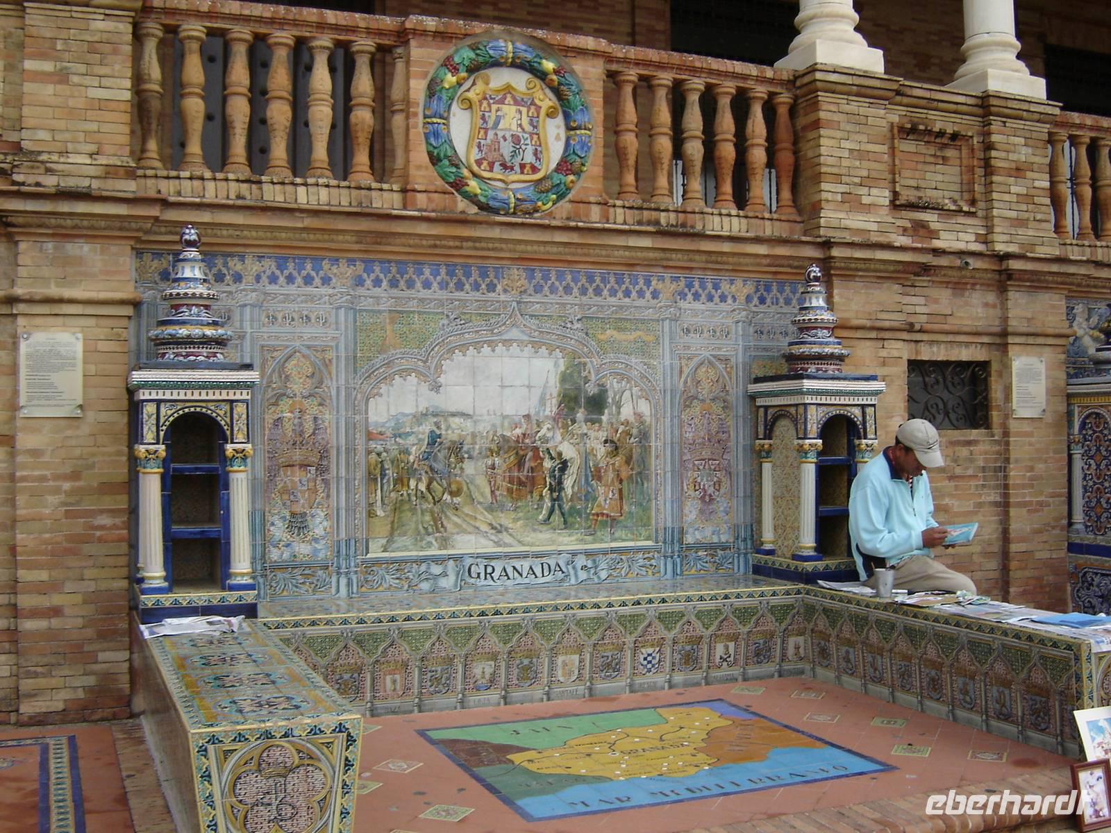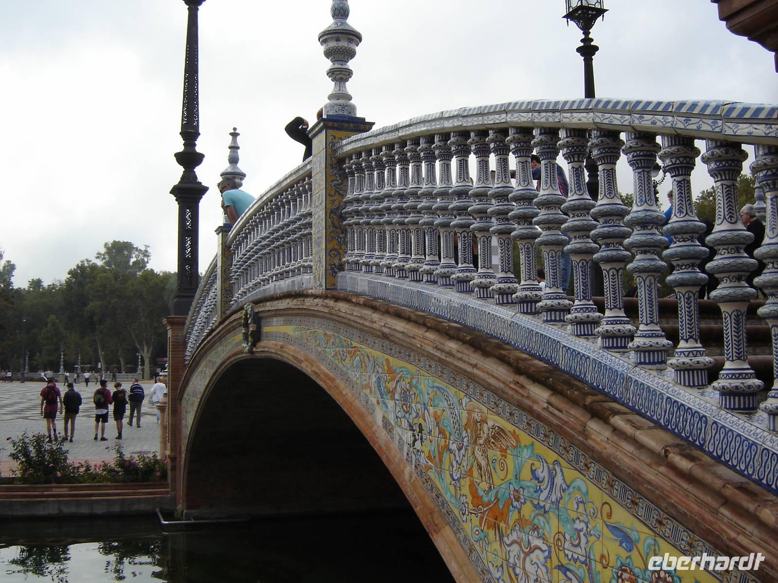 Unser erstes Highlight war der Plaza Espana, ein entzückender kreisförmiger Platz mit venezianischen Brücken. Der sich darauf befindende Palacio de Espana wird mit bunten bunt bemalten Kacheln, Bildern und Wappen aller 50 spanischen Provinzen beschmückt. Der Architekt Aníbal González beabsichtigte alle Stilrichtungen der spanischen Architektur zu zitieren.