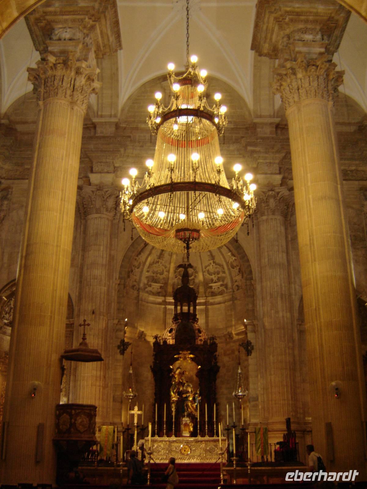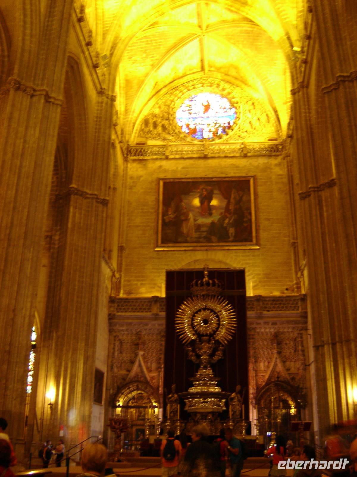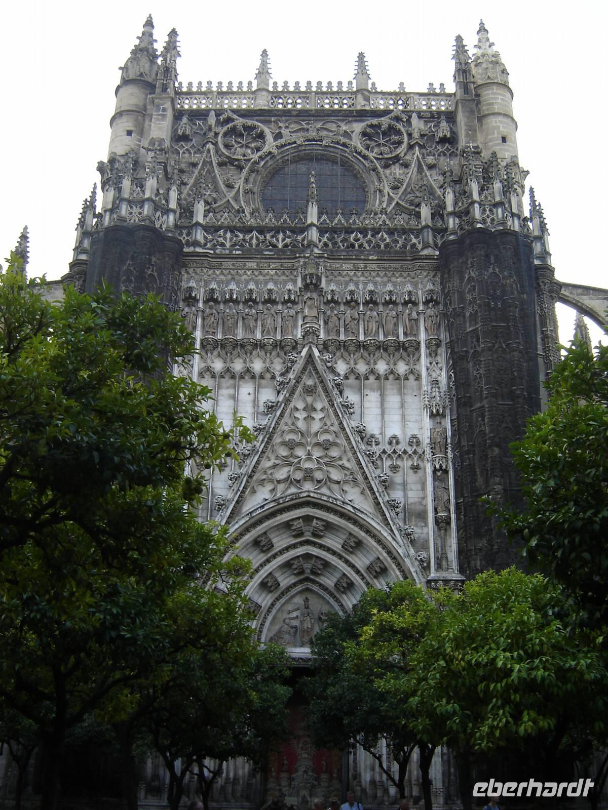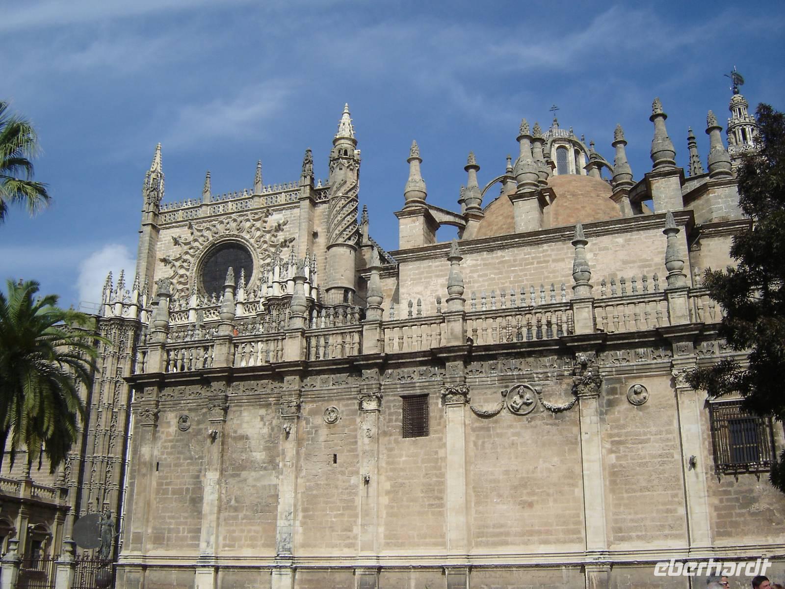 In der Altstadt erwartete uns dann unser lokaler Gästeführer, welcher uns die schönen Gärtenanlagen und volkstümliche Viertel zur Kathedrale Santa Maria de la Sede und dem königlichen Palast zeigte. Die Kathedrale von Sevilla ist die größte gothische Kathedrale der Welt und beherbergt den höchsten Blattgold-Altar. In ihr befindet sich auch der Sarkophag, welches die Gebeine von Christoph Kolumbus beinhalten sollen. Das Grabmal wird von vier männlichen Gestalten getragen, welche die Königreiche Navarra, León, Aragón und Kastilien symbolisieren.