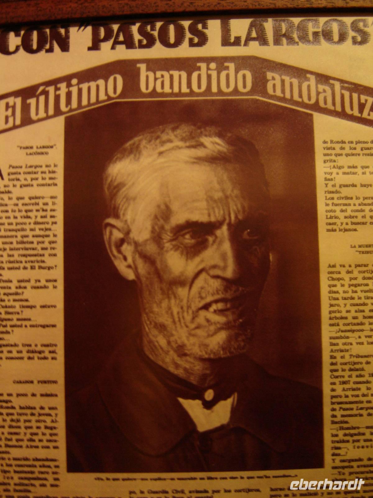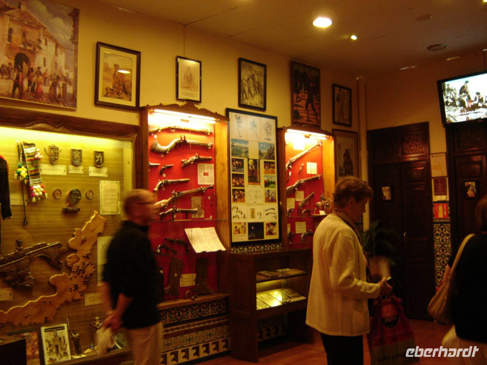 Als nächstes besuchten wir die Kirche Santa Maria la Mayor. Sie ist einer der wichtigsten Denkmäler der Stadt und beherbergt handgeschnitzte Ritualobjekte wie Throne aus Holz, auf denen die heiligen Ikonen zur Osterprozession zu Semana Santa durch die Stadt getragen werden. Die Kirche beinhaltet zudem ein Museum, in dem Ornamente, Bilder und Goldschmiedekunst ausgestellt sind.Nur wenige Schritte entfernt befand sich das „Museo del Bandolero", in dem sehr lebendig das Räuberwesen in Rondas Bergwelt anhand von Bildern, Waffen, Puppen und Steckbriefen berühmter Räuber dargestellt wird. Es heißt, reiche Leute wurden in ihren Kutschen überfallen, um die Beute an die arme Bevölkerung zu verteilen. Die Banditen trieben bis ins 20. Jahrhundert ihr Unwesen. Der letzte Bandit verlor sein Leben im Jahre 1934 bei einem Schusswechsel mit der Polizei.