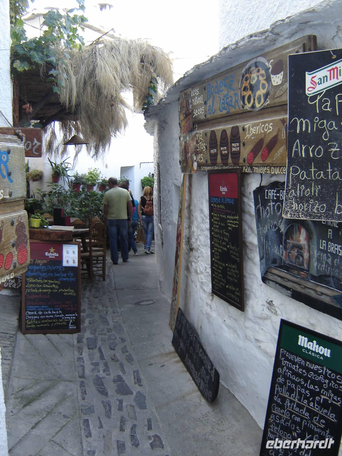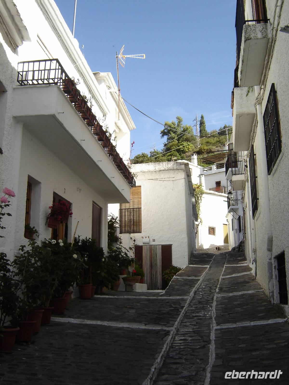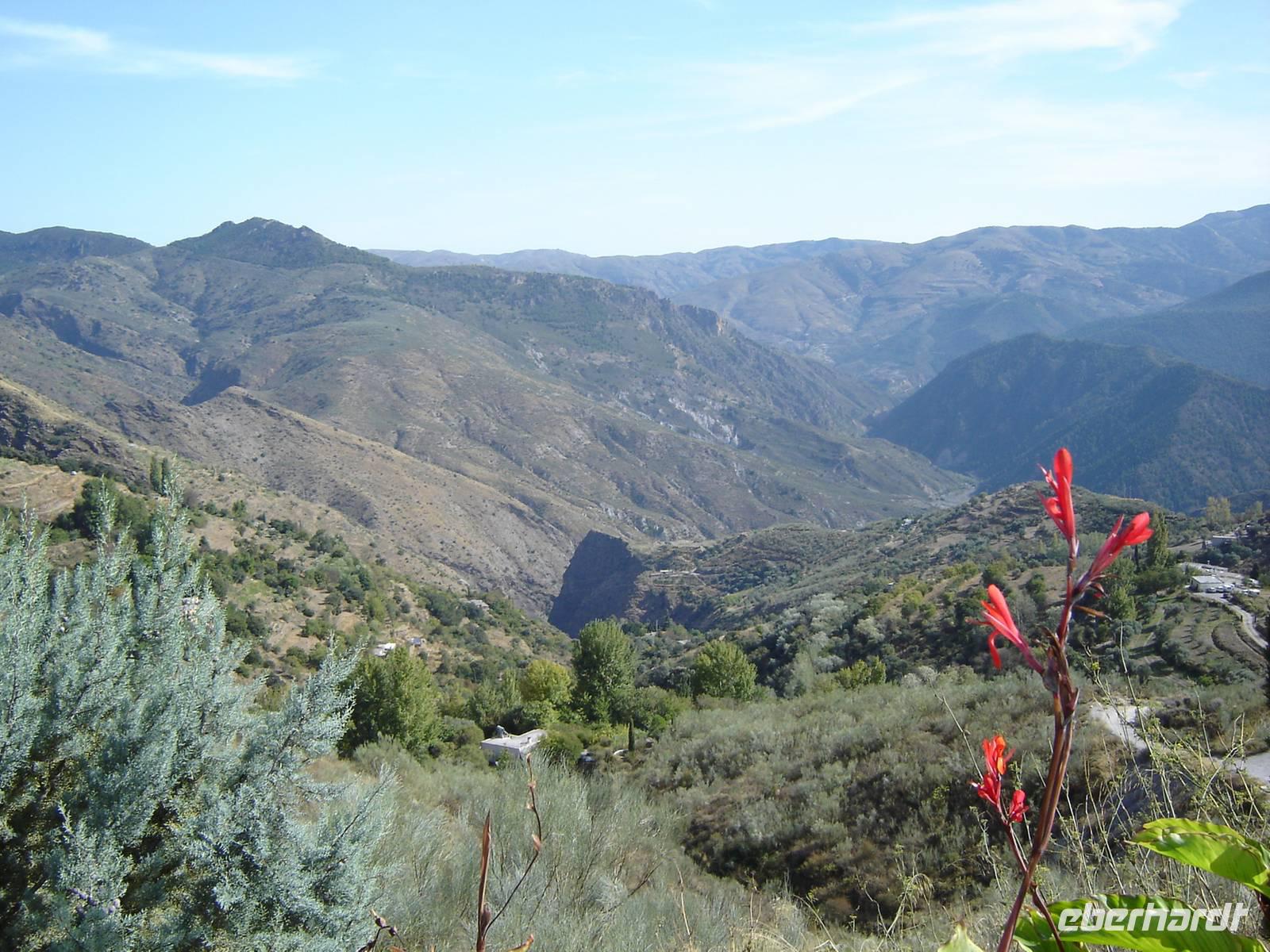 Wir begeben uns im Anschluss nach Pampaneira, einem reizenden kleinen Dorf, welcher zur Ortschaft „El Barranco de Poqueira" gehört. Die weißgetünchten Häuschen mit bunten blumenbepflanzten Balkonen, flachen Dächer und die fast unberührte Natur der Berglandschaft verschaffen eine unglaublich idyllische und ruhige Atmosphäre. Kein Wunder also, dass dieses kleine Dorf schon mehrfach ausgezeichnet wurde, als eines der schönsten Dörfer Spaniens. Wir spüren sofort den kunsthandwerklichen Reichtum des Dörfchens. Die engen Gassen, zahlreichen Teppich- und Schmuckläden sowie die Künstler, die an ihren Straßenständen ihre Geschicklichkeit bei der Herstellung von kleinen Figuren zeigten, luden zum Verweilen ein.