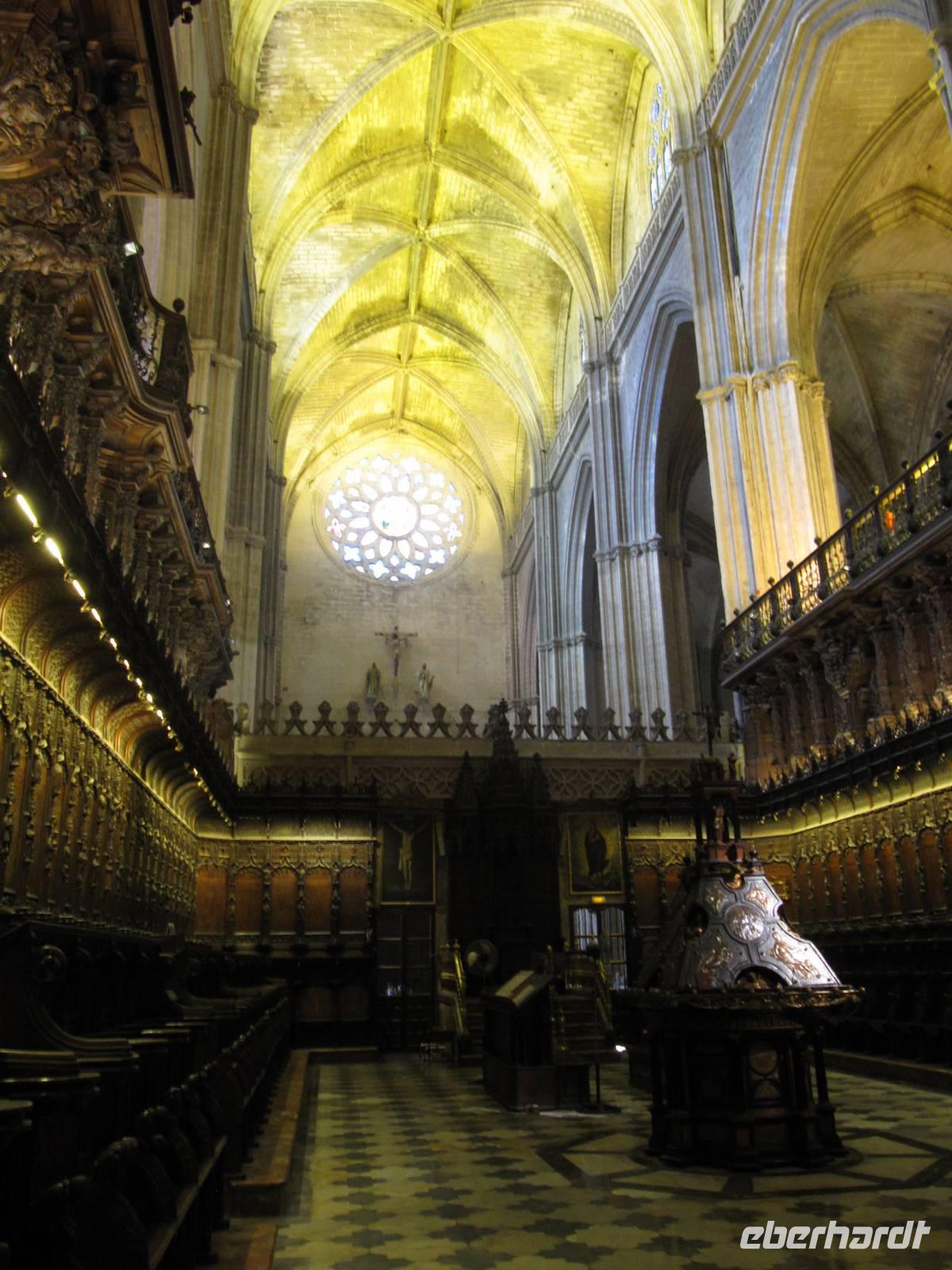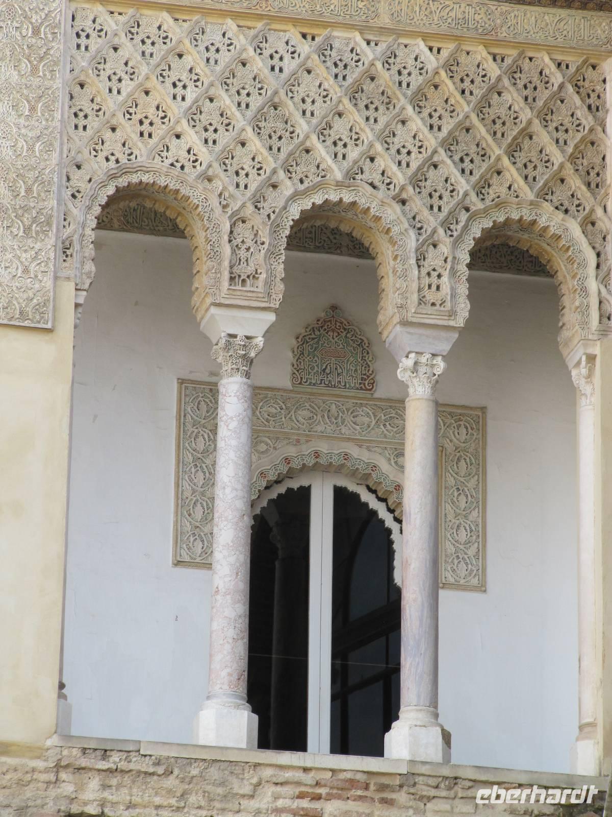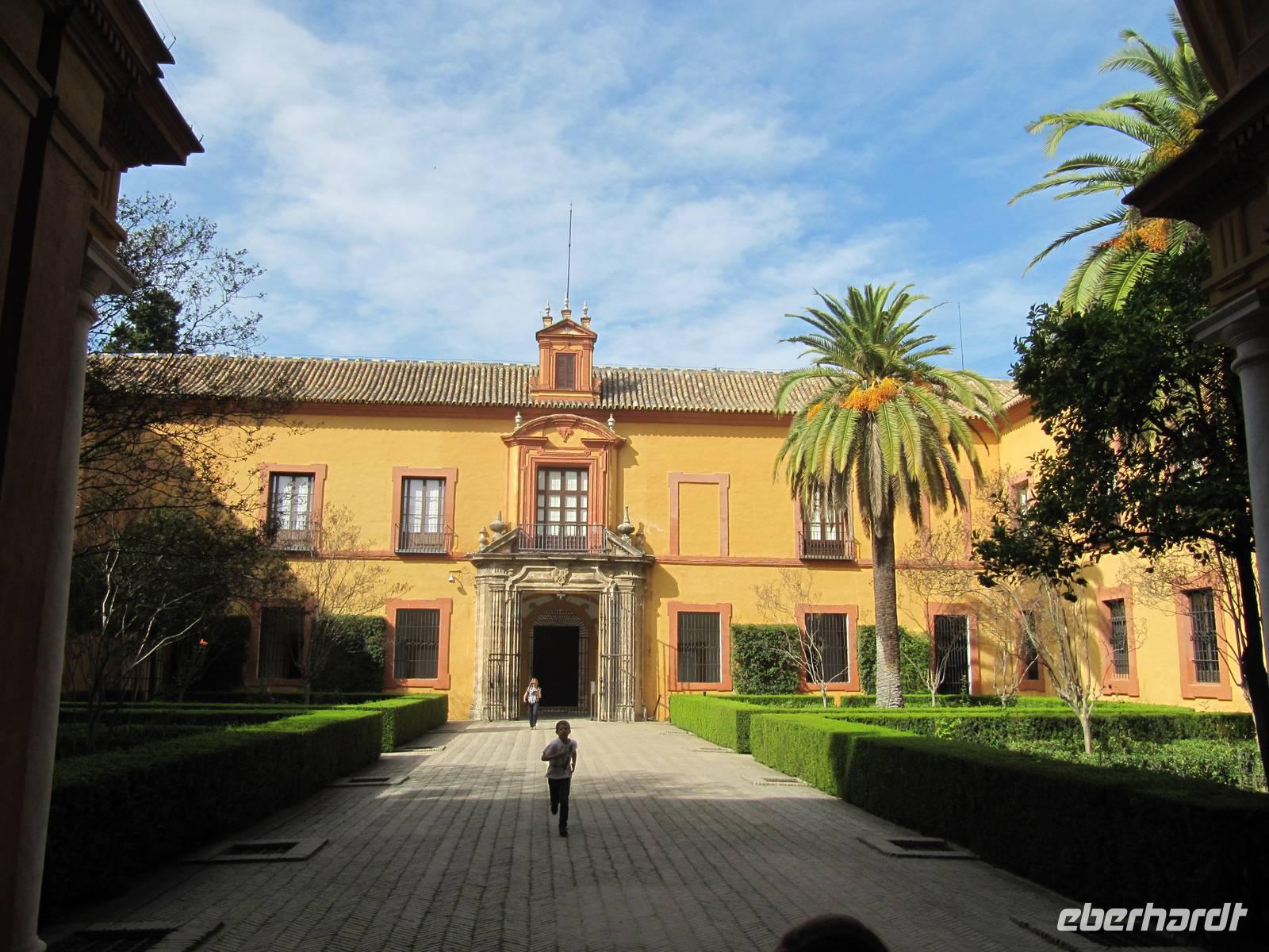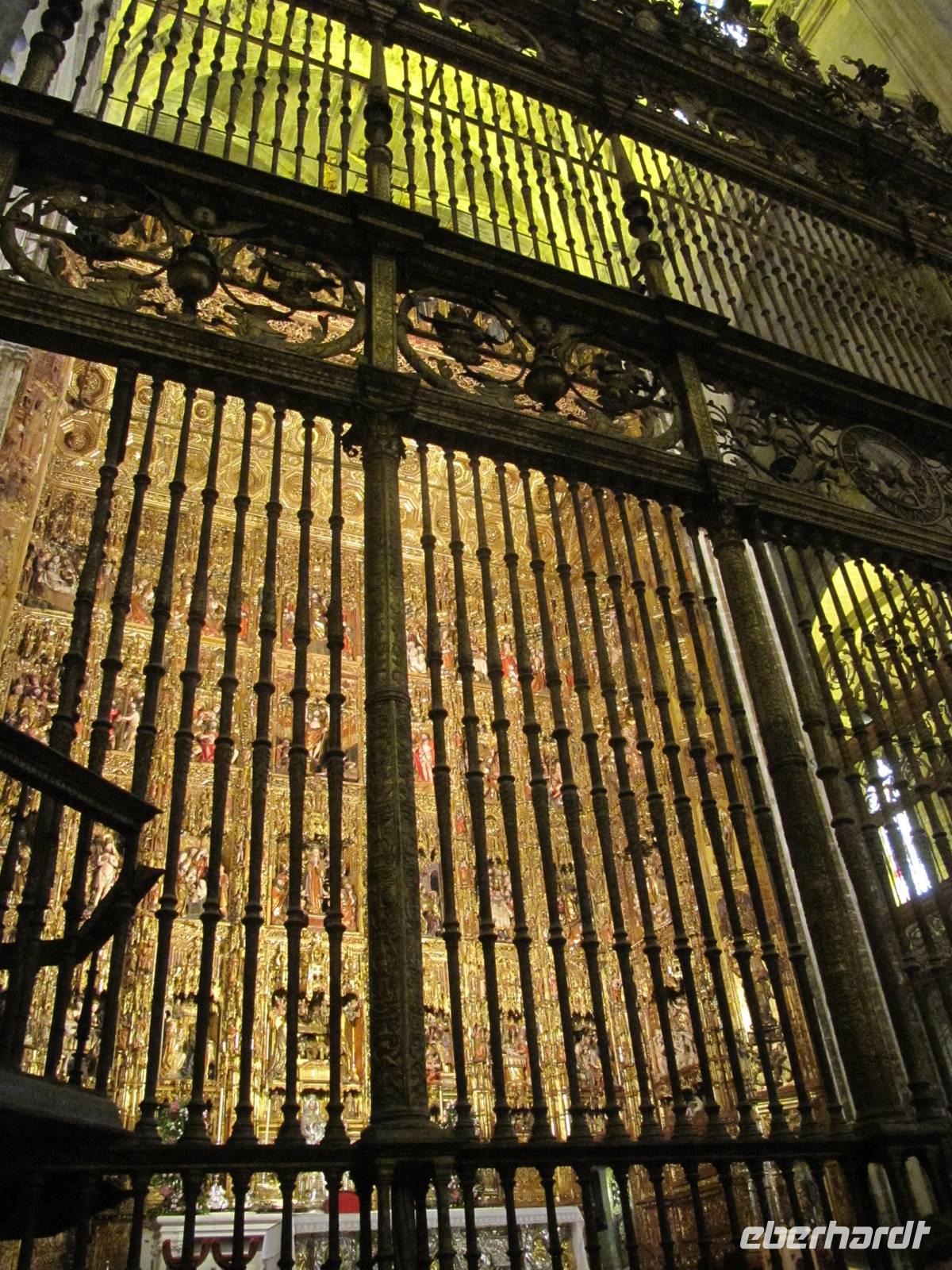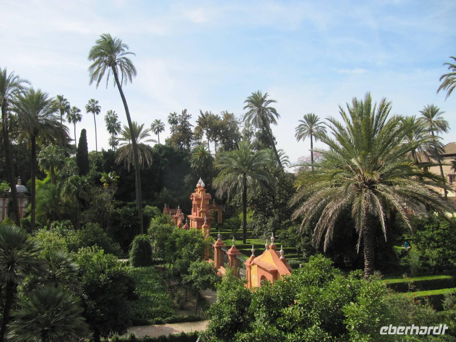 Der sechste Tag unserer Reise führte uns durch unendliche Olivenplantagen bis nach Sevilla, der größten Stadt Andalusiens und Hauptstadt der autonomen Region Andalusien. Während der Zeit bis zu unserem Treffen mit dem örtlichen Reiseleiter zur Besichtigung der der größten gotischen Kirche der Welt genossen wir einen Spaziergang durch die breiten, auf beiden Seiten von Orangenbäumen gesäumten Alleen und Straßen. Das 95 m hohe Giralda, Wahrzeichen Sevillas war einst das Minarett der Moschee, ist aber heute der Glockenturm der Kathedrale. Kunstvoll und beeindruckend fanden wir auch das Grabmal des Kolombus (in Valladolid gestorben), den größten Hochaltar der Welt und den Orangenhof „Patio de los Naranjos". Danach begaben wir uns zur Palastburg der Almohaden „El Alcázar". Maurische Kuppeln, Stilelemente der islamischen Architektur wie die Al Muqarnas und die Schönheit von großartigen Gärten des Álcazar faszinierten uns sehr. Danach probierten wir sehr leckere Tapas in der Nähe des alten Judenviertels, bekannt als „Barrio de Santa Cruz". Der sehr spannende Bummel durch die engen Gässchen führte uns vorbei an mit Ornamenten verzierten Gebäuden in Richtung des markanten „Plaza de España". Der mit neomaurischen Elementen geschmückte Platz zeigte eine Azulejo-Darstellungen aller 50 spanischen Provinzen.