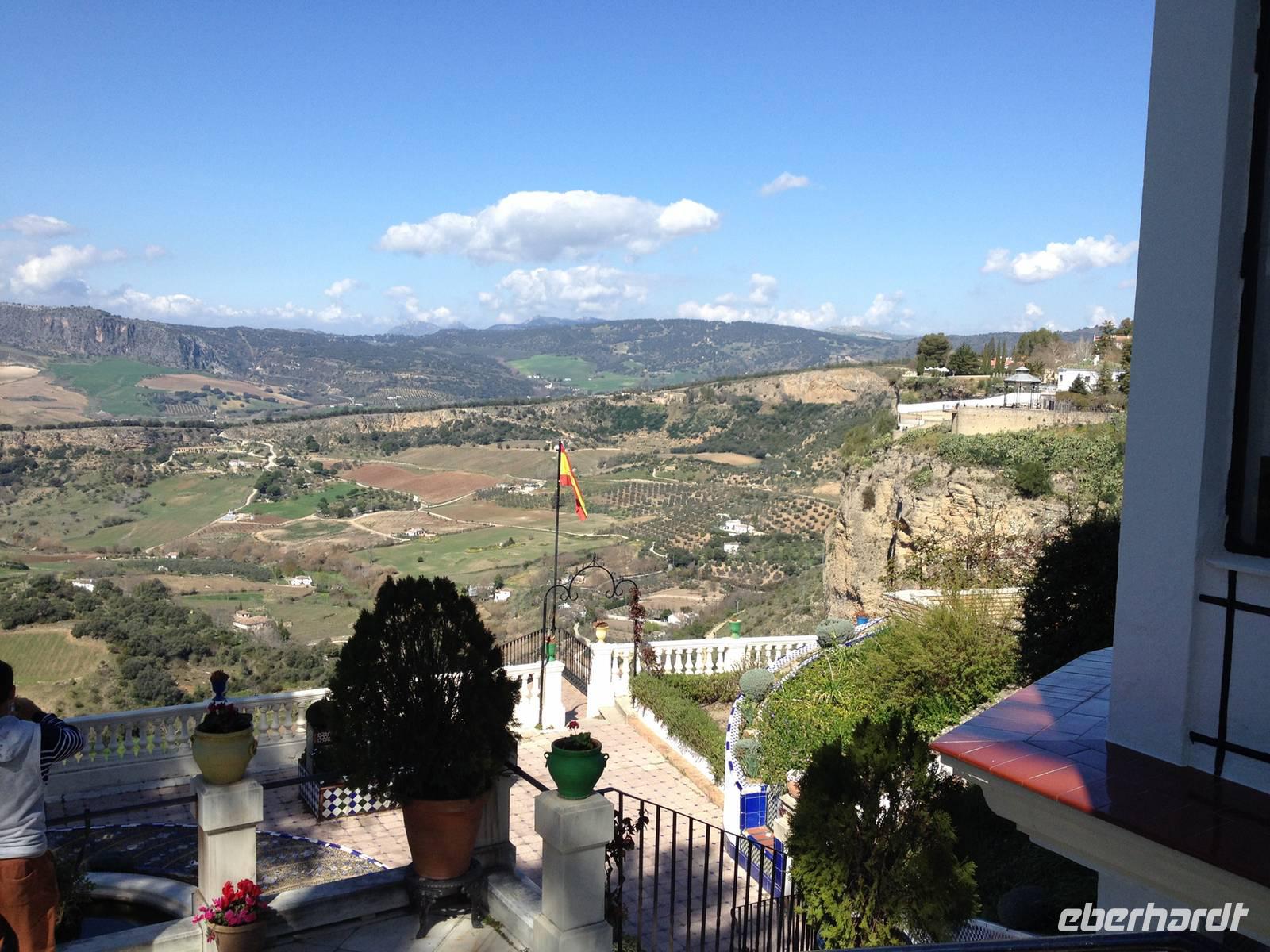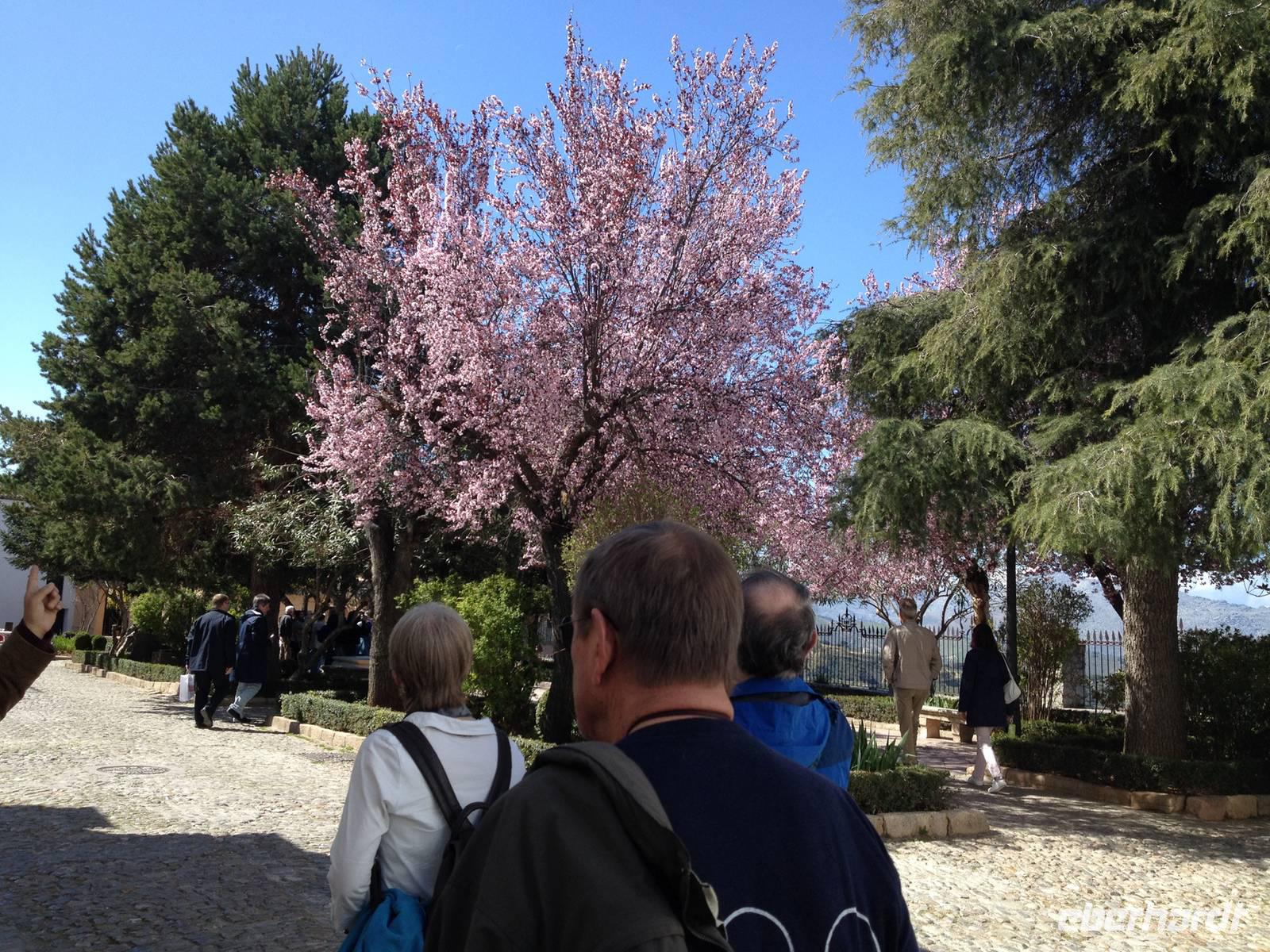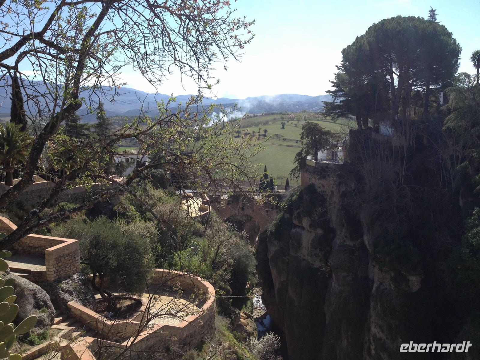 Auf der Fahrt nach Ronda genossen wir die schöne Landschaft und konnten unterwegs auch einige Stiere und Ziege sehen. Reiseleiter Armando erwartet uns, um uns Ronda zu zeigen. Wir kamen mit deutscher Pünktlichkeit an und deswegen gab er uns ein kleines Geschenk am Anfang der Besichtigung. “ Los Jardines de Cuenca”, eines kleiner Garten mit schönes Ausblicken zur Brücke und einem Panorama über Ronda.