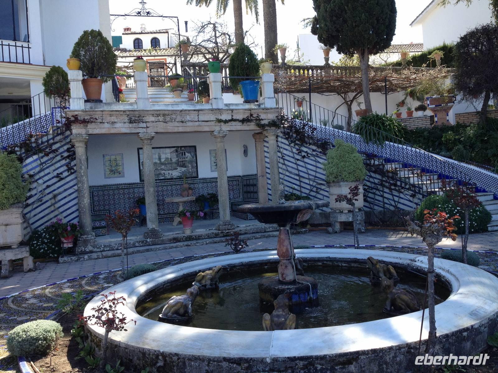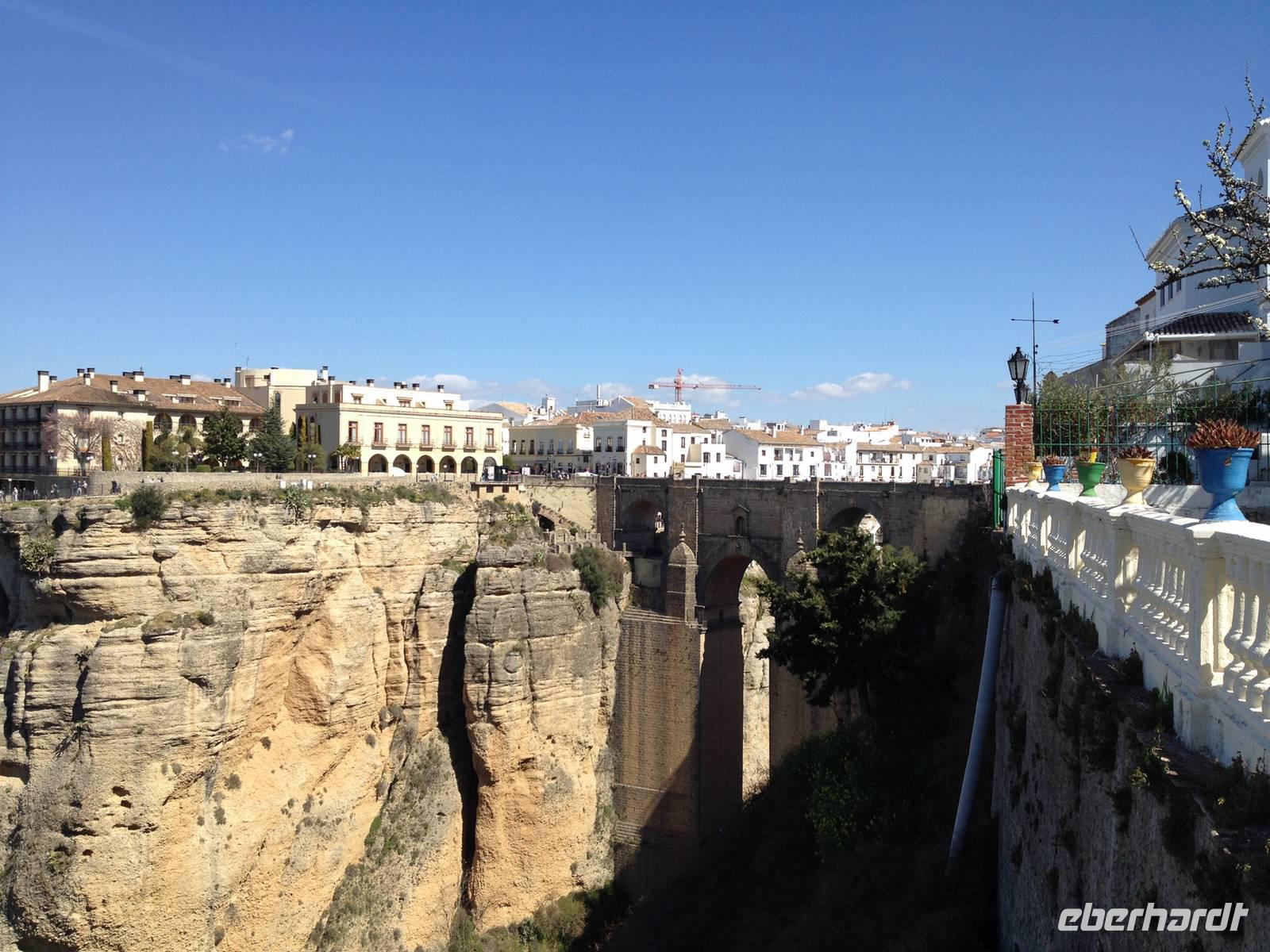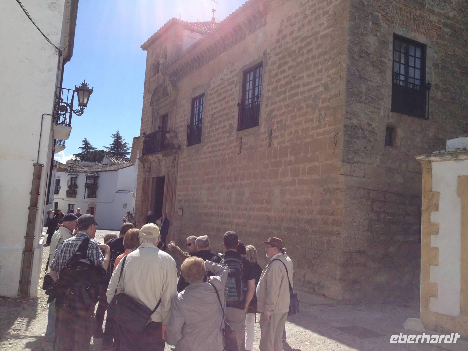 Auf der Fahrt nach Ronda genossen wir die schöne Landschaft und konnten unterwegs auch einige Stiere und Ziege sehen. Reiseleiter Armando erwartet uns, um uns Ronda zu zeigen. Wir kamen mit deutscher Pünktlichkeit an und deswegen gab er uns ein kleines Geschenk am Anfang der Besichtigung. “ Los Jardines de Cuenca”, eines kleiner Garten mit schönes Ausblicken zur Brücke und einem Panorama über Ronda.