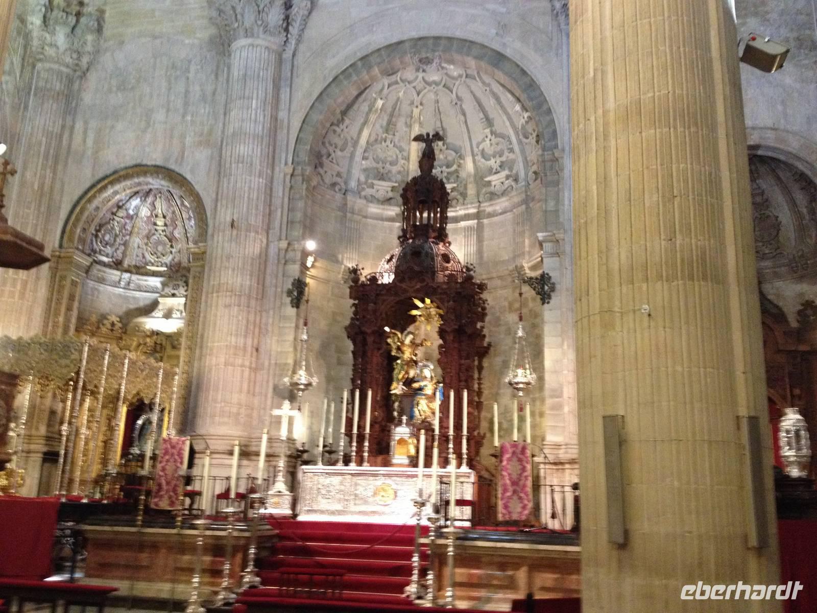 Danach überquerten wir die Brücke zur Altstadt und waren in dem bekannten Don Bosco Haus, welches ein typisches andalusisches Haus ist. Dann genossen wir den Spaziergang zur Kathedrale Santa María und es war möglich ein Paar “Tronos von Semana Santa” sehen.