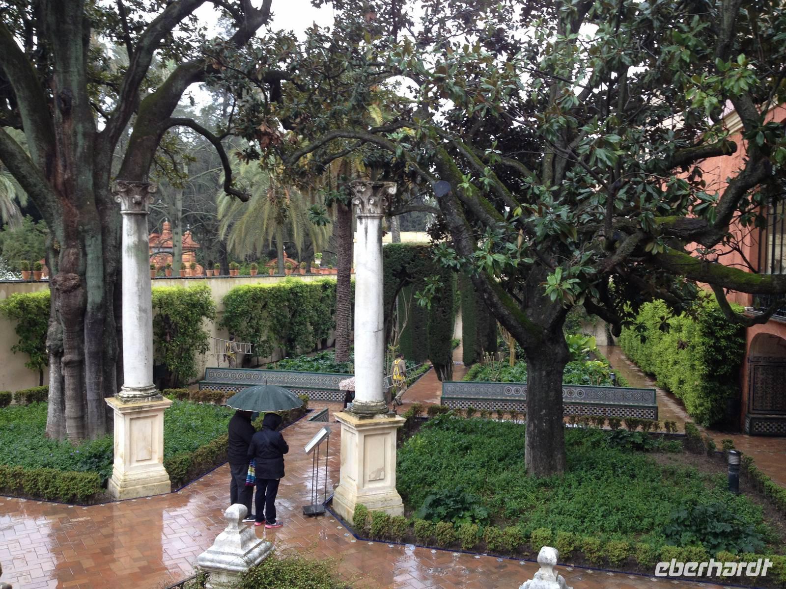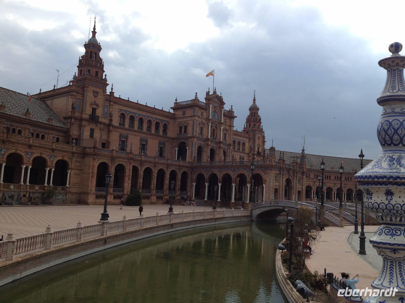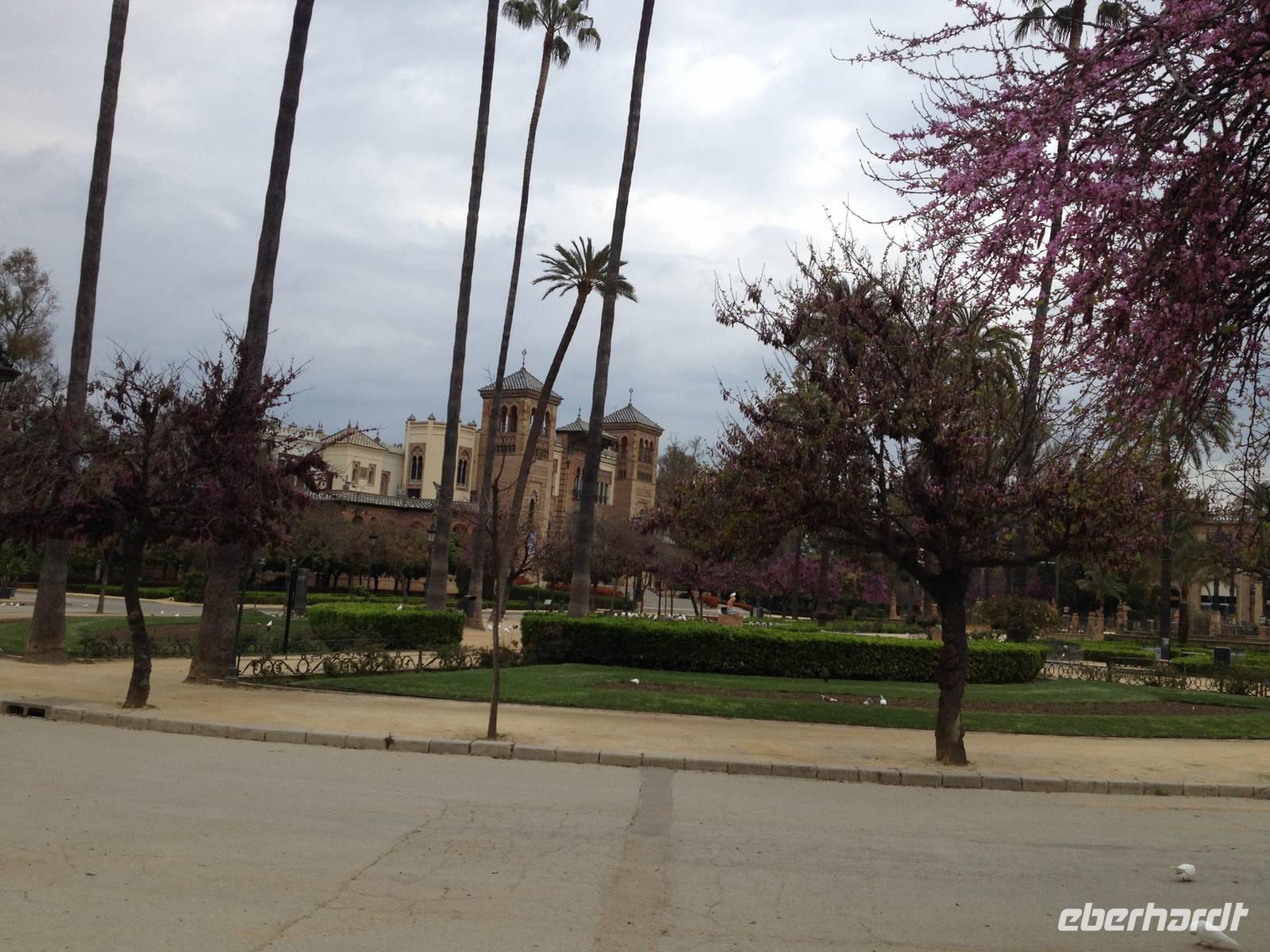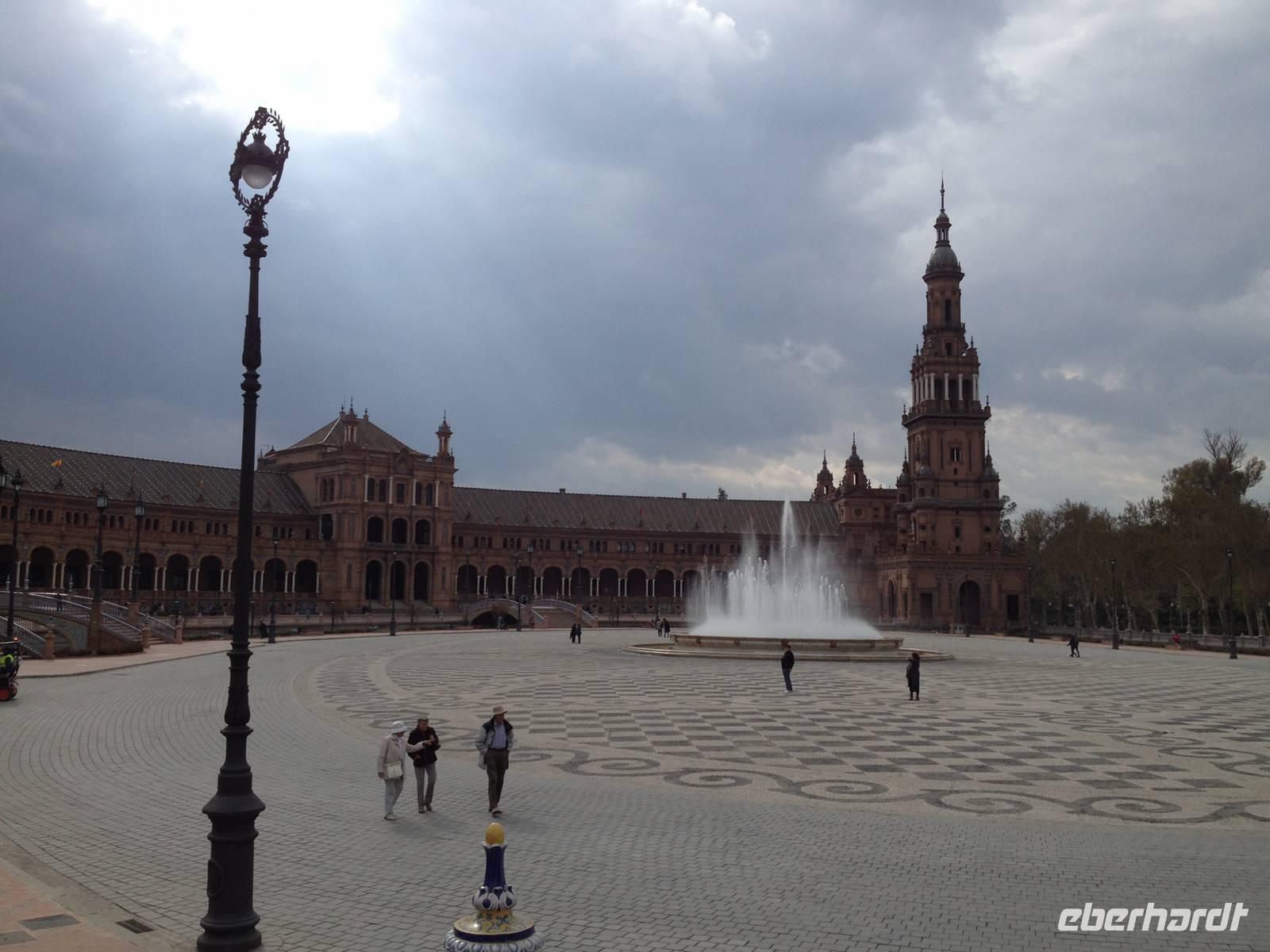Unseren ersten Halt auf der Plaza América konnte wegen schlechtem Wetter nicht stattfinden. Dann direkt zum Plaza de España (Spanien Platz), diesen Grossen Platz mit den Palast, der ein gutes Beispiel der Mudéjar Kunst ist und auch den schönen Garten Santa Sofía beherbergt.