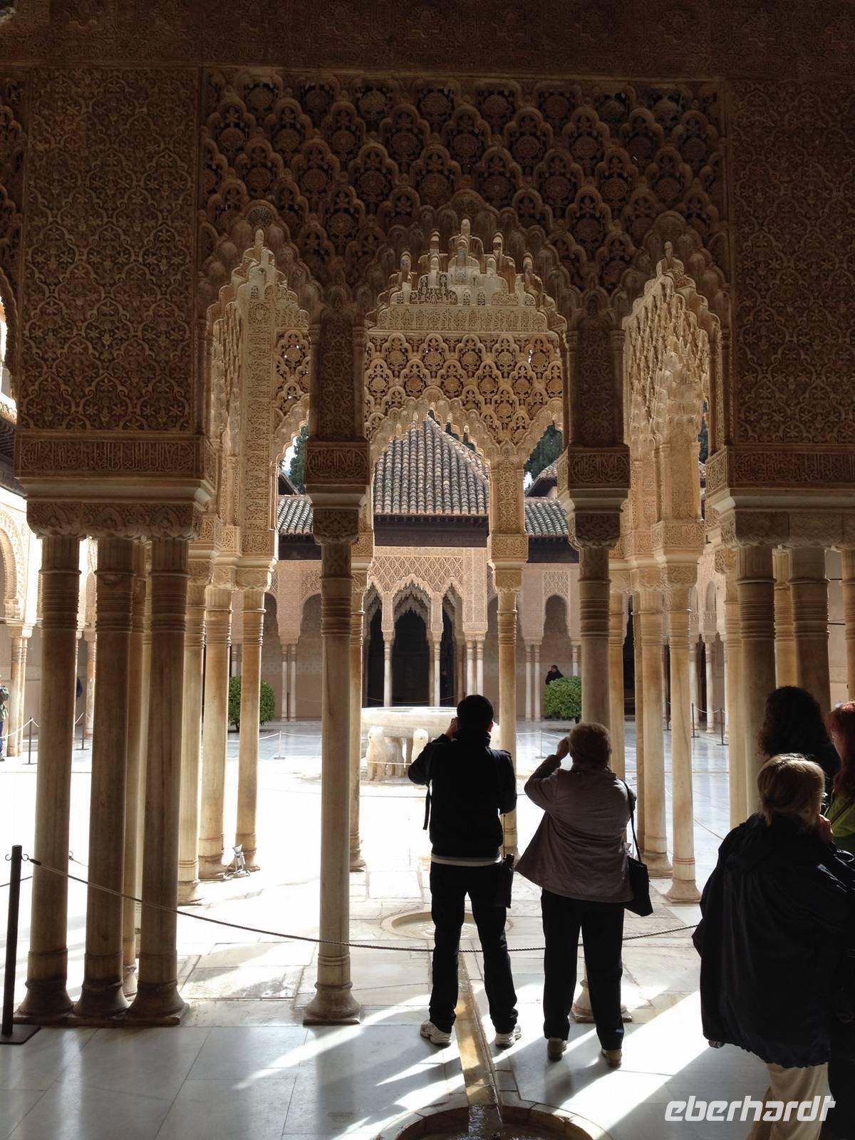 Wir sind sehr früh ausgestanden um nach Granada zu fahren und die Alhambra zu sehen. Wir treffen unseren Reiseleiter Pepe und lernen zuerst den Palast von Carlos V kennen, Er ist außen ein Quadrat und hat innen die Form einer Stierkampfarena. Dann der wichtige Nazaríes Palast mit ihre wunderbar Löwenhof und den Ausblicken über Granada, dieser Palast ist der Traum von Granada. Dannach die Alhambra mit den verschiedenen Türme und immer wird unser Weg von Blumen und Ausblicken über Granada begleitet. In der Generalife mit ihrem schönen Garten und dem Sommerpalast gibt es immer etwas neues zu entdecken.