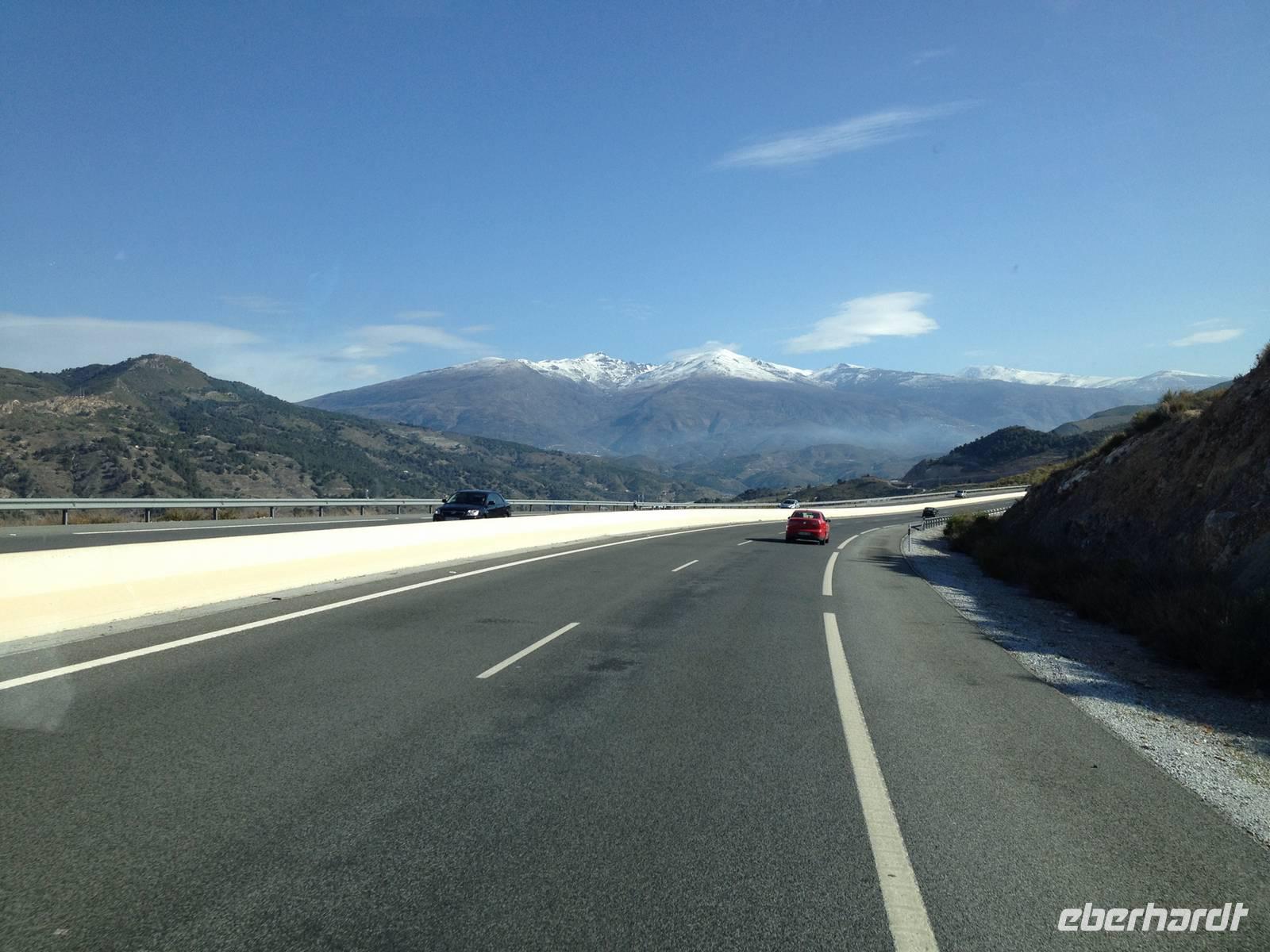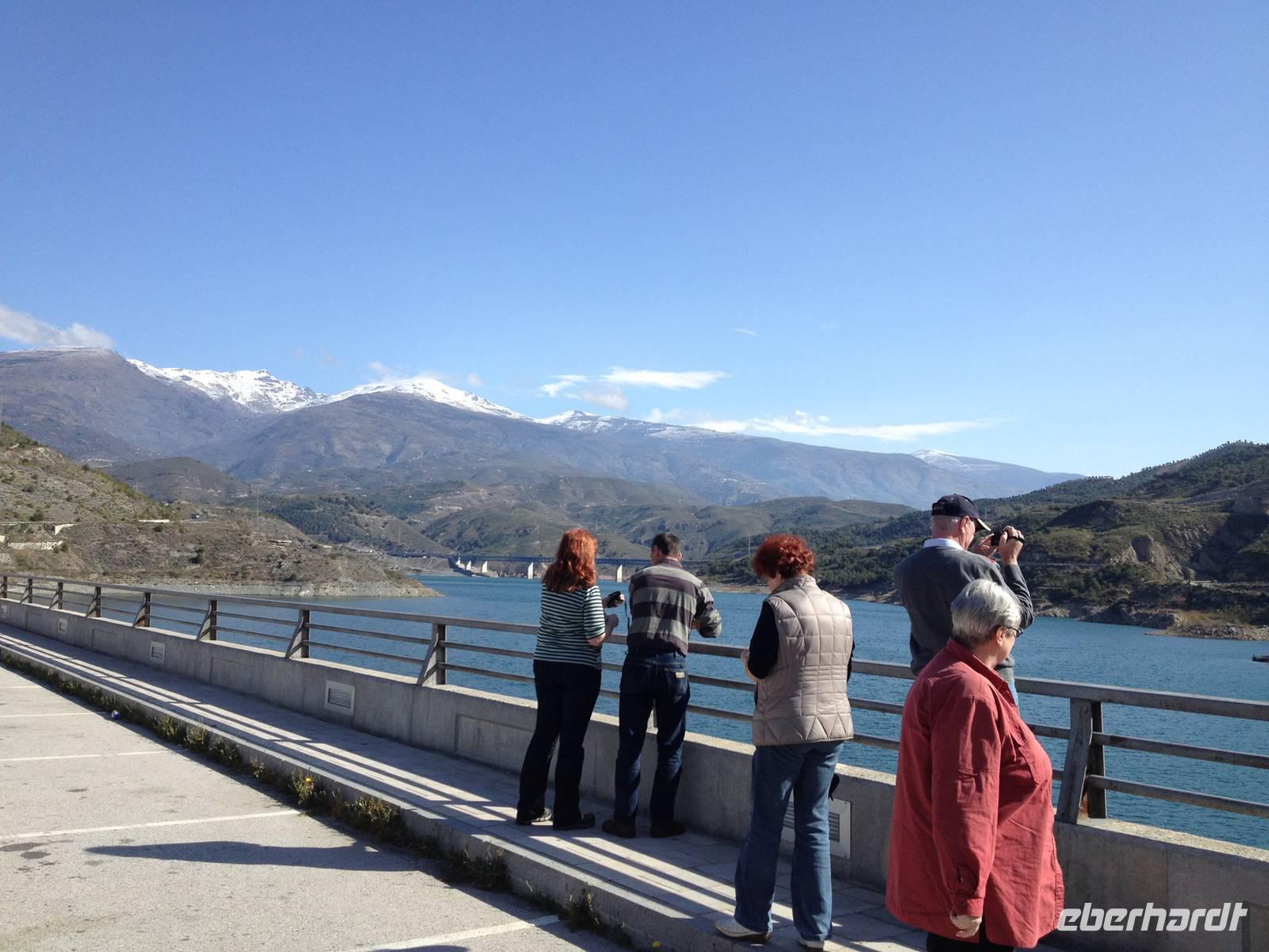 Das Thema von diesem Tag war die Landschaft! Ein schönes Panorama der Sierra Nevada stand am Ende des Tages. In Pórtugos besuchten wir die Heilquelle Fuente Agría, dieses Waser schmeckt etwas sauer. In Trevélez besichtigen wir die Schinkenfabrik, natürlich mit einer Verkostung zum Schluss. Wie viele Serrano Schinken haben wir dort gesehen? Die Temperatur war heute etwas kälter als die anderen Tage, das erinnert uns, das am höchsten Punkt Spaniens waren.