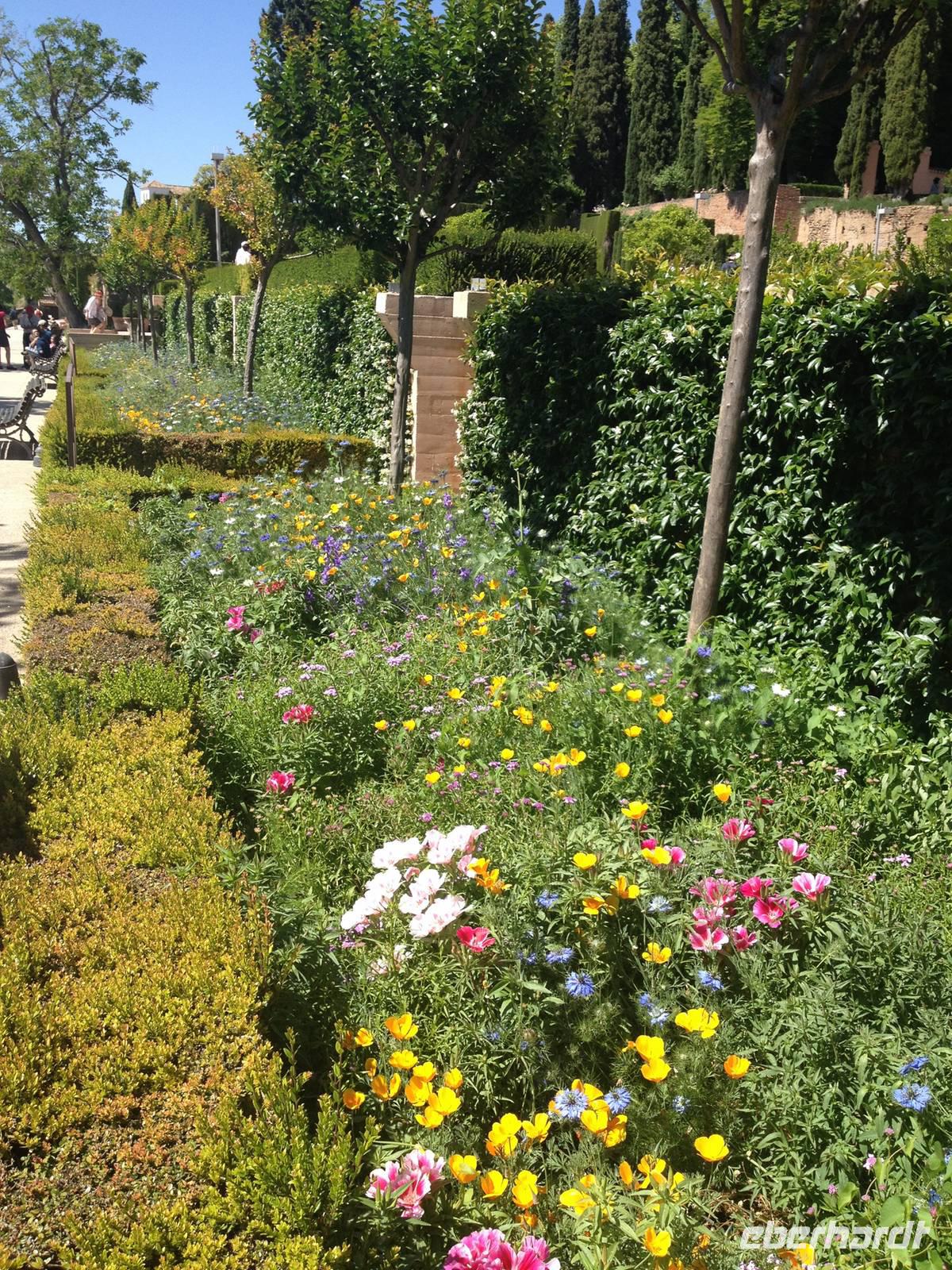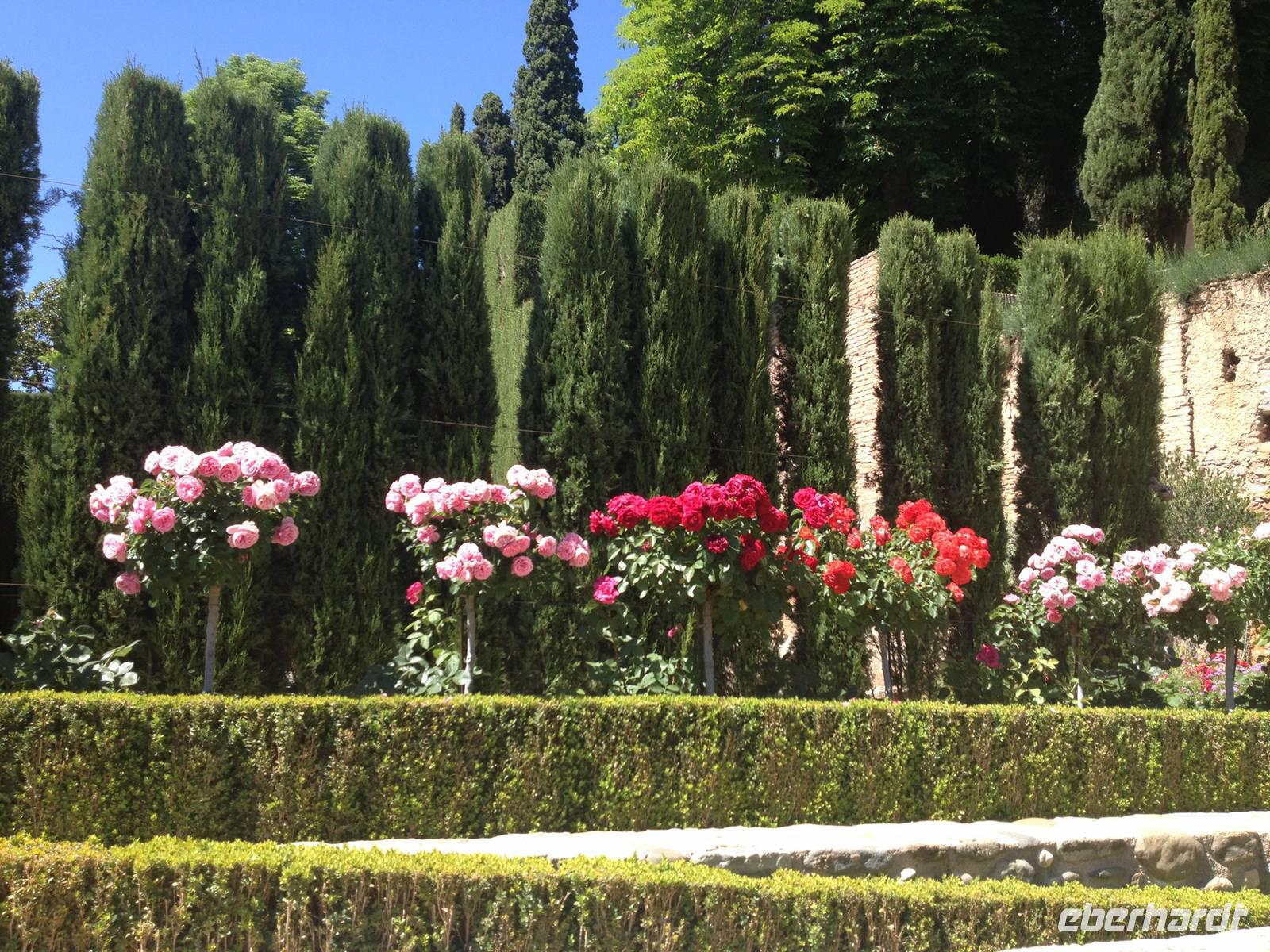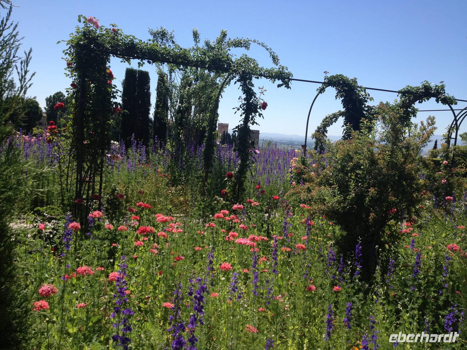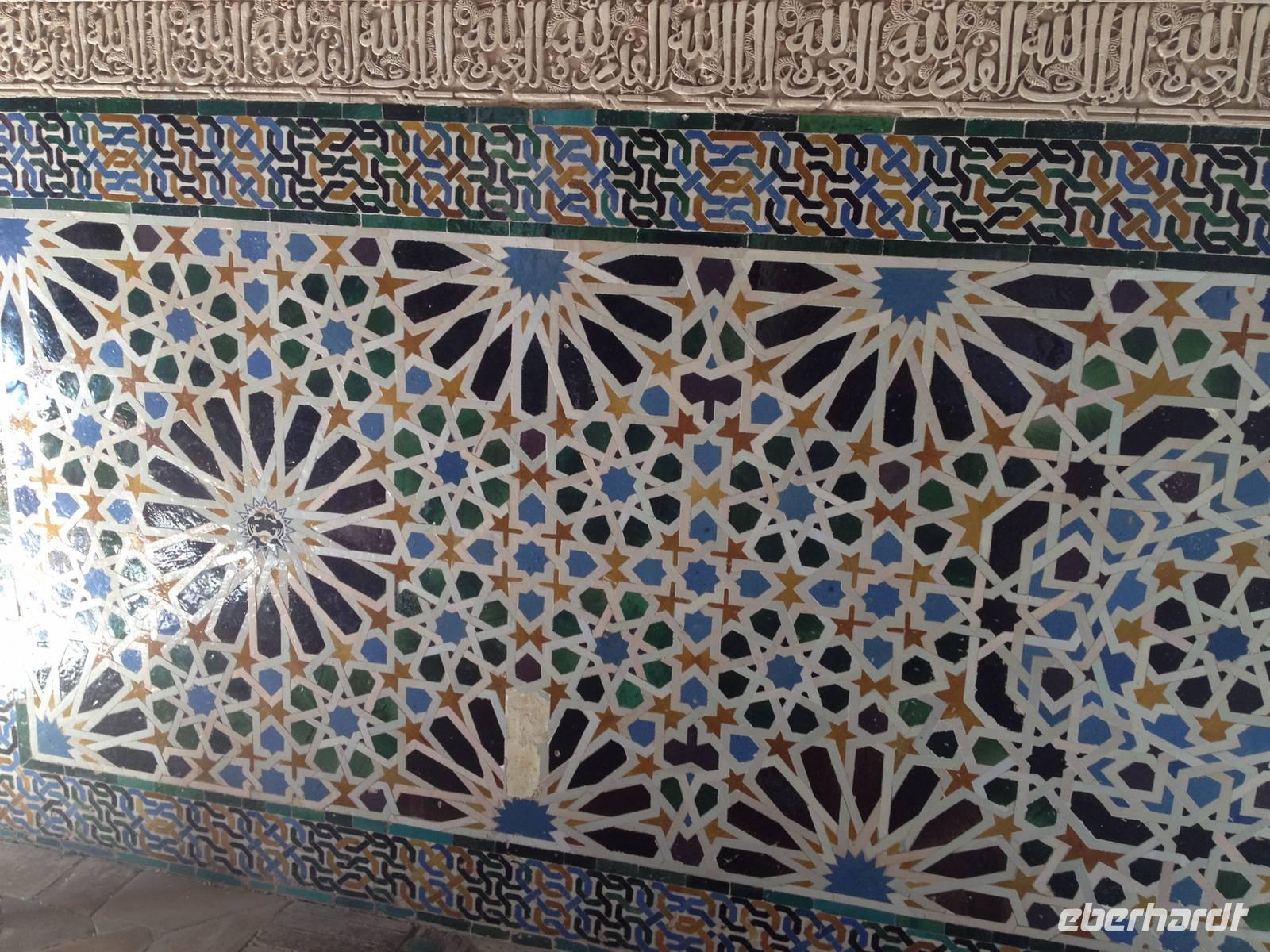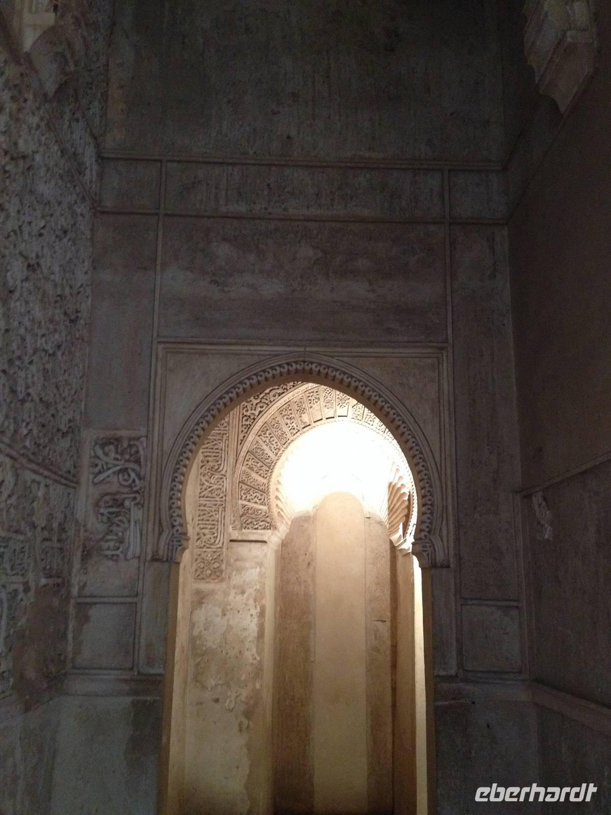 Nun endlich beginnt unsere Besichtigung durch die Gärten der Alhambra mit Toñi und dem Spezialisten Pedro. Anschließend besichtigen wir die ehemalige maurische Festungsanlage, die 1492 im Zuge der Rekatholisierung Spaniens an die Reyes Catolicos übergeben wurde. Hier bekommen wir einen faszinierenden Eindruck von der maurischen Pracht, den arabischen Zeichen und den kobaldblau verzierten Wänden und Decken. Des Weiteren ergötzen wir uns an dem wundervollen Ausblick auf die Sacromonte, der Albayzín, der Altstadt von Granada und die Sierra Nevada, die sogar noch mit Schnee bedeckt sind. Entlang der ältesten Mauren der Festung setzen wir unsere Tour fort zum Palast des Karl V bis zum Nazaríen- Palast, ein authentisches Wunderwerk. Jedes Zimmer möchtet uns etwas erzählen und bringt uns zum Träumen. Wir fühlen nicht nur die Elemente der Natur und dessen Farben, sondern lauschen auch den Geräuschen, das Singen der Vögel und spüren das Licht der Sterne sowie das Sonnenlicht am Tag.