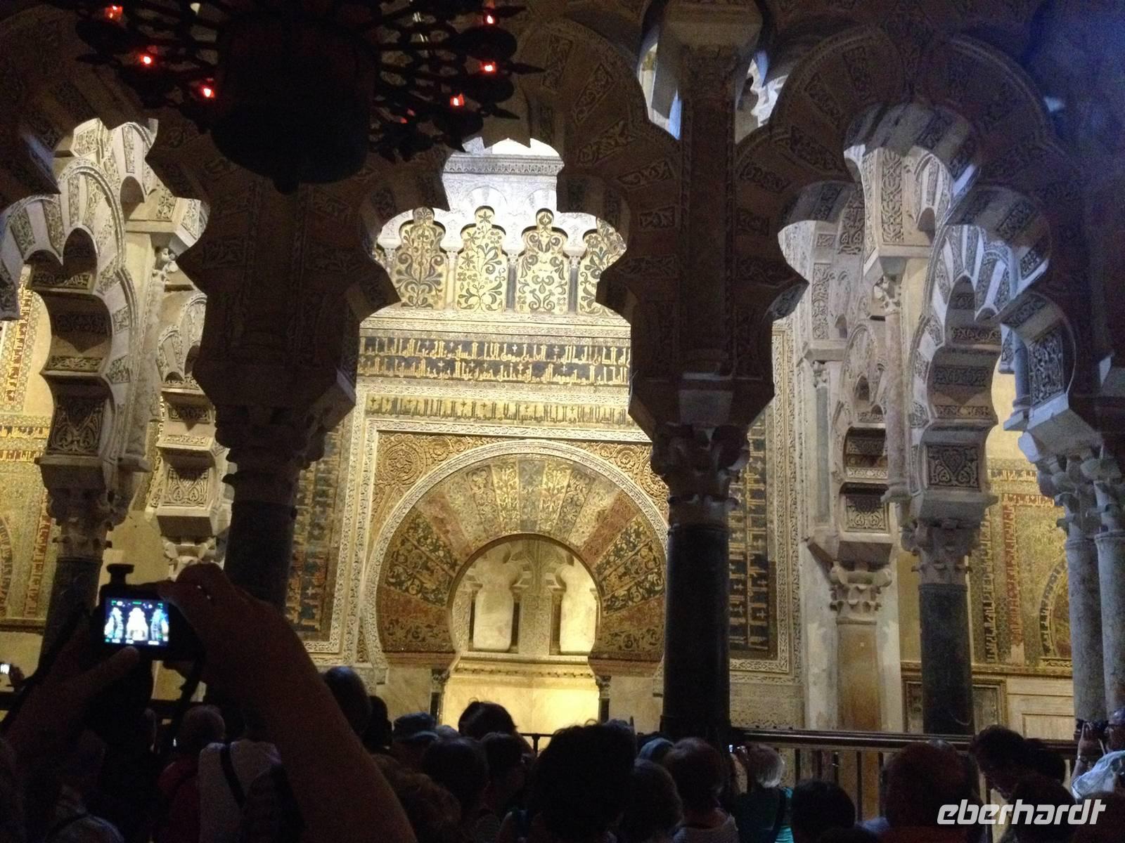 Wir überqueren die römische Brücke und staunen über das anmutige Panorama der Altstadt. Nun besichtigen wir die Moschee-Kathedrale von Innen. Die beruhigende Stimme von Encarna begleitet uns durch die Hallen mit zahlreichen Bögen, Mosaiken und Fresken. Sie erklärt uns, wann welcher Teil gebaut wurde, welche Besonderheiten und Kuriositäten es gibt. Weiter folgen wir ihr in den Orangenhof, auf dem das Minarette steht. Wir schlendern durch das jüdische Stadtviertel. Zwischen den schmalen Gassen und hinter dieser oder jener Ecke hören wir schöne Geschichten aus der Vergangenheit.