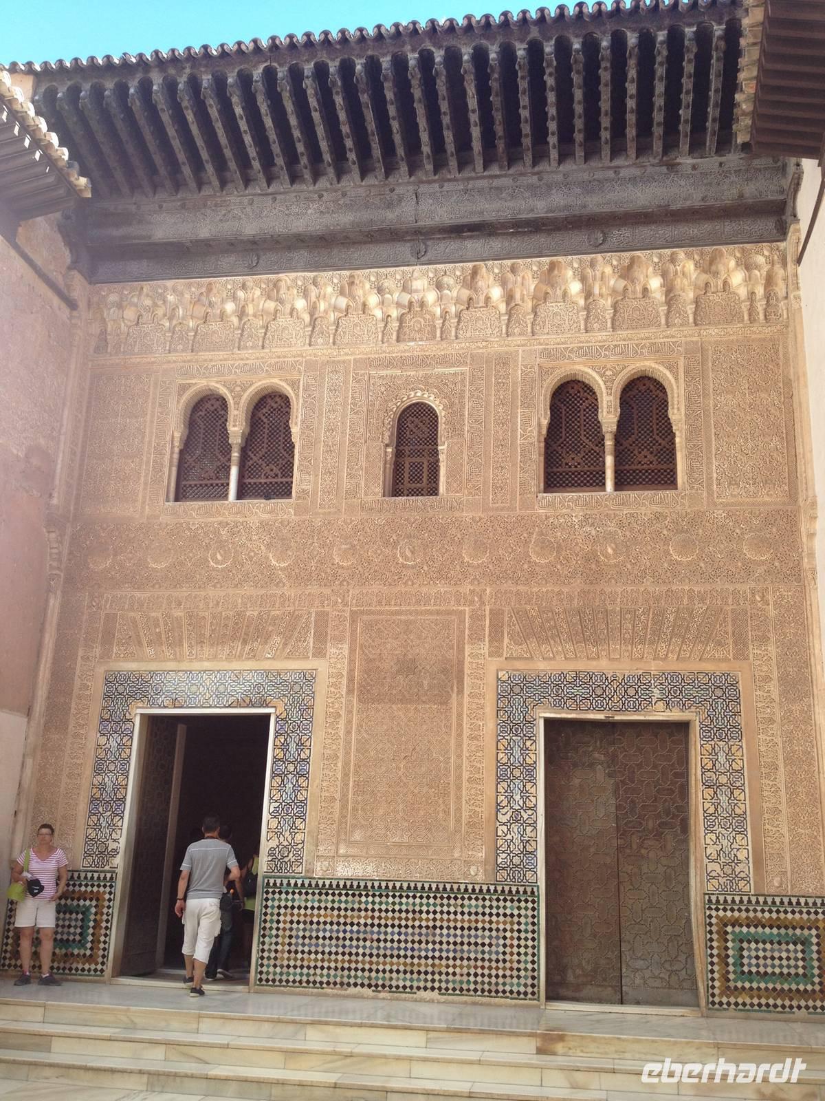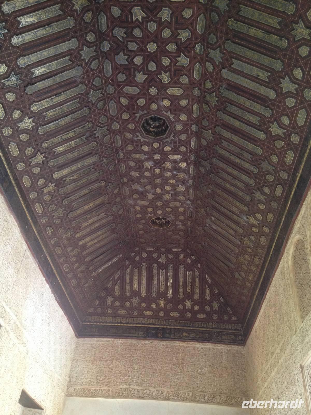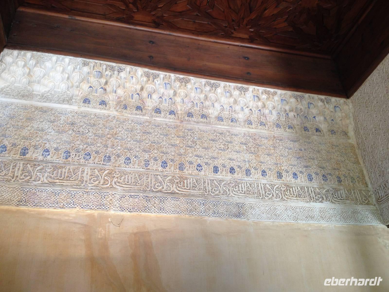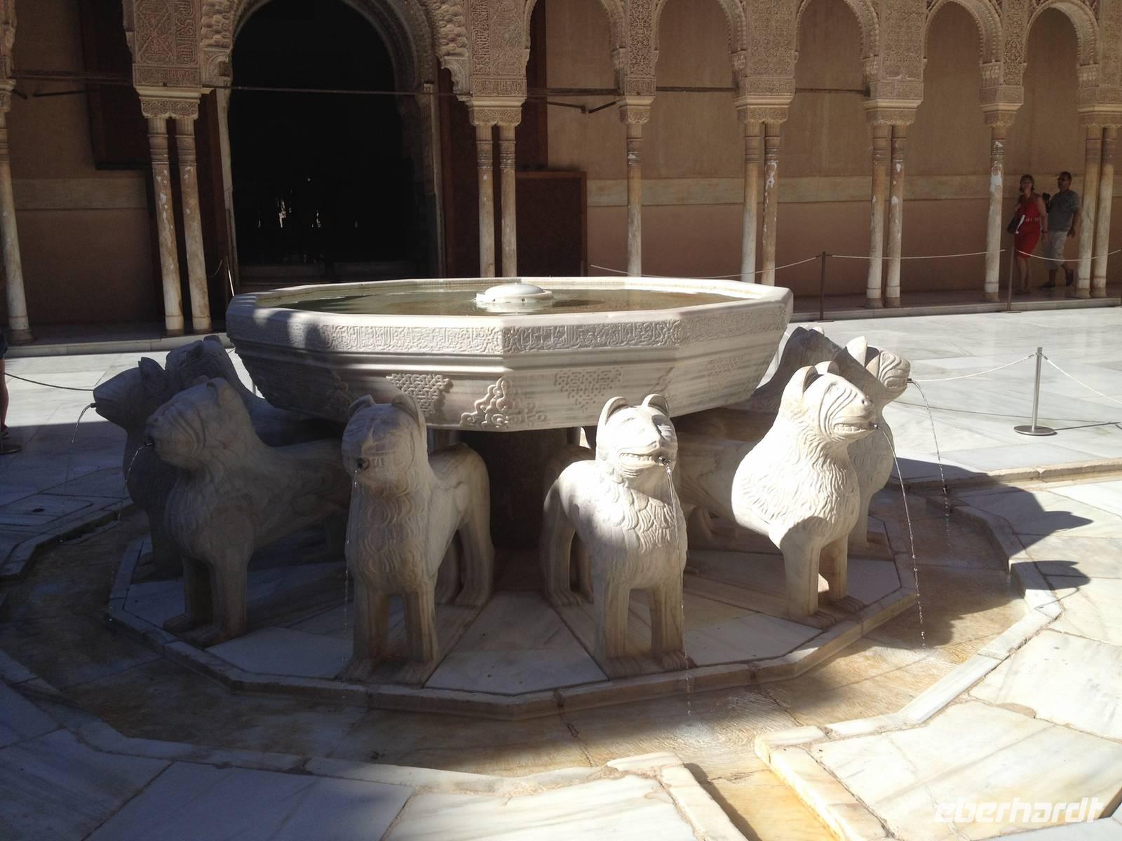 Nun endlich beginnt unsere Besichtigung durch die Gärten der Alhambra mit Toñi und dem Spezialisten Pedro. Anschließend besichtigen wir die ehemalige maurische Festungsanlage, die 1492 im Zuge der Rekatholisierung Spaniens an die Reyes Catolicos übergeben wurde. Hier bekommen wir einen faszinierenden Eindruck von der maurischen Pracht, den arabischen Zeichen und den kobaldblau verzierten Wänden und Decken. Des Weiteren ergötzen wir uns an dem wundervollen Ausblick auf die Sacromonte, der Albayzín, der Altstadt von Granada und die Sierra Nevada, die sogar noch mit Schnee bedeckt sind. Entlang der ältesten Mauren der Festung setzen wir unsere Tour fort zum Palast des Karl V bis zum Nazaríen- Palast, ein authentisches Wunderwerk. Jedes Zimmer möchtet uns etwas erzählen und bringt uns zum Träumen. Wir fühlen nicht nur die Elemente der Natur und dessen Farben, sondern lauschen auch den Geräuschen, das Singen der Vögel und spüren das Licht der Sterne sowie das Sonnenlicht am Tag.