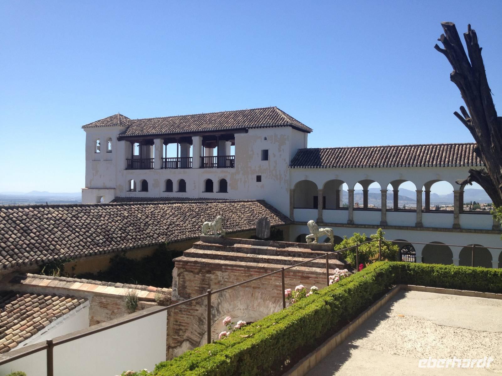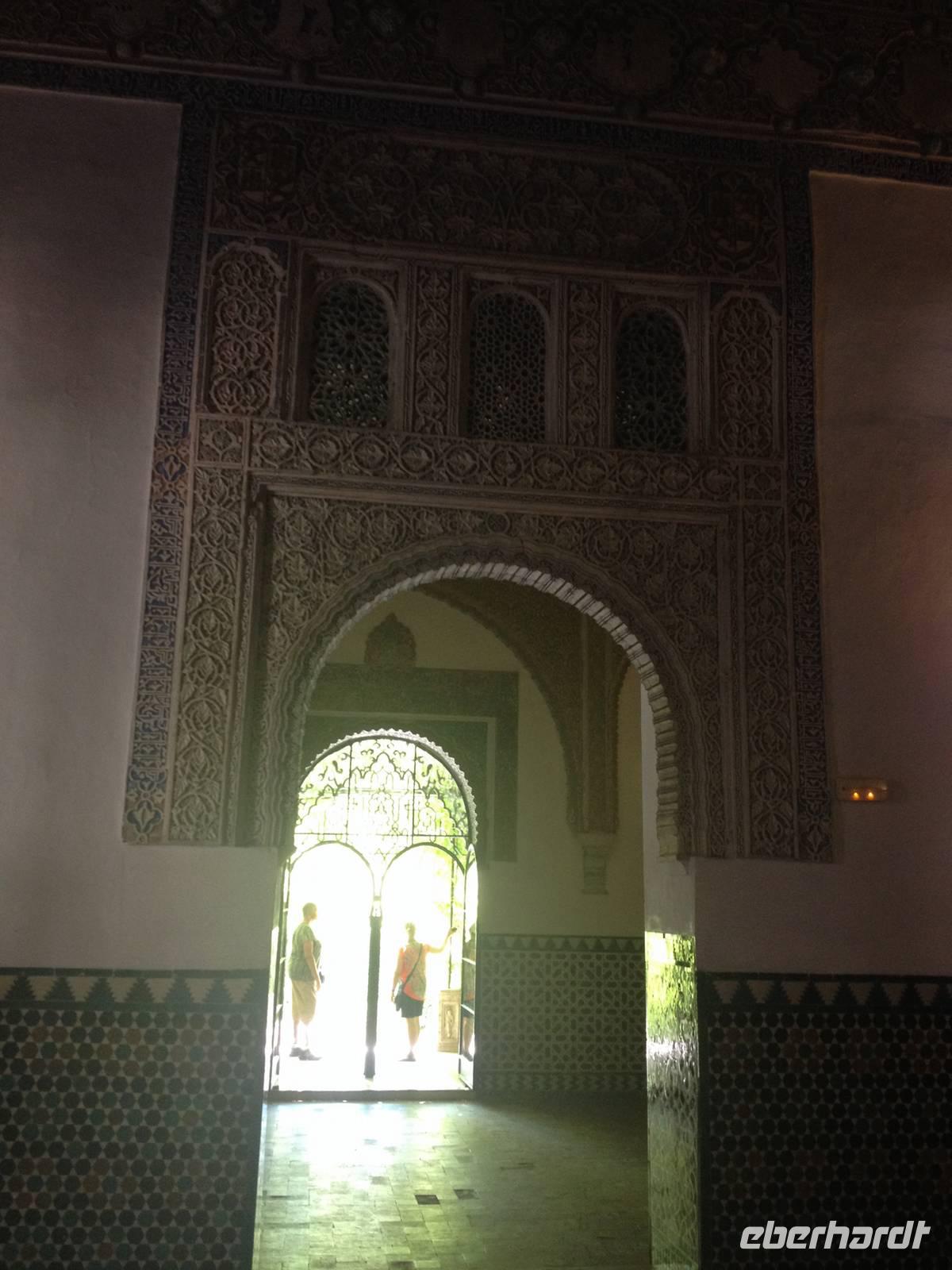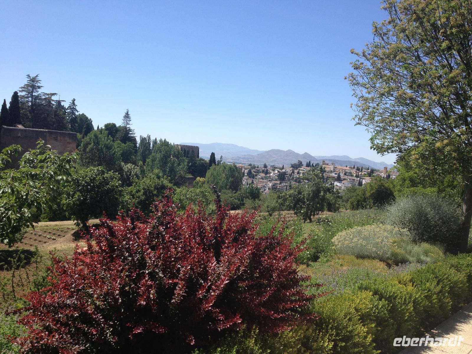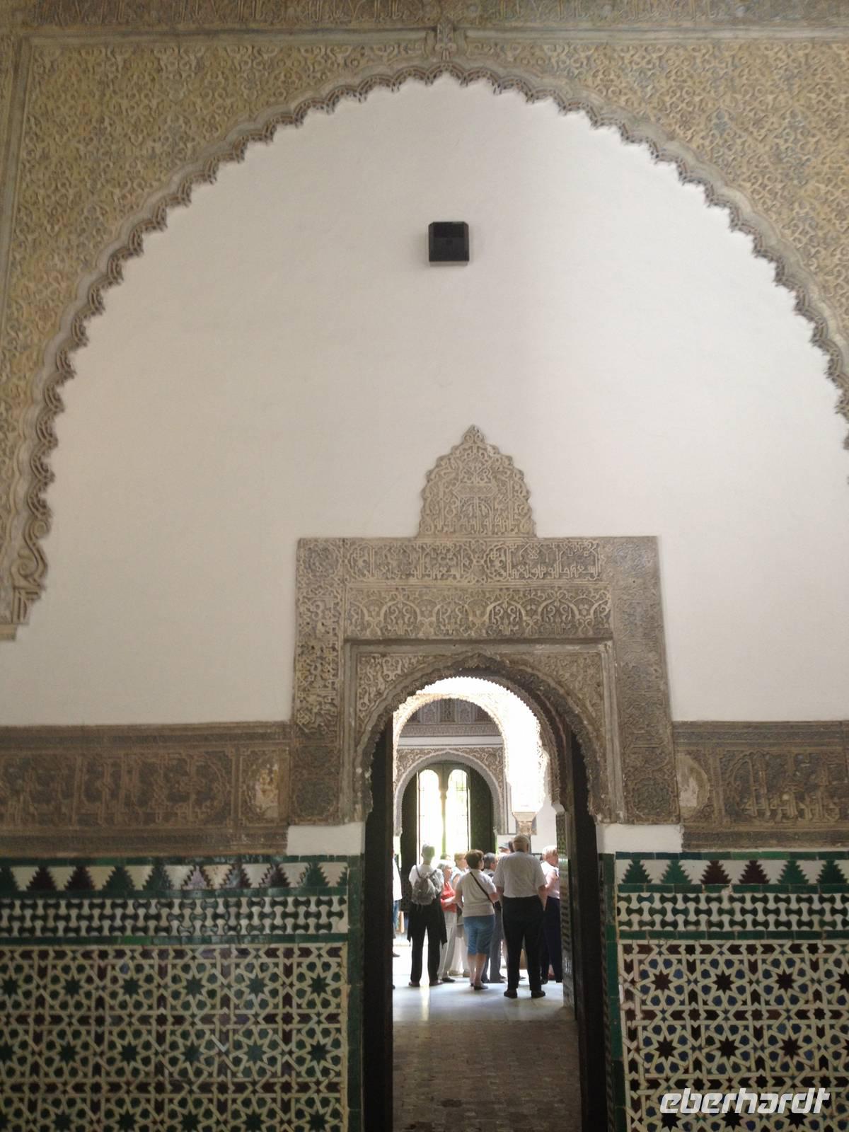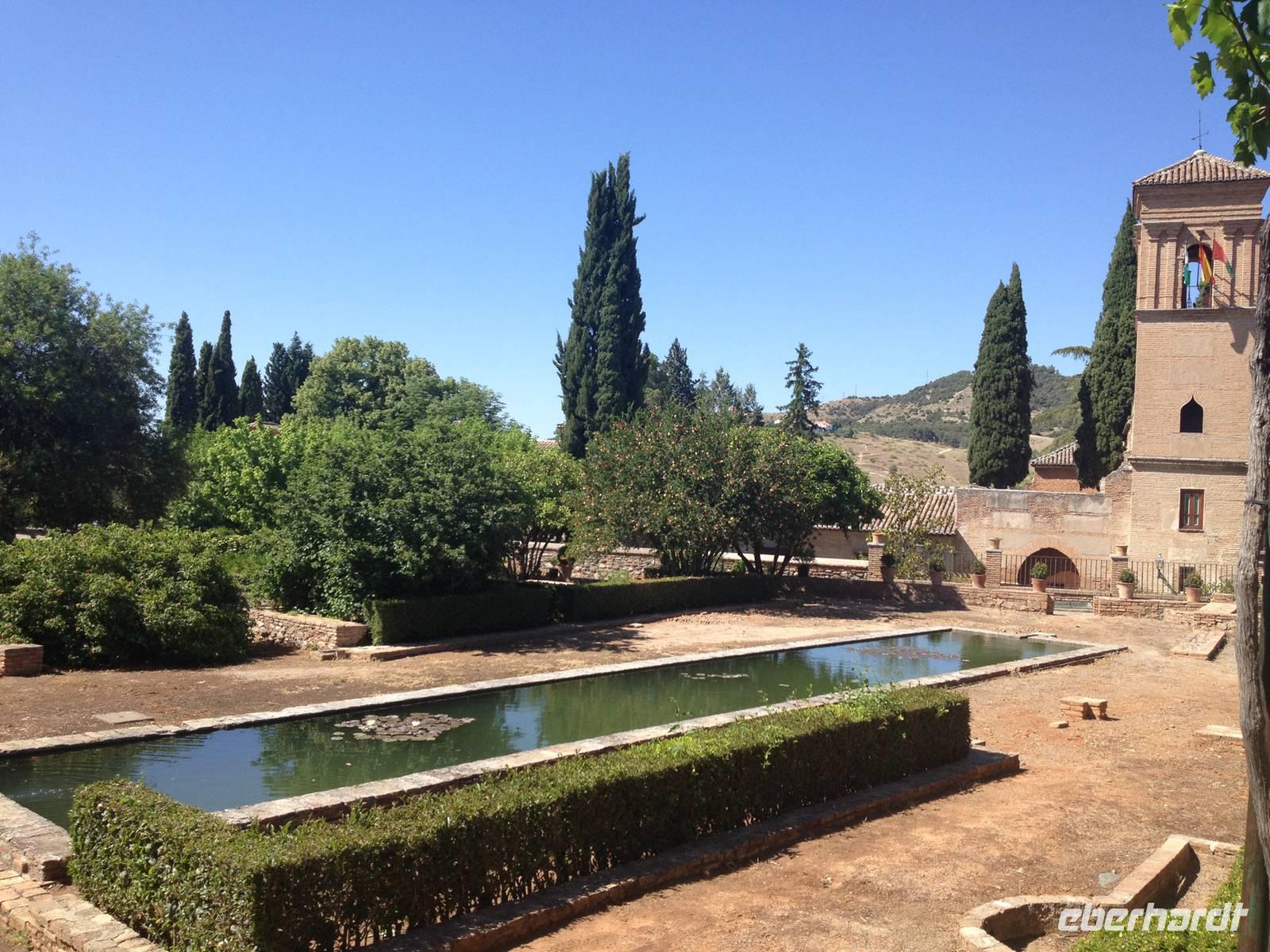 Nun endlich beginnt unsere Besichtigung durch die Gärten der Alhambra mit Toñi und dem Spezialisten Pedro. Anschließend besichtigen wir die ehemalige maurische Festungsanlage, die 1492 im Zuge der Rekatholisierung Spaniens an die Reyes Catolicos übergeben wurde. Hier bekommen wir einen faszinierenden Eindruck von der maurischen Pracht, den arabischen Zeichen und den kobaldblau verzierten Wänden und Decken. Des Weiteren ergötzen wir uns an dem wundervollen Ausblick auf die Sacromonte, der Albayzín, der Altstadt von Granada und die Sierra Nevada, die sogar noch mit Schnee bedeckt sind. Entlang der ältesten Mauren der Festung setzen wir unsere Tour fort zum Palast des Karl V bis zum Nazaríen- Palast, ein authentisches Wunderwerk. Jedes Zimmer möchtet uns etwas erzählen und bringt uns zum Träumen. Wir fühlen nicht nur die Elemente der Natur und dessen Farben, sondern lauschen auch den Geräuschen, das Singen der Vögel und spüren das Licht der Sterne sowie das Sonnenlicht am Tag.