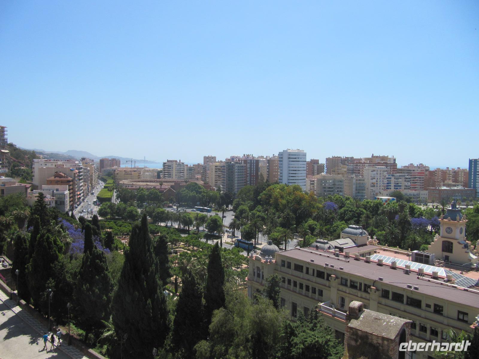 Mit neuer Energie spazieren wir von dem Constitución-Platz durch die Larios-Straße mit ihren Boutiquen und hübschen Straßenverzierungen zum Paseo del Parque , direkt am Großen Garten. Der Weg führt weiter vorbei am Rathaus, der Bank von Spanien, und andere Gebäude im spanischen Stil.