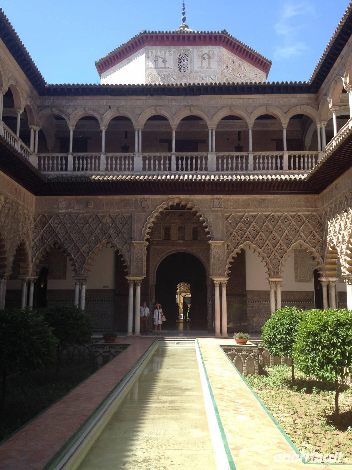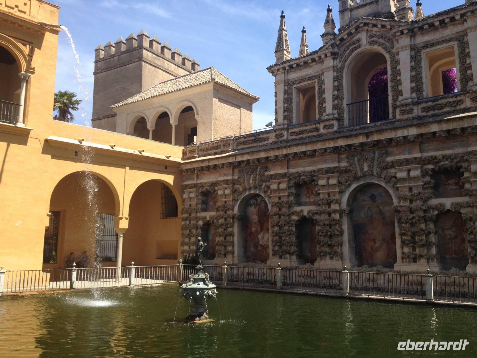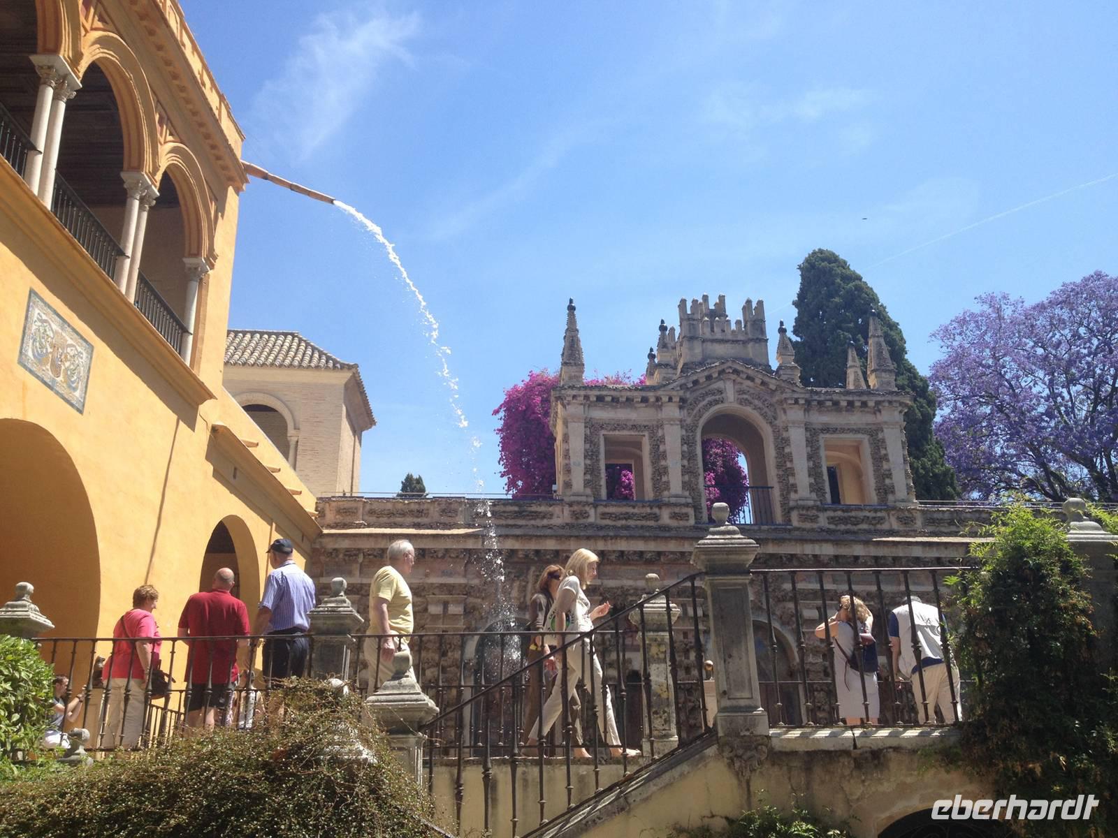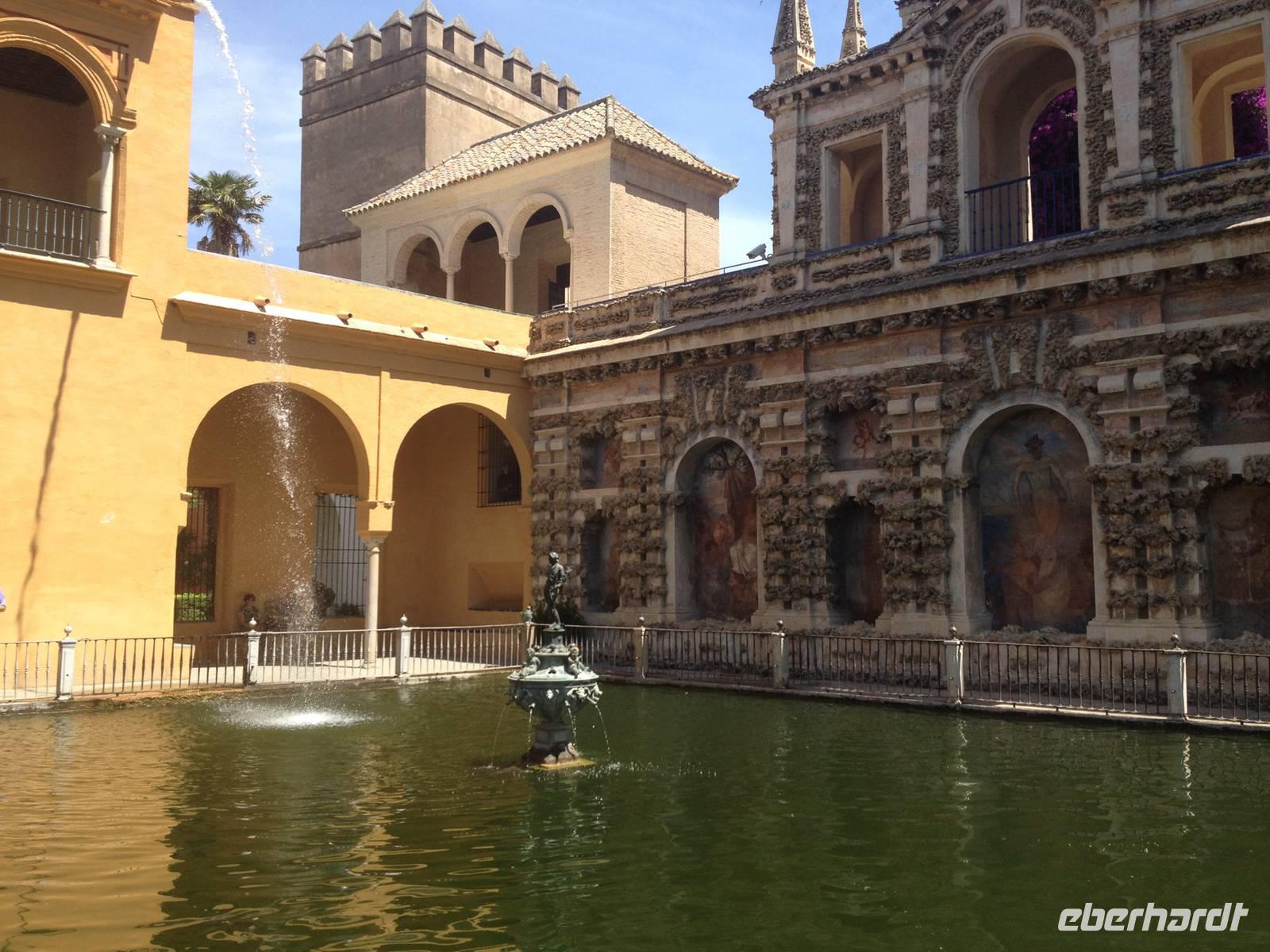 Wir begannen unsere Besichtigung auf der „Plaza de España“ auf der wir unsere Stadtführerin Vivien in Empfang nahmen. Sie erzählte uns viele interessante Dinge, u.a warum dieser Platz gebaut wurden ist und warum er so besonders ist. Danach haben wir unsere örtliche Reiseleiterin Carmen getroffen. Zusammen mit ihr begannen wir unsere Stadtführung in dem Garten von Murillo, indem sich ein Monument von Kolumbus befindet. Carmen führte uns weiter durch das Viertel von Santa Cruz, das bekannt für seine engen Straßen und Gassen ist. Nachdem wir uns durch diese geschlängelt hatten, entdeckten wir die typischen andalusischen „Patios“ der „Reales Alcázares“ in deren Zentrum sich eine kleine Wasserquelle befindet.