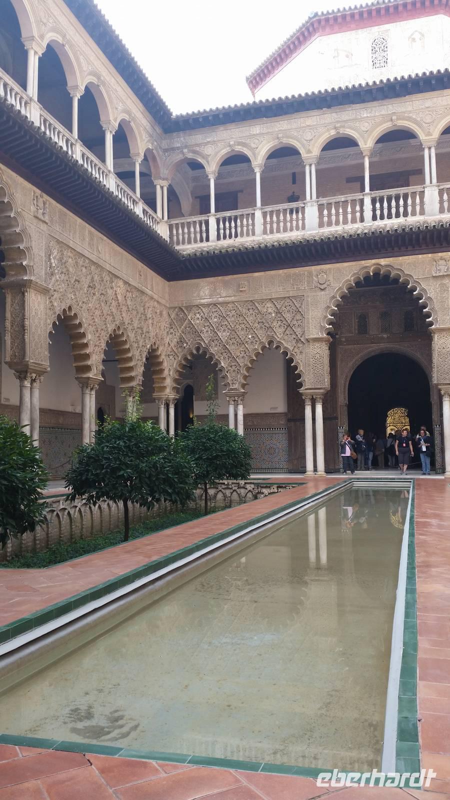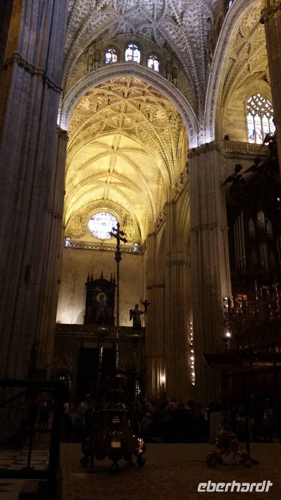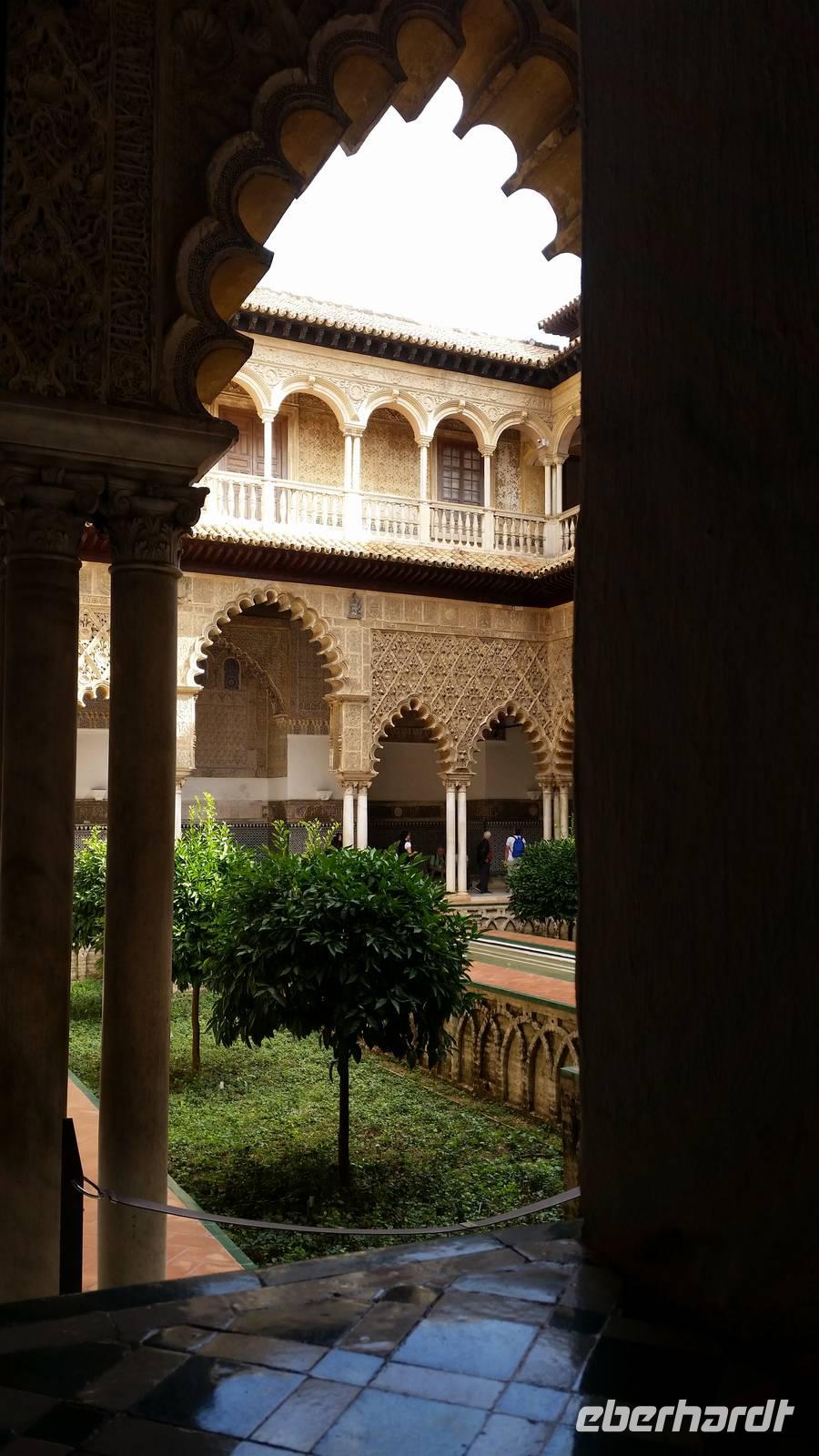 Es geht in die Hauptstadt von Andalusien nach Sevilla. Die Einfahrt in die Stadt hinein ist von vielen Villen gezäumt. Diese waren alle für die Weltausstellung 1929 gebaut wurden. Auch hier trifft christliche Kultur auf muslimische Kultur. Bestes Beispiel ist der königliche Palast. Er erinnert ein wenig an die Alhambra in Granada. Davor besichtigen wir das Judenviertel. Viele kleine und enge Gassen sind typisch für die Stadt. Im Anschluss an den Palast geht es in die Kathedrale. Es ist ein beeindruckendes Bauwerk. Der größte goldverzierte Altar erwartet uns und ein berühmter Seefahrer - Christoph Columbus ist hier begraben bzw. liegen seine Gebeine in der „Luft". Der Sarg wird von den vier Königen der Provinzen Spaniens getragen, da es Columbus ein ausdrücklicher Wunsch war, nicht in Spanien begraben zu werden. So umgingen die Spanier seinen Wunsch, denn er ist ja nicht begraben. Im Anschluss kann jeder sich in der Stadt vertun. Am späten Abend kommen wir zum Hotel zurück und lassen den Abend beim gemeinsamen Abendessen ausklingen.