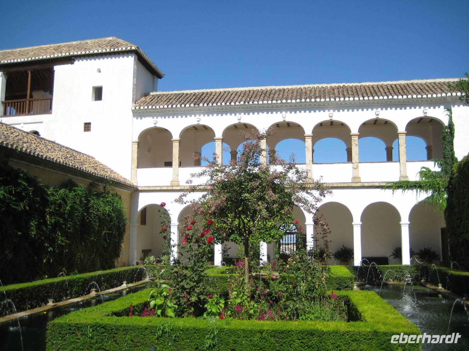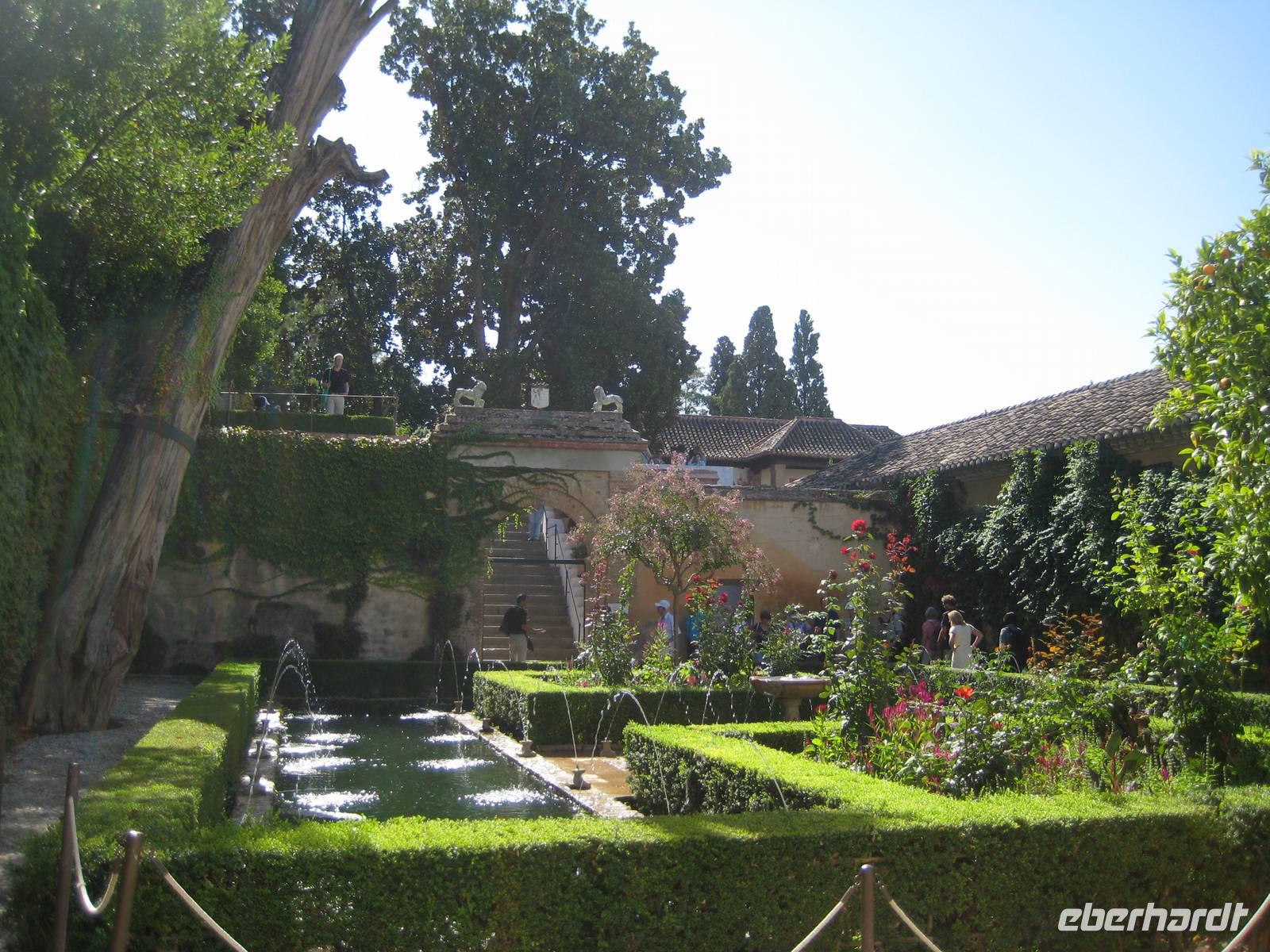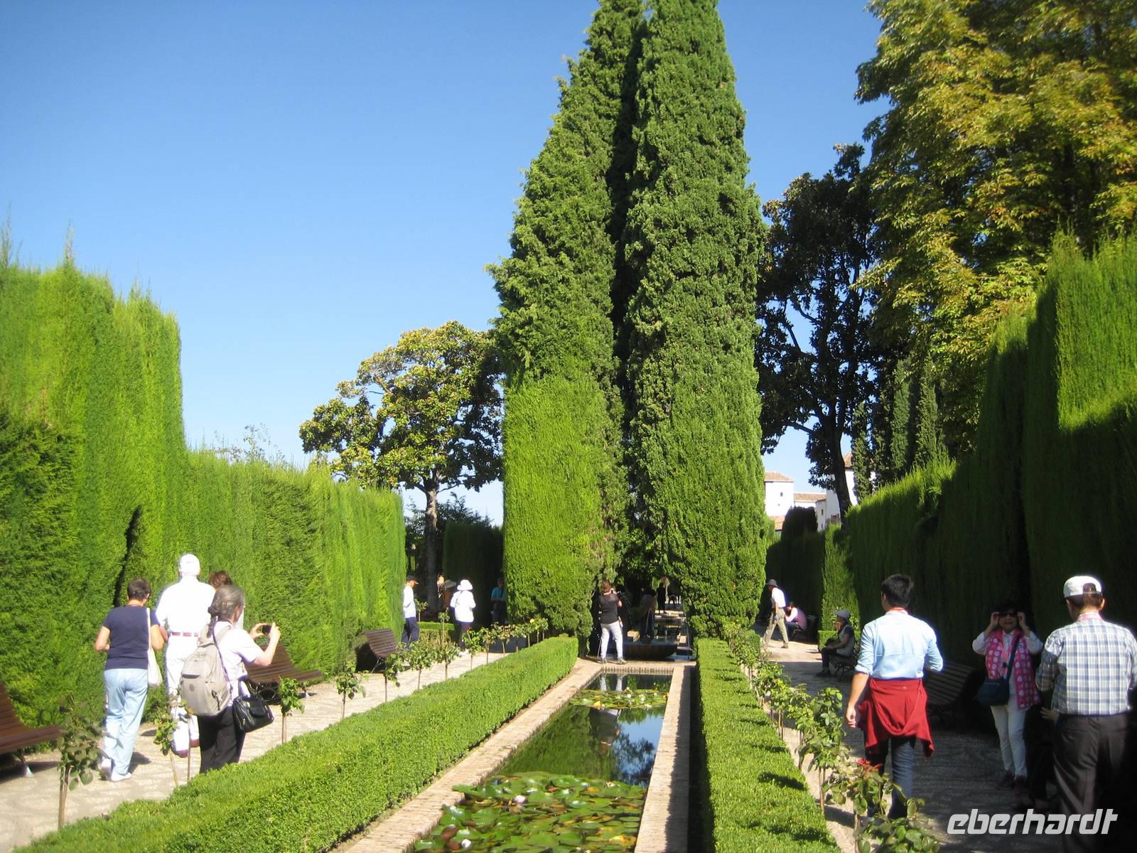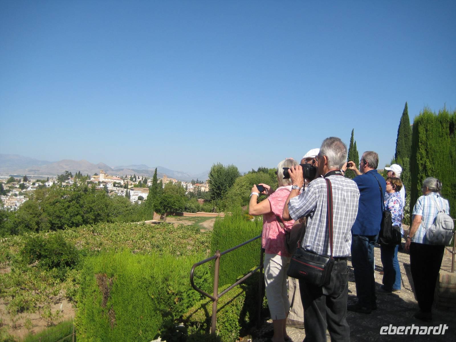 In Granada angekommen, treffen wir unseren örtlichen Reiseleiter Pedro und beginnen mit einer durch den Generalife Palast. Wir laufen durch die schönen Gärten mit ihren hübschen Blumen und spazieren durch den Sommerpalast mit herrlichem Innenhof und Quelle.