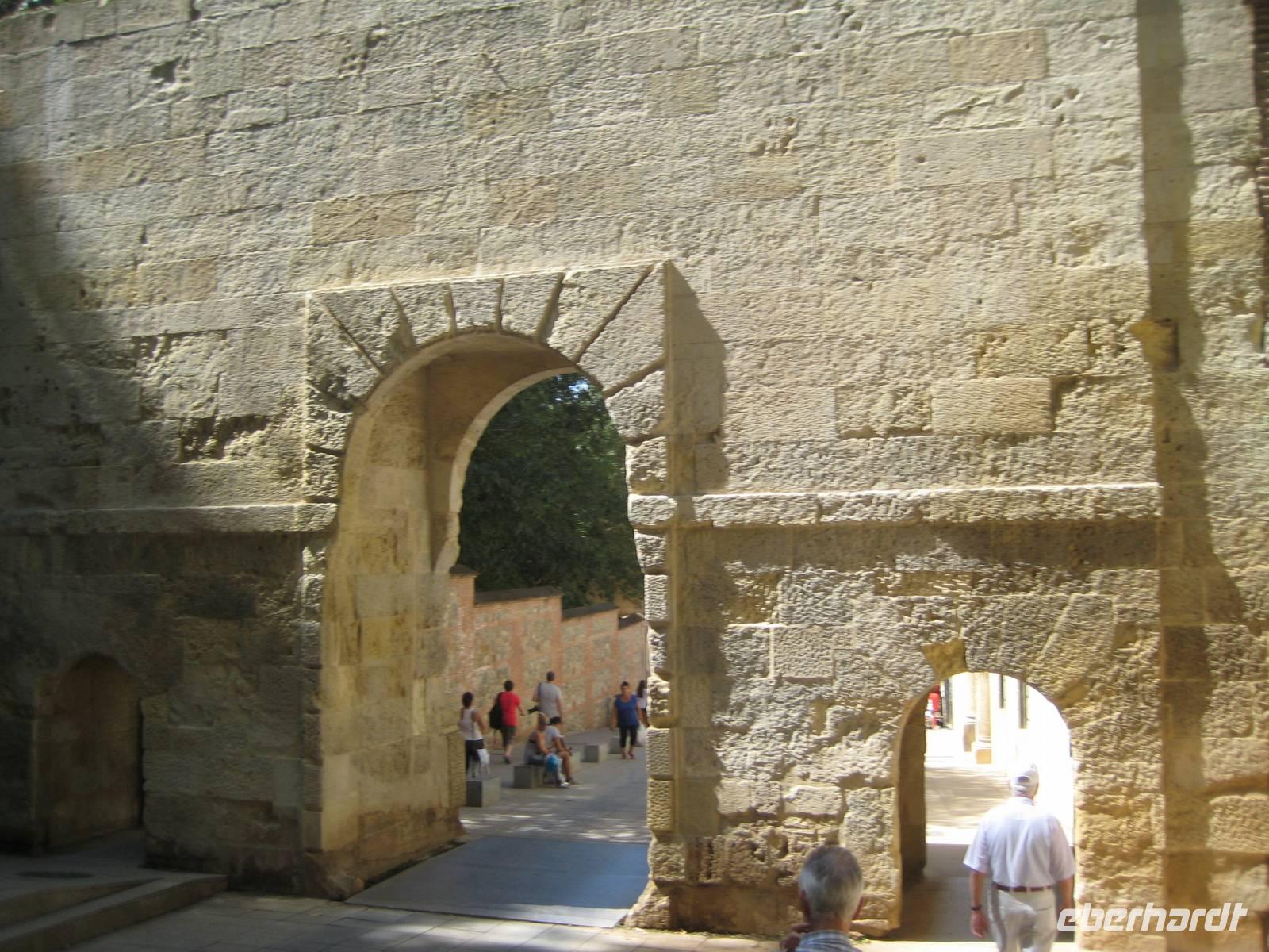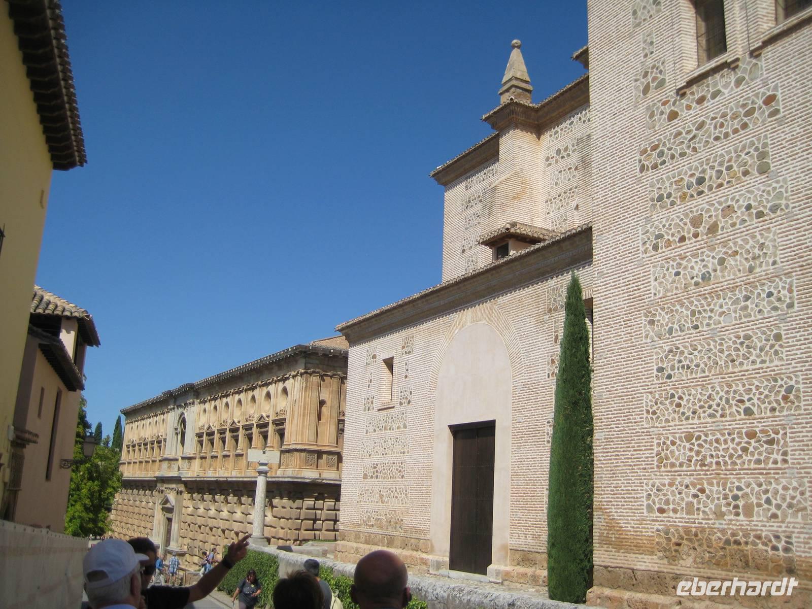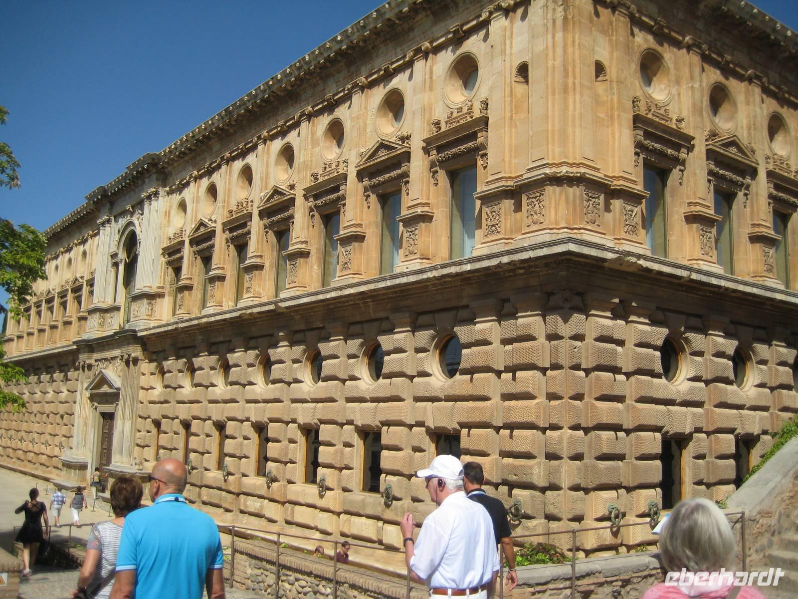 Weiter geht es nach Alhambra. Wir laufen durch die Altstadt, bwundern die Stadtmauer und entdecken verschiedene Paläste, wie zum Beispiel den Palast von Carles den V., der einen quadratischen Grundriss mit rundem Innenhof besitzt.