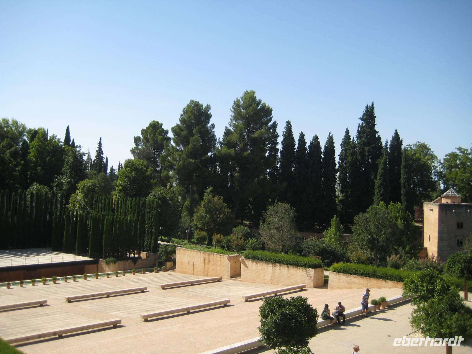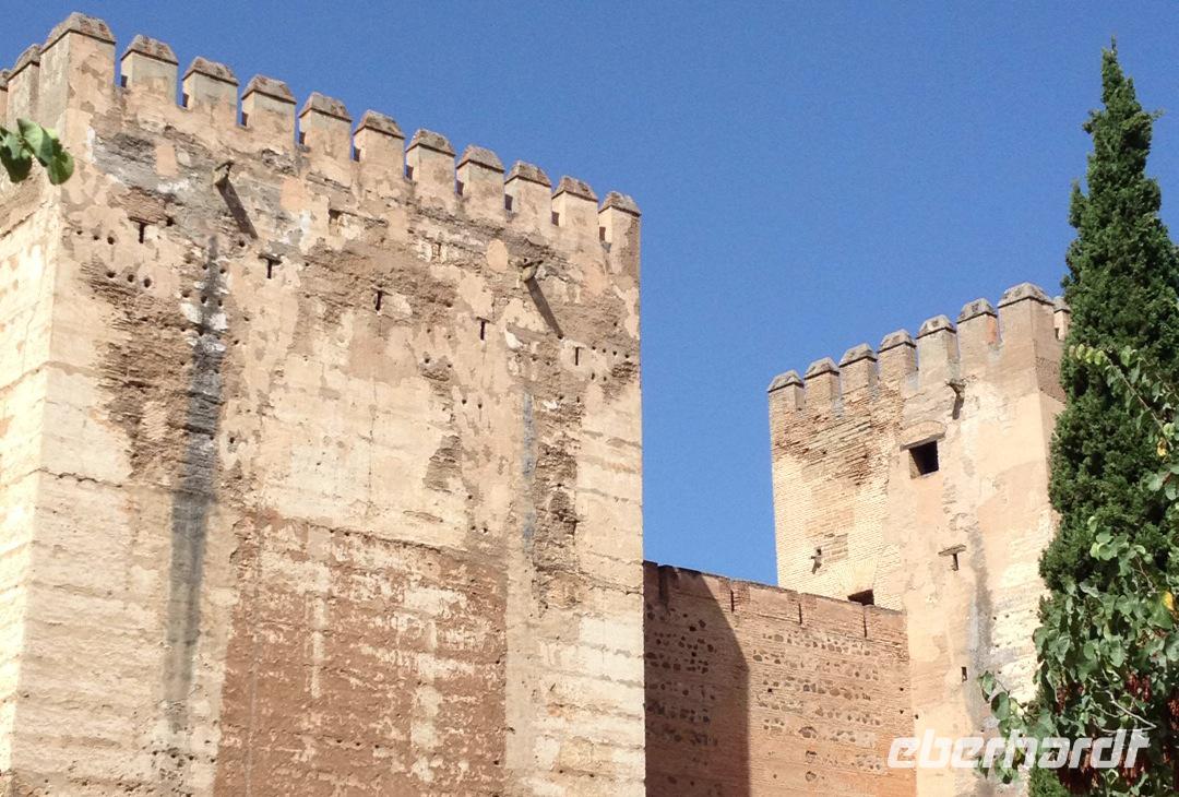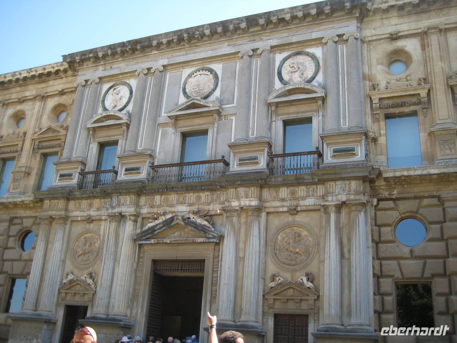 Weiter geht es nach Alhambra. Wir laufen durch die Altstadt, bwundern die Stadtmauer und entdecken verschiedene Paläste, wie zum Beispiel den Palast von Carles den V., der einen quadratischen Grundriss mit rundem Innenhof besitzt.