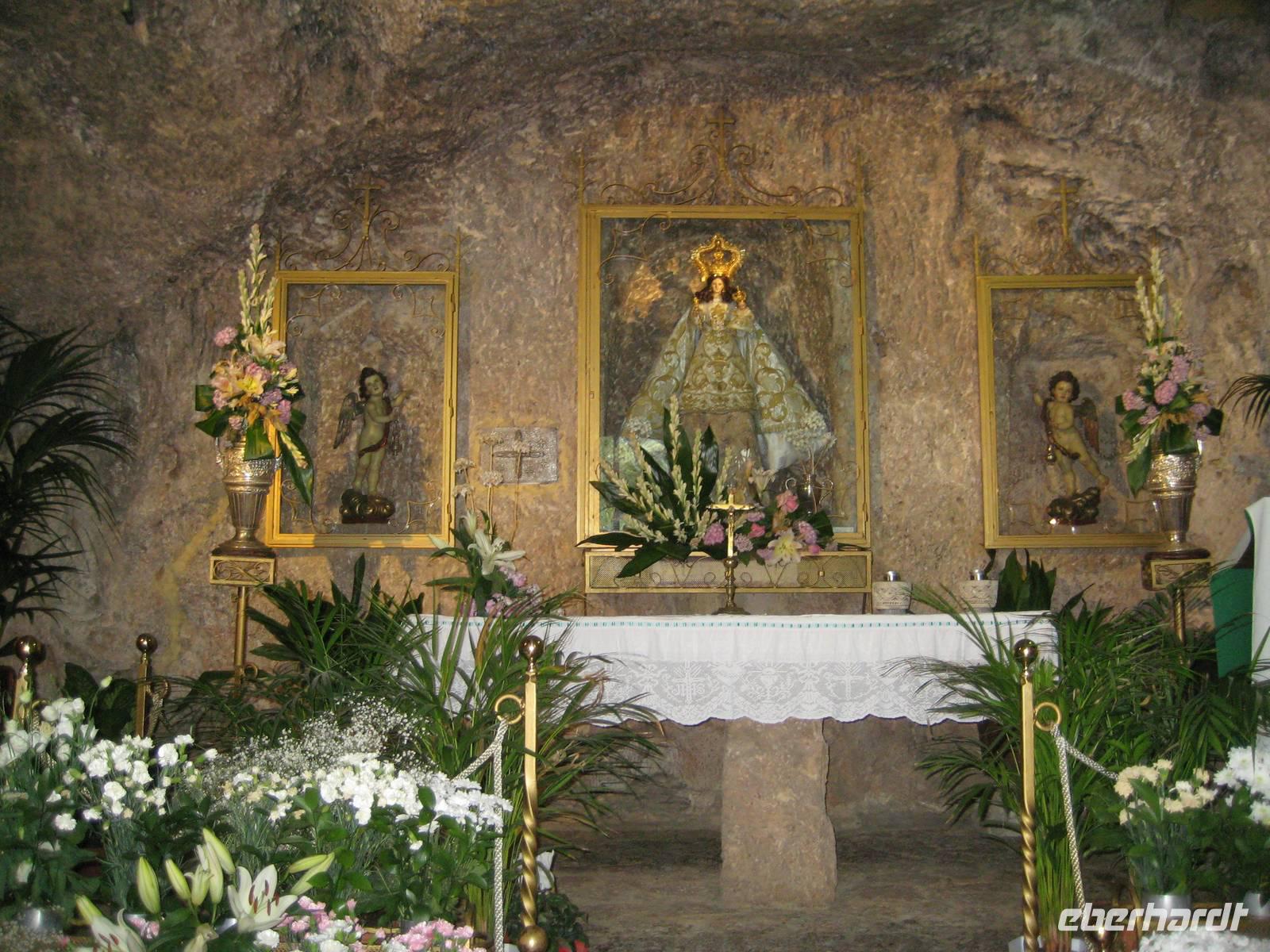 Auf unserem Rundgang kommen wir an verschiedenen Besonderheiten vorbei, wie z.B. die Esels- und Pferdekutschen, den vielen Souvenirgeschäften und der Virgen de la Peña Kirche, wo das Bild der Jungfrau Maria, der Schutzheiligen von Mijas, in den Felsen eingebaut ist.