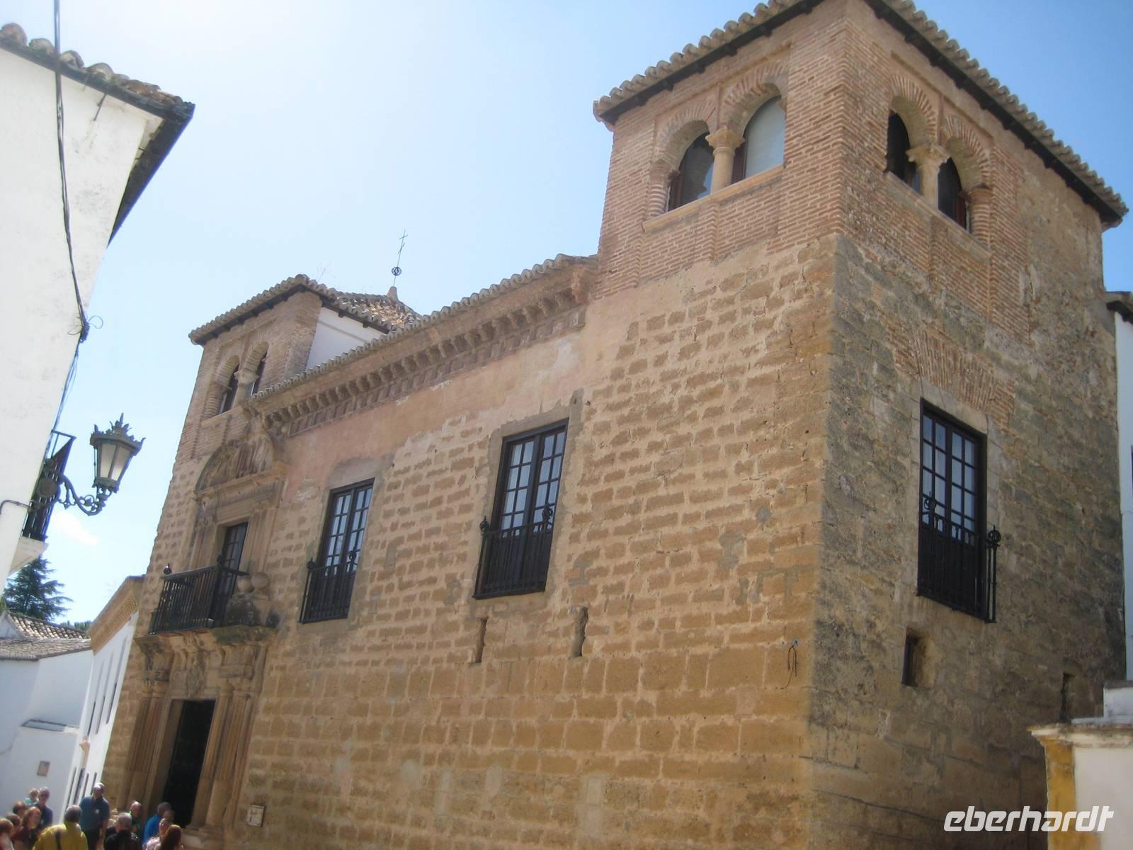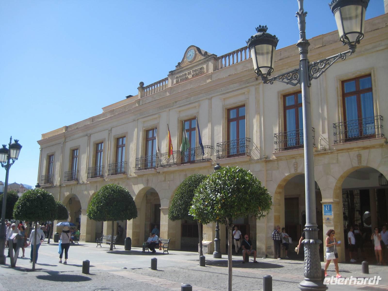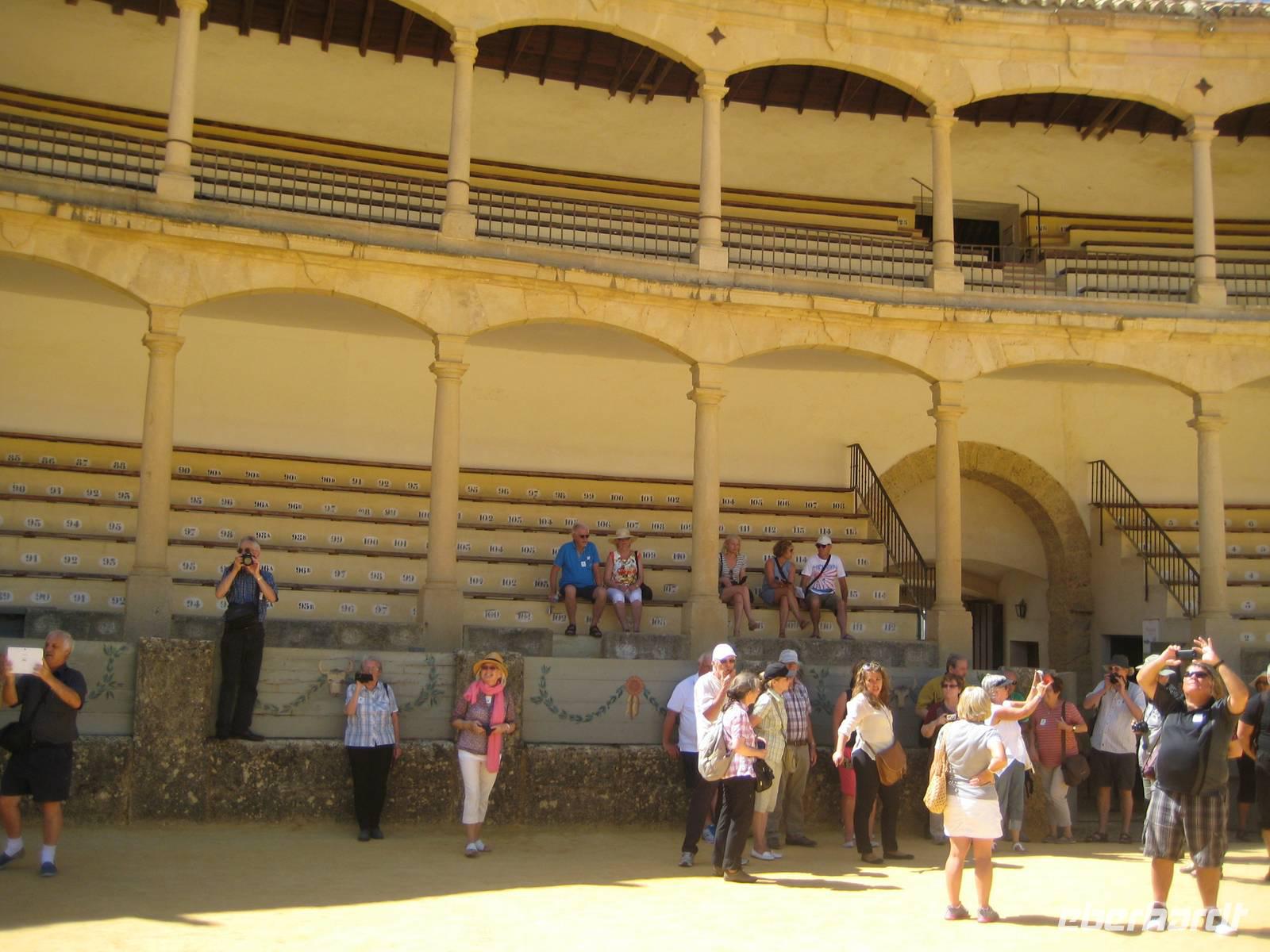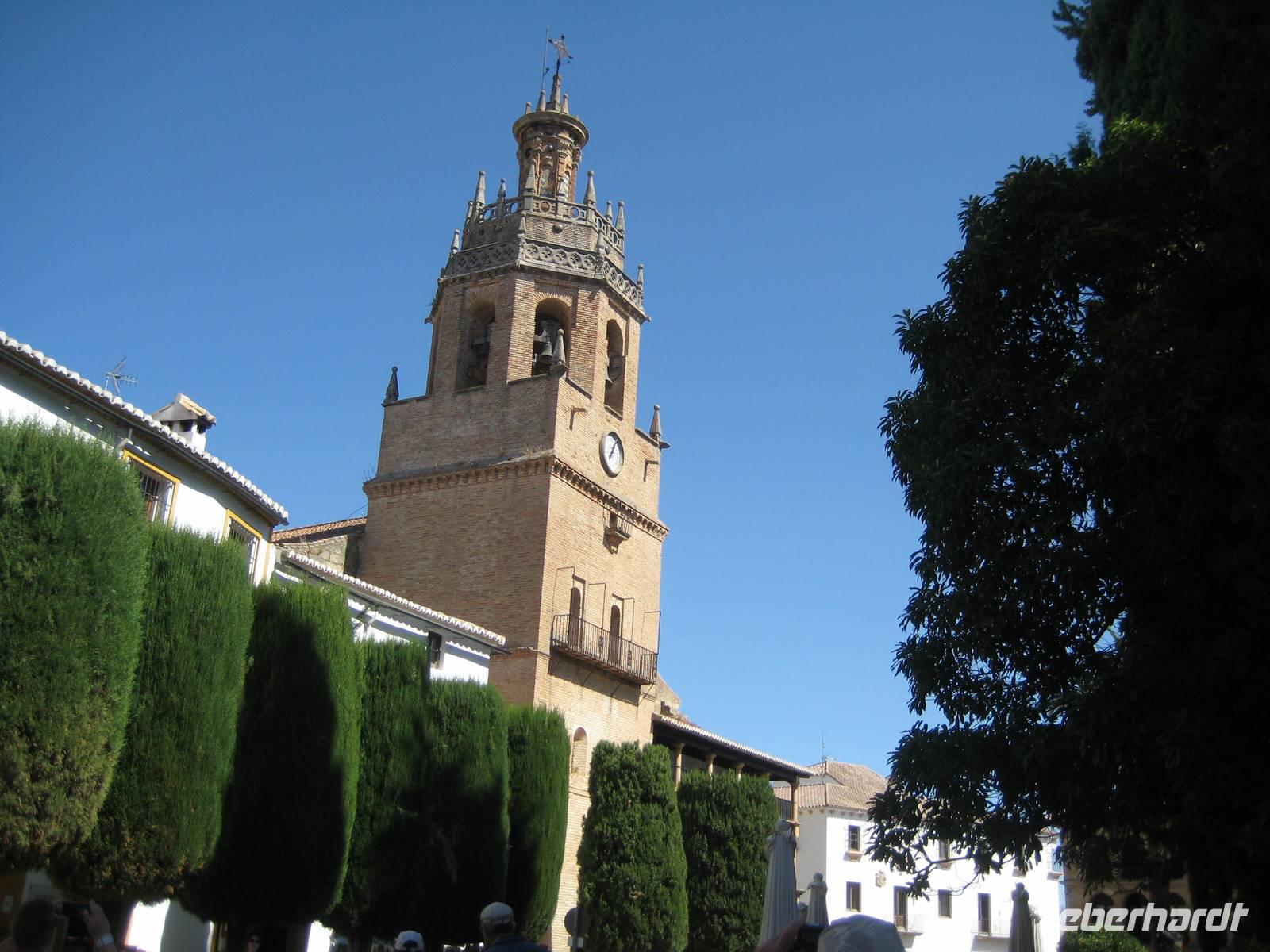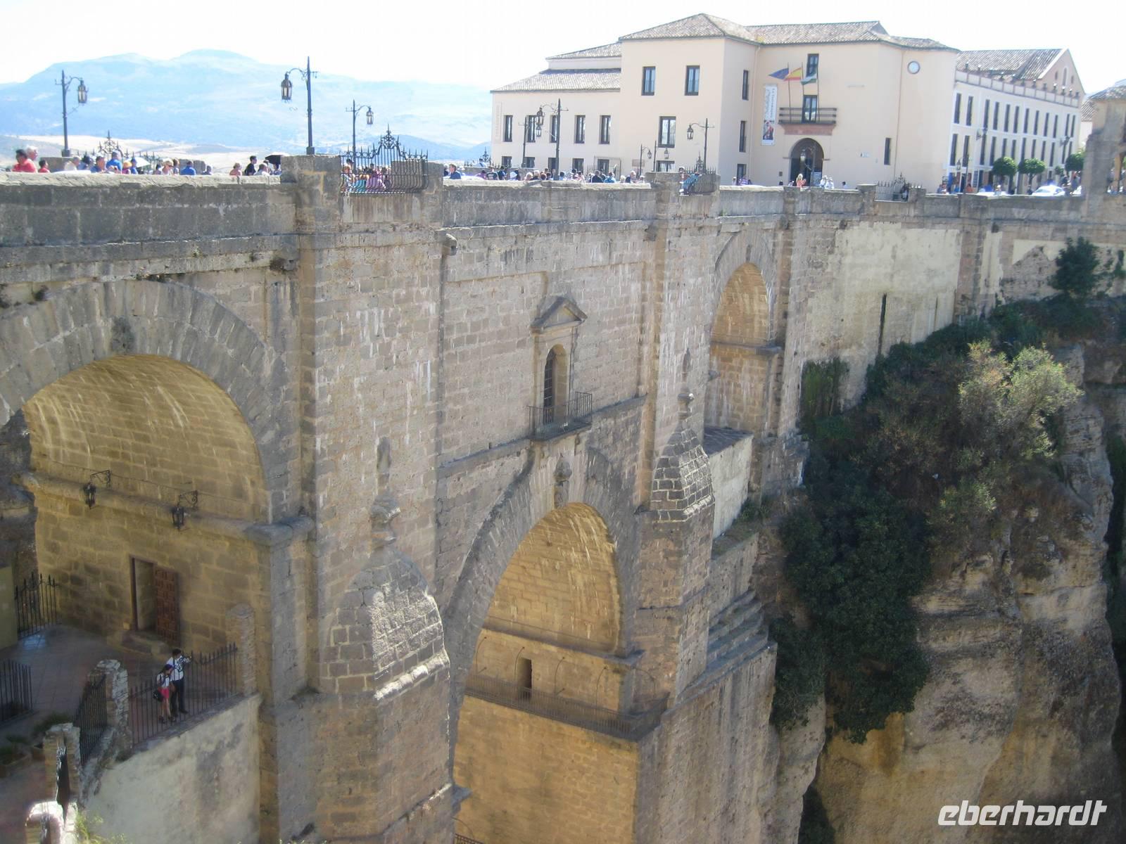 In Ronda machen wir eine Stadtführung entlang der Hauptstraße und sehen das Embleme von Andalusien, Herkules mit den zwei Löwen auf dem Socorro Platz, laufen zum Spanischem Platz, und besichtigen die neue Brücke, die die Altstadt und Neustadt Rondas verbindet. Wir überqueren die 100 Meter lange Brücke und spazieren durch die Altstadt, wo wir Mondragón Palast und die Santa María La Mayor Kirche besichtigen.