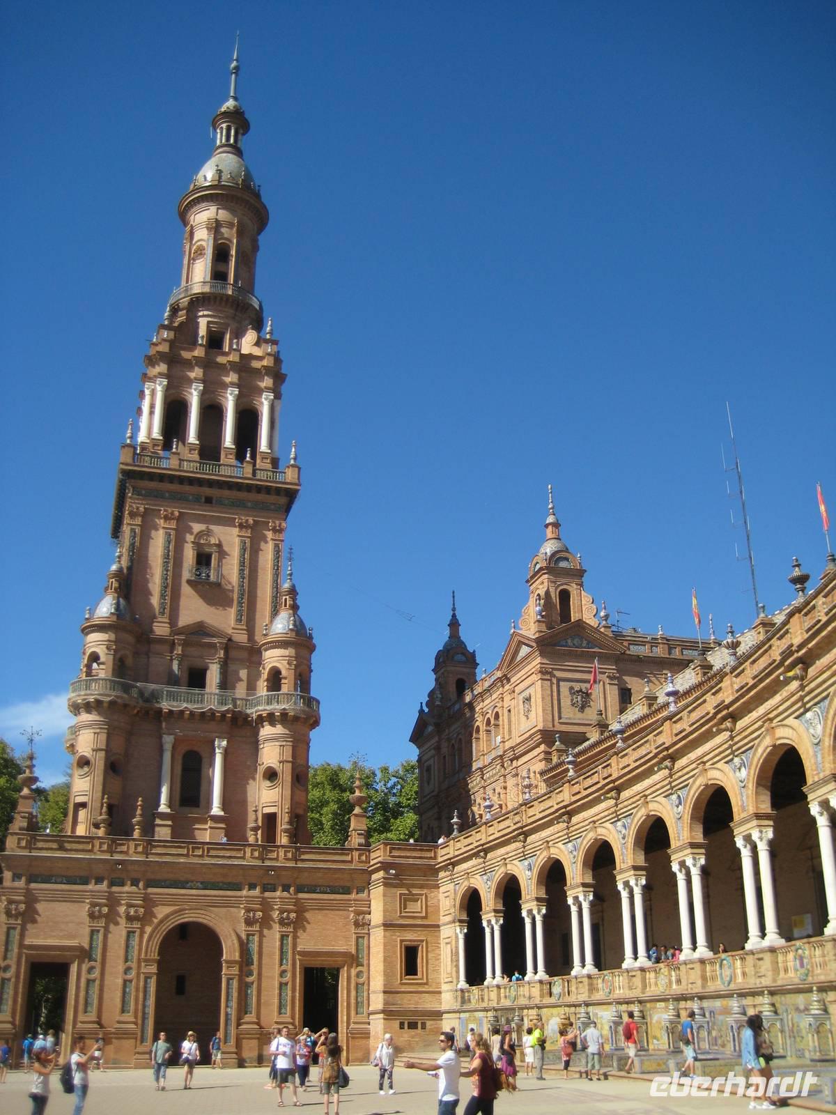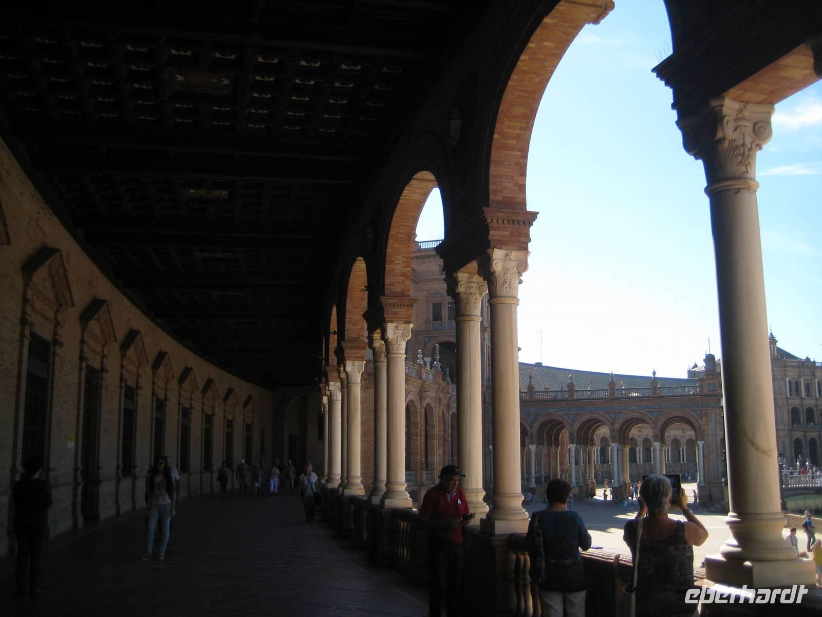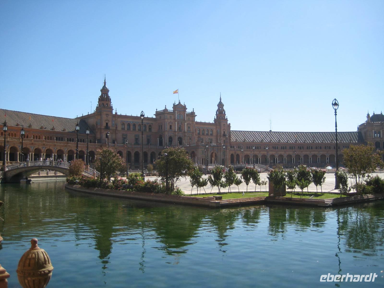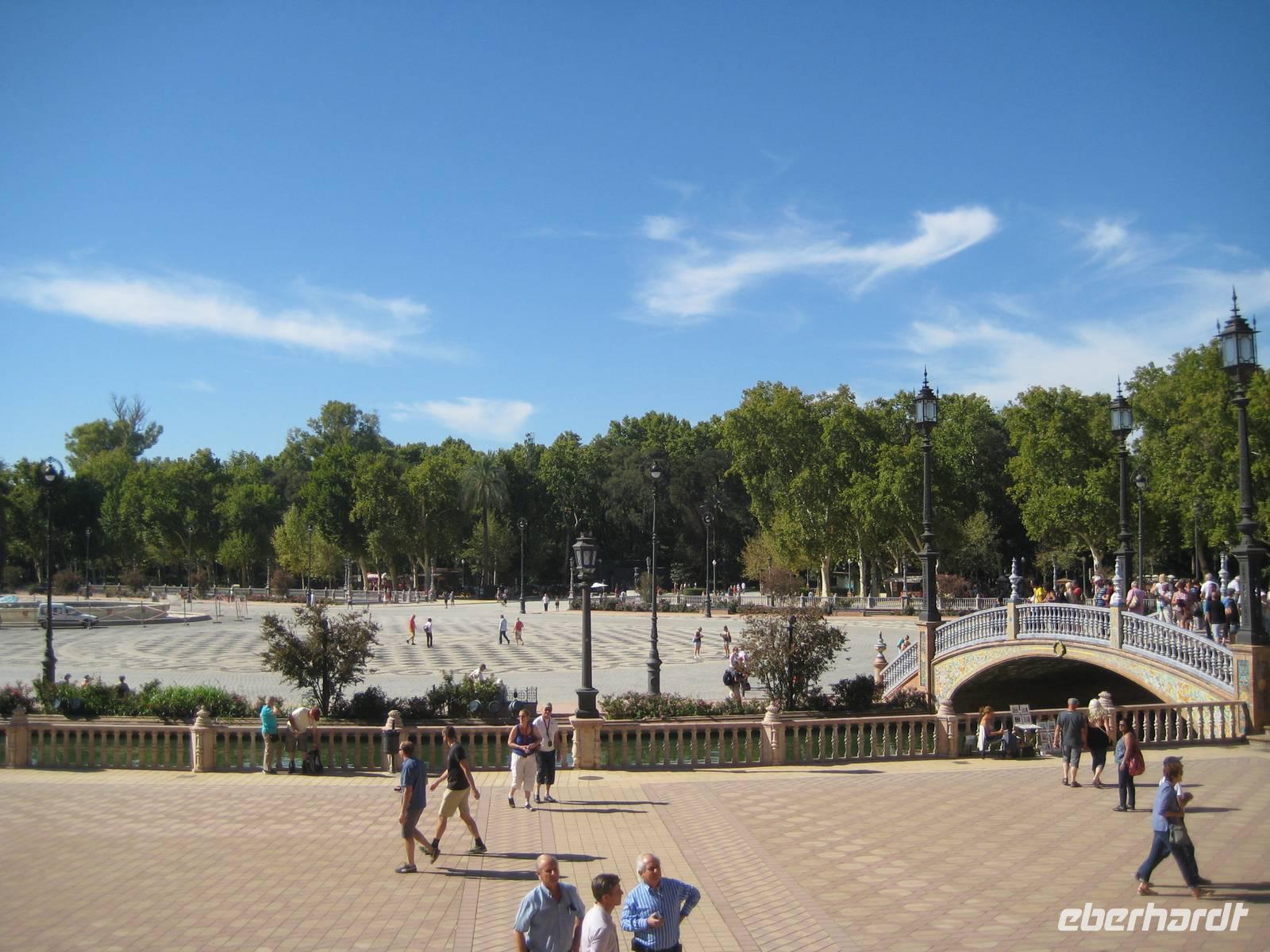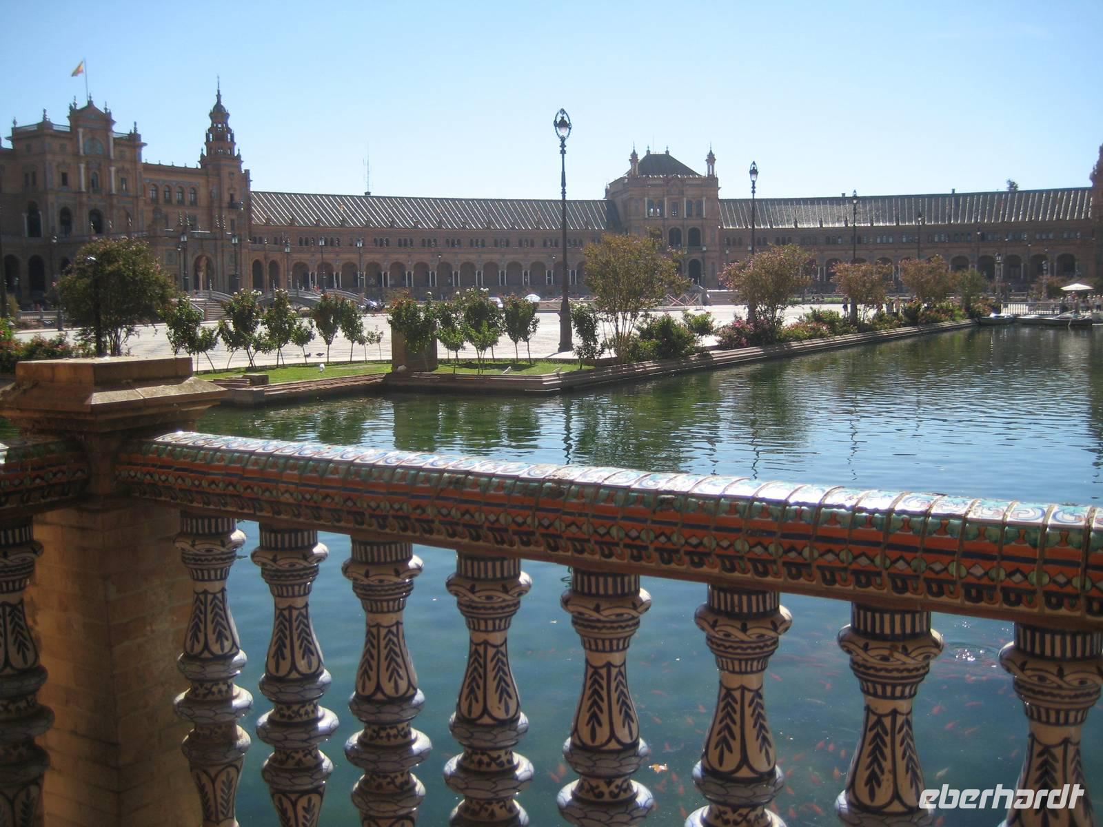 In Sevilla angekommen unternehmen wir einen Stadtrundgang und sind begeistert von der Schönheit des Spanischen Platzes. An den Wänden befinden sich eine Reihe von Kachelornamenten, welche an die 48 spanischen Provinzen erinnern sollen und dabei alphabetisch angeordnet sind.